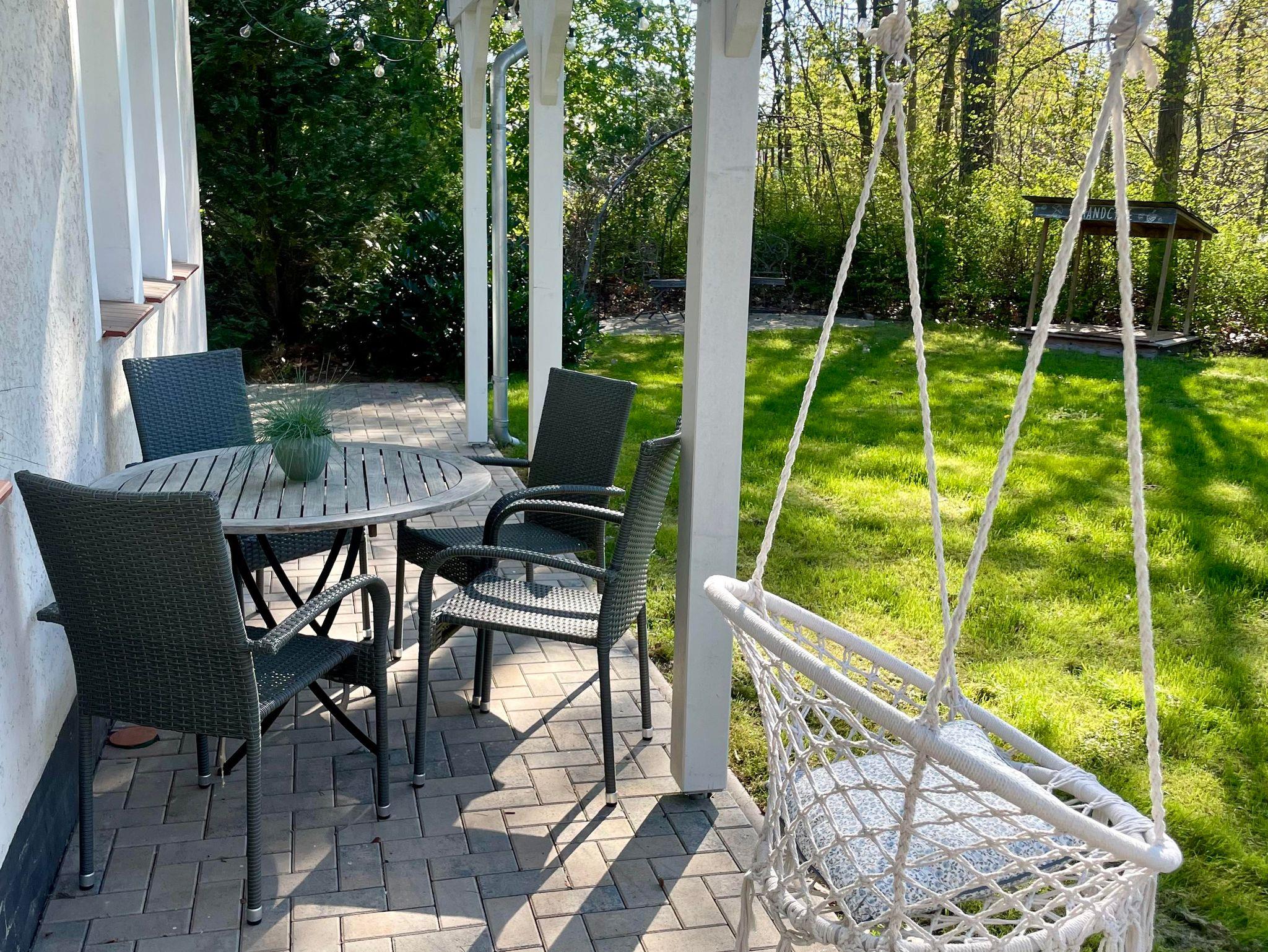 Der große Garten mit 2 Schaukeln ist ideal für Kinder und Hunde.