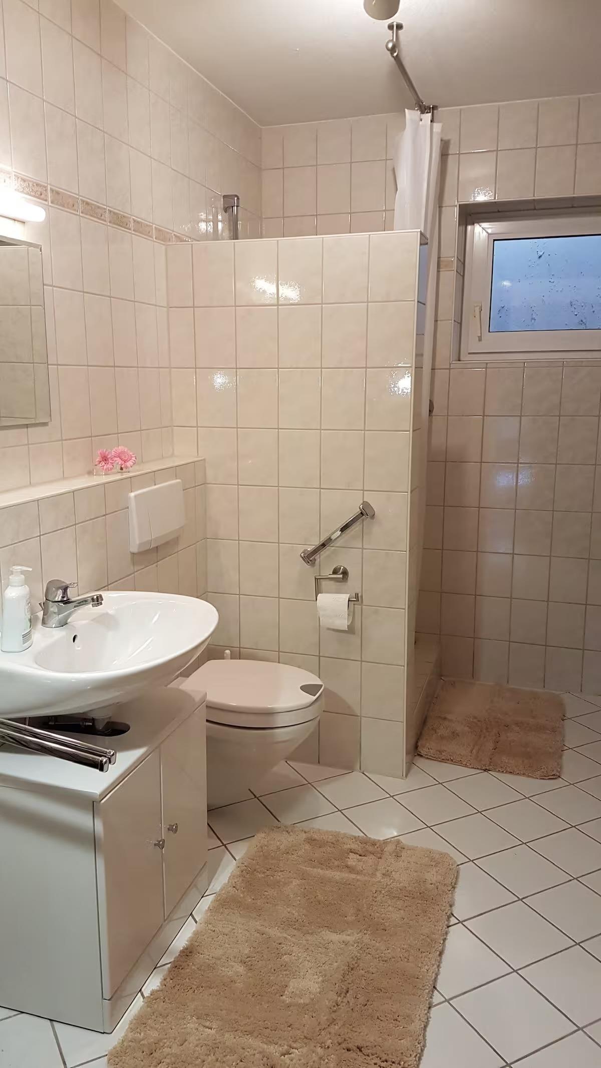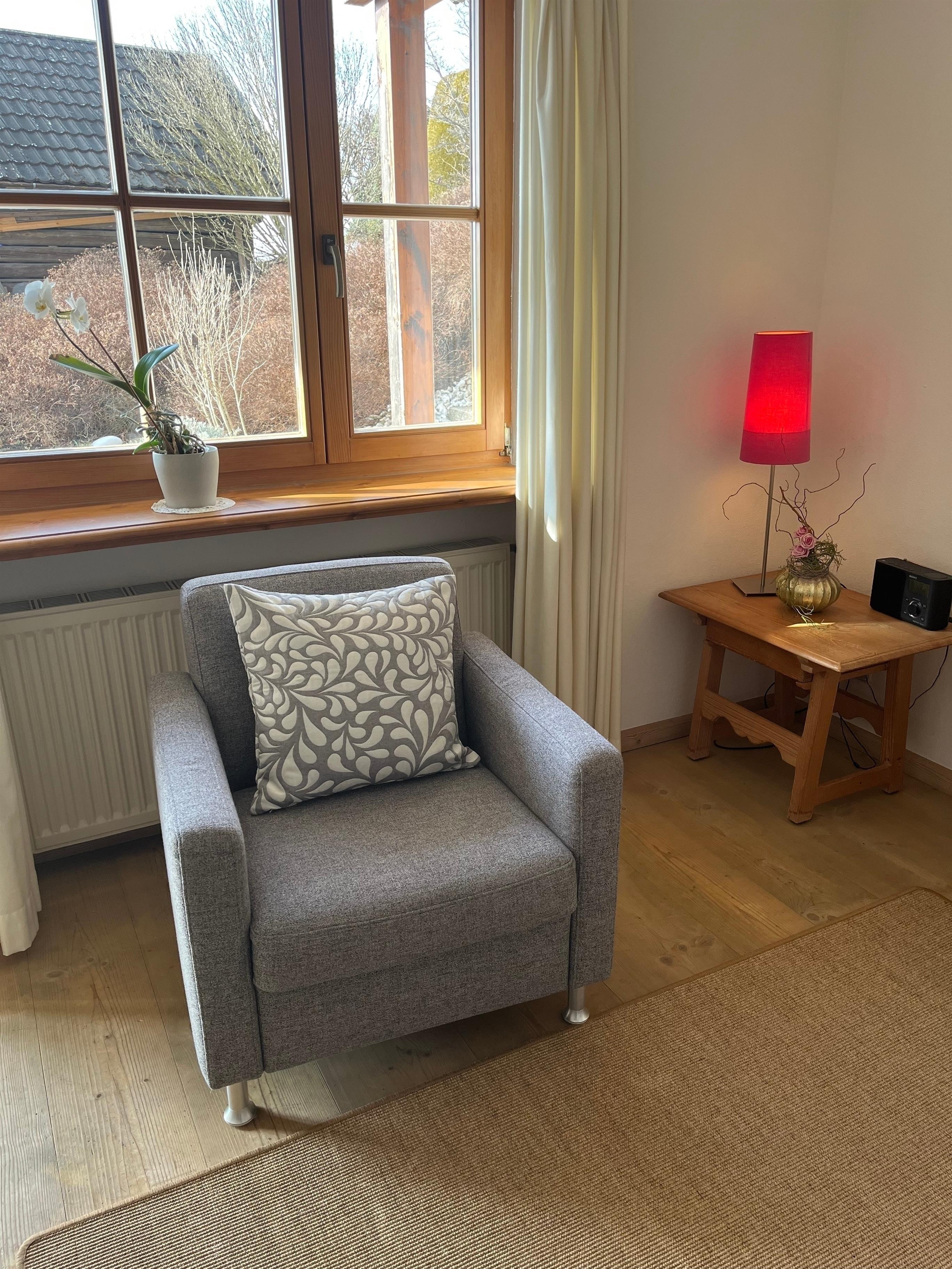 Die Ferienwohnung liegt in unserem Einfamlienhaus und verfügt über einen eigenen Eingang, der über eine Außentreppe führt.