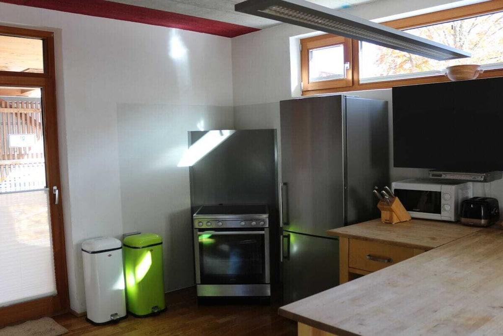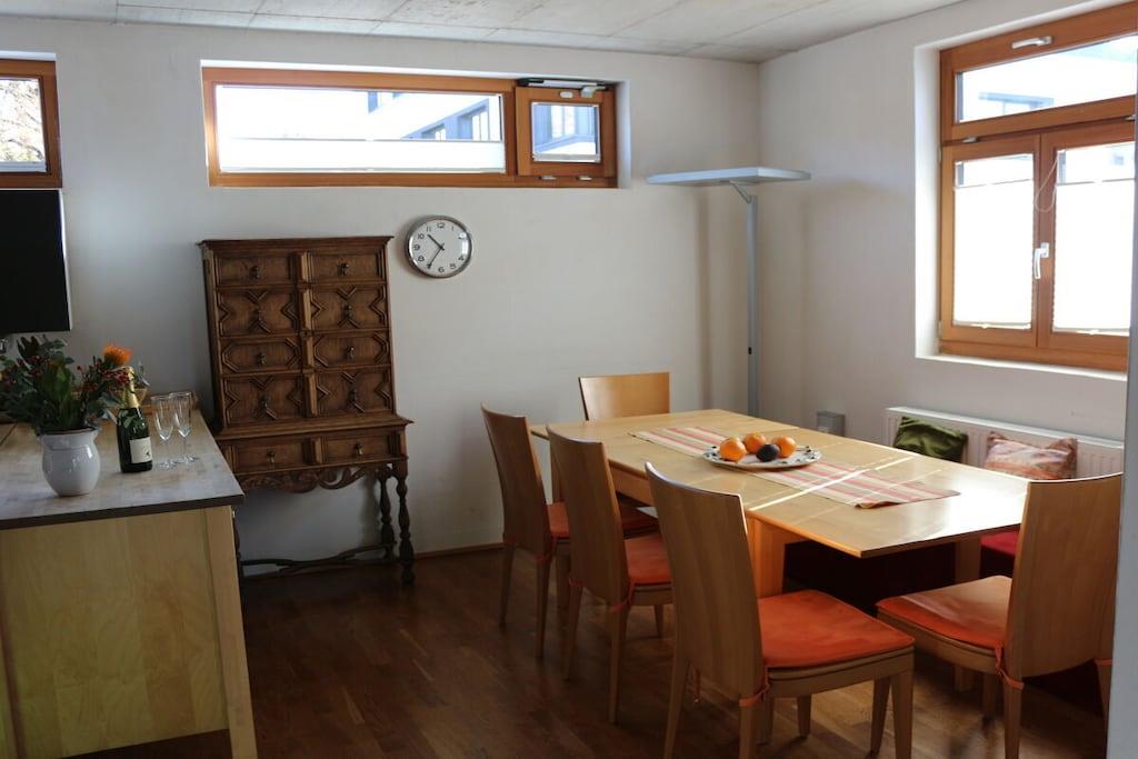 Husets størrelse giver rigelig plads til sammenkomster med flere generationer. Det har to badeværelser og et separat toilet. I godt vejr giver haven og tagterrassen plads til grillfester og afslappede sammenkomster. Værelserne er fordelt på tre etager. Et soveværelse på første sal er åbent ud til trappen og fungerer som et sammenhængende værelse. På underetagen er et af de to soveværelser også et sammenhængende værelse. Dette feriehus er ideelt for familier, par, der er interesserede i kultur og/eller vandreture, eller grupper, der søger en afslappende ferie nær bjerge og søer. Efter en dag med aktiviteter kan du finde fred og ro i komfortable omgivelser. Børn op til 3 år bor gratis. Huset er røgfrit. Haven byder på siddepladser og en liggestol.