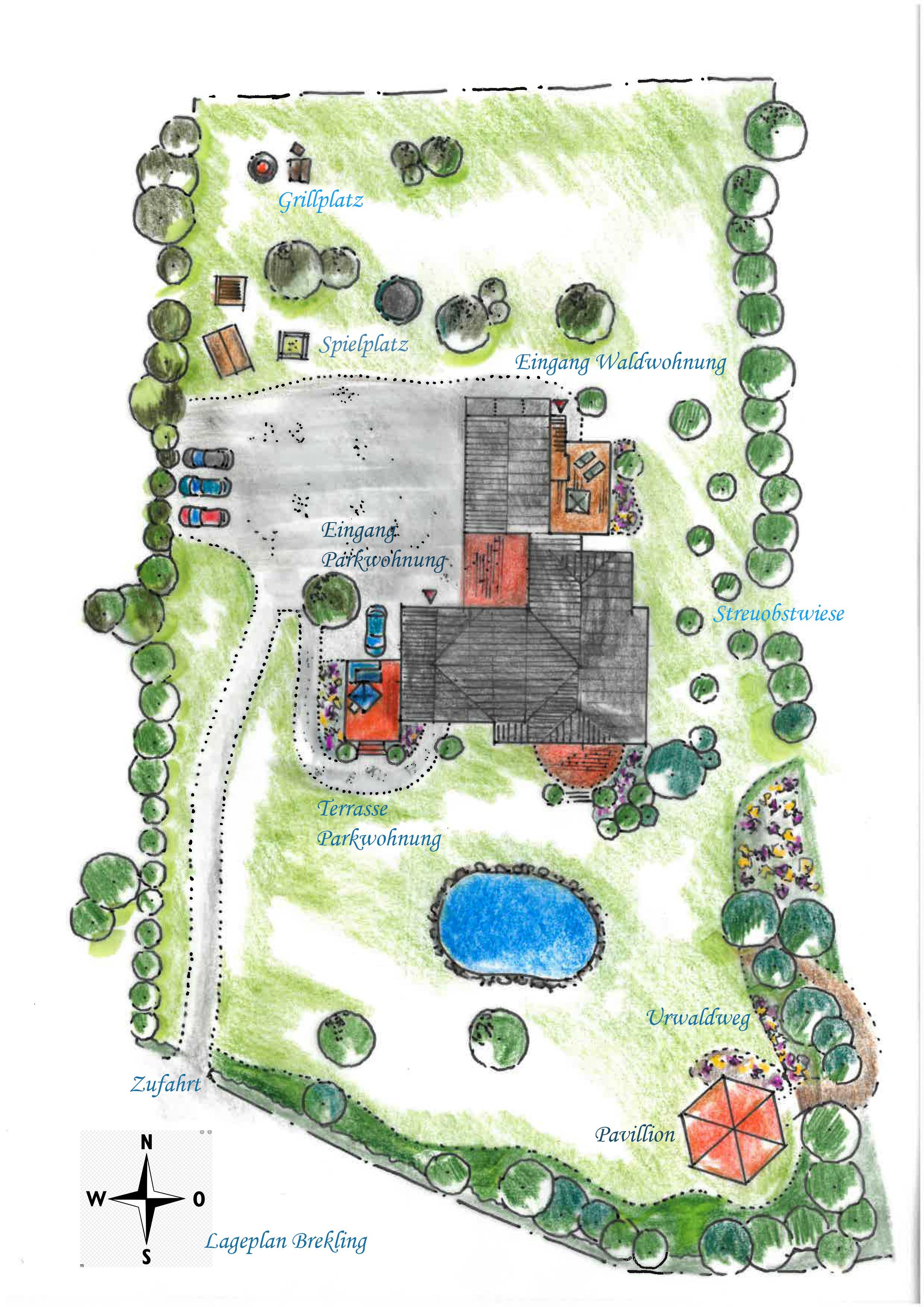 Die Ferienwohnungen liegen in einem ortsprägenden ehemaligen Bauernhaus im Zentrum des Dorfes Brekling am Langsee. Das Haus wurde ca. 1920 errichtet und die Ferienwohnung wurde 2017 komplett saniert und modernisiert. Eine Mischung aus antiken Elementen mit modernen Einrichtungen und viel Komfort bildet das Ambiente der Wohnung, die sich über die Etagen Erd- und Dachgeschoss erstreckt. Das vorhandene 6000 m2 große parkähnliche Grundstück kann uneingeschränkt genutzt werden. Direkt am Haus befindet sich der PKW-Stellplatz und Unterstellmöglichkeiten für Fahrräder und Angelsachen. Die Ferienwohnungen liegen ca. fünf Autominuten von der Kleinstadt Schleswig entfernt. Die nächstgelegene Einkaufsmöglichkeit ist ebenfalls ca. 5 min - im Nachbarort Böklund - entfernt. Die Schlei, der Freizeitpark "TolkSchau", der 500 m entfernte Langsee sowie die Ost- und Nordsee, die Städte Flensburg und Kappeln sind jeweils schnell erreicht. Auch ein Abstecher nach Dänemark oder in die Landeshauptstadt Kiel sind als entspannte Tagestouren zu empfehlen. Zahlreiche kleine Straßen und Wege bieten die Möglichkeit zu ausgedehnten Fahrrad- oder Wandertouren. Das Haus Brekling wird neben der Ferienwohnung als Privatwohnsitz und Büro genutzt.