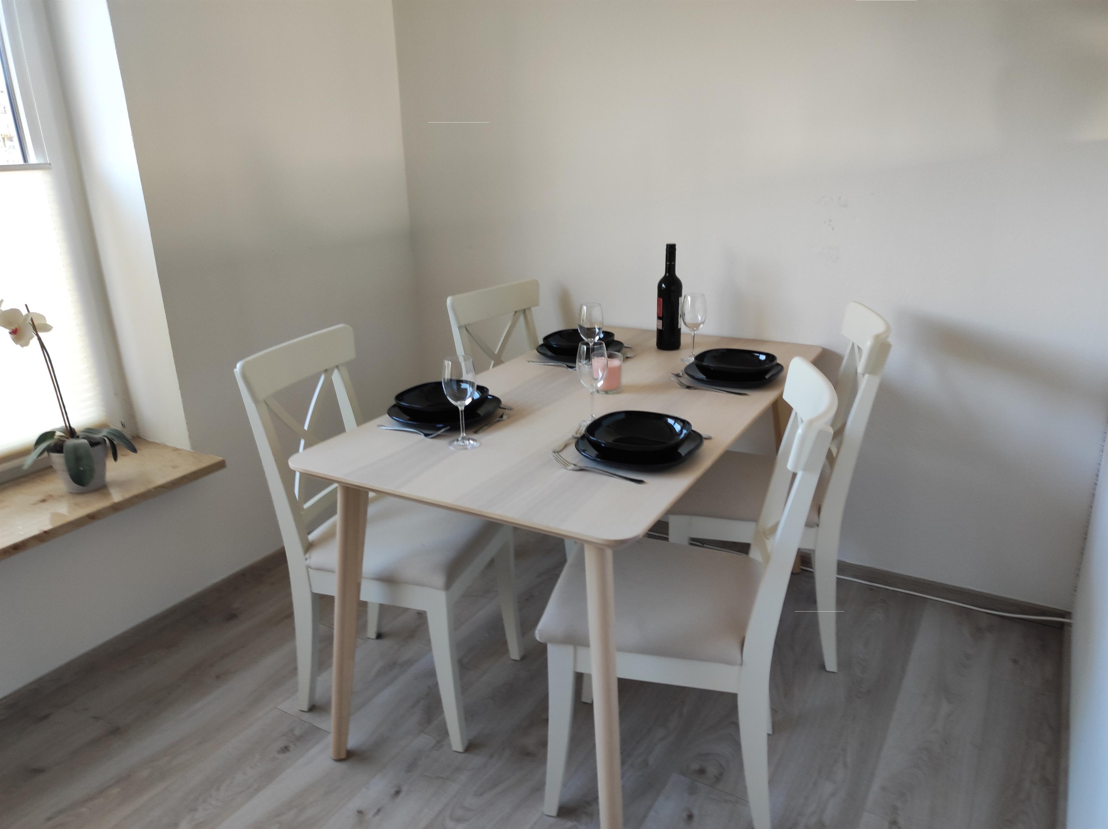 Die gemütliche maritime Ferienwohnung befindet sich im Erdgeschoss mit separatem Eingang. Das Wohnzimmer bietet eine gemütliche Sitzgruppe, einen Fernseher und Wlan. Die Einbauküche ist mit Elektroherd, Backofen, Induktions-Kochfeld, Kaffeemaschine, Toaster und Wasserkocher bestens ausgestattet. Im Badezimmer sind Haltegriffe, Duschstuhl und ein Föhn vorhanden. Außerdem gibt es eine Waschmaschine, einen Wäscheständer, ein Bügeleisen und ein Bügelbrett. Die Ferienwohnung ist für 2 Personen und ein Kind ausgelegt. Mit dem Auto oder mit Rad können Sie von hier aus wunderbar die Region erkunden. Schleswig liegt vor der Haustür in ca. 4 km Nähe. Auch Nord- oder Ostsee sowie Dänemark sind in 35 km schnell erreicht. Und für entspannte Tage im Garten bietet die Ferienwohnung eine Terrasse. Bettwäsche, Handtücher und Endreinigung inklusive. Keine Haustiere!