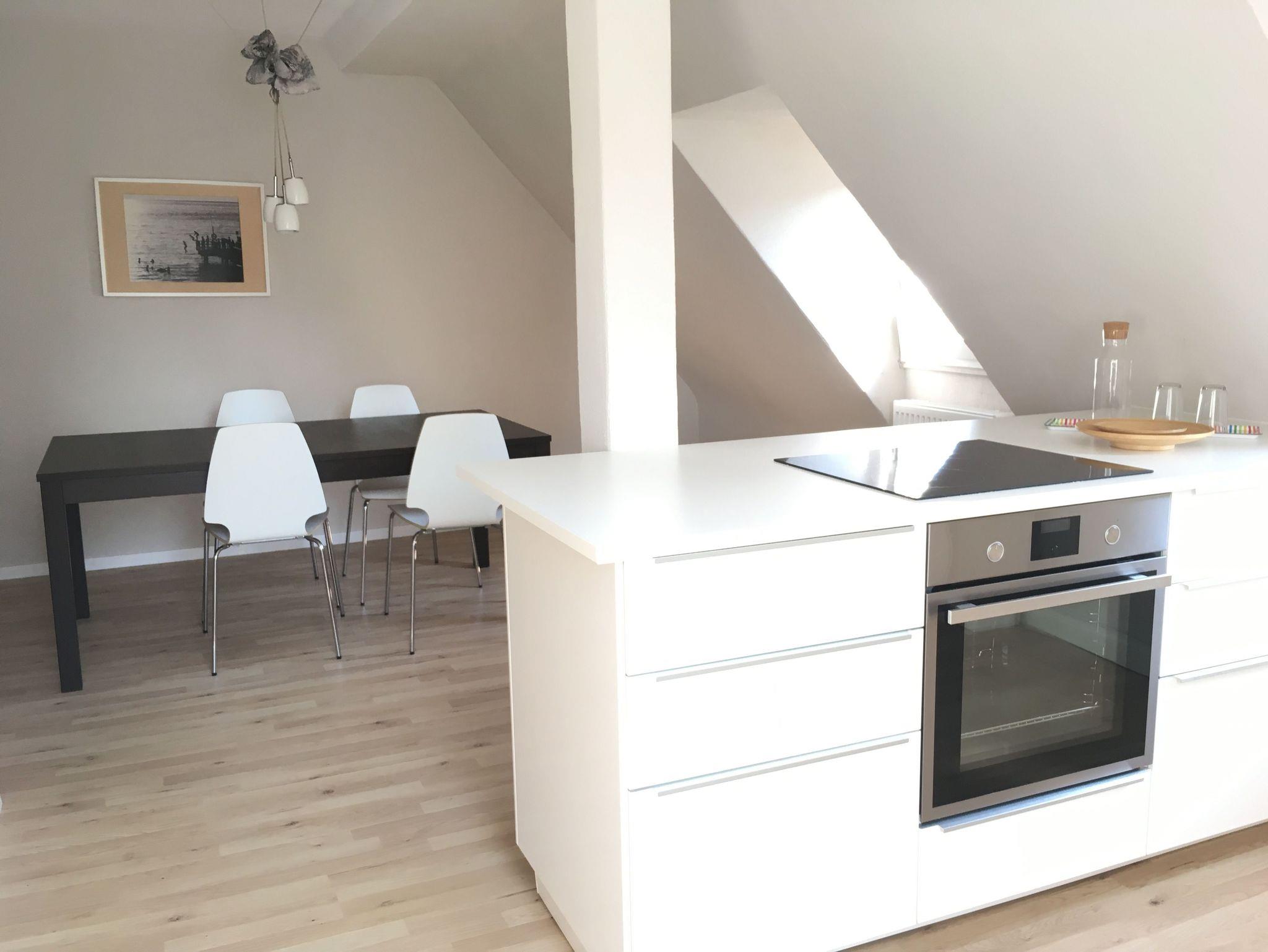 Das Apartment befindet sich im Dachgeschoß und umfasst 2 Schlafzimmer und ein Wohnzimmer für insgesamt 5 Personen. Es hat eine voll ausgestattete Küche mit einem Kühlschrank und einer Kaffeemaschine sowie 1 Bad mit einer Badewanne/ Dusche und einem Haartrockner.