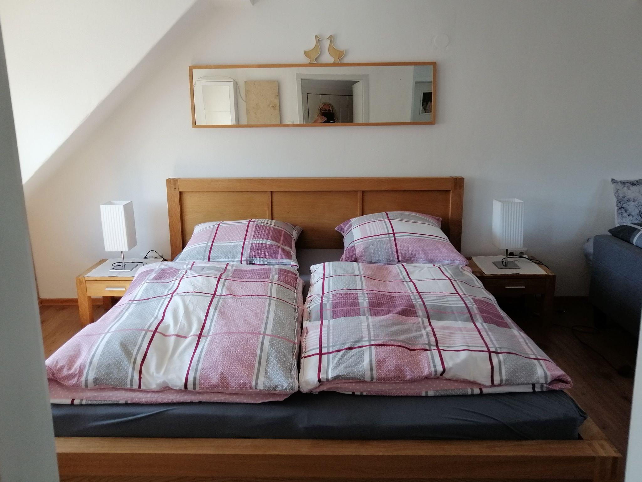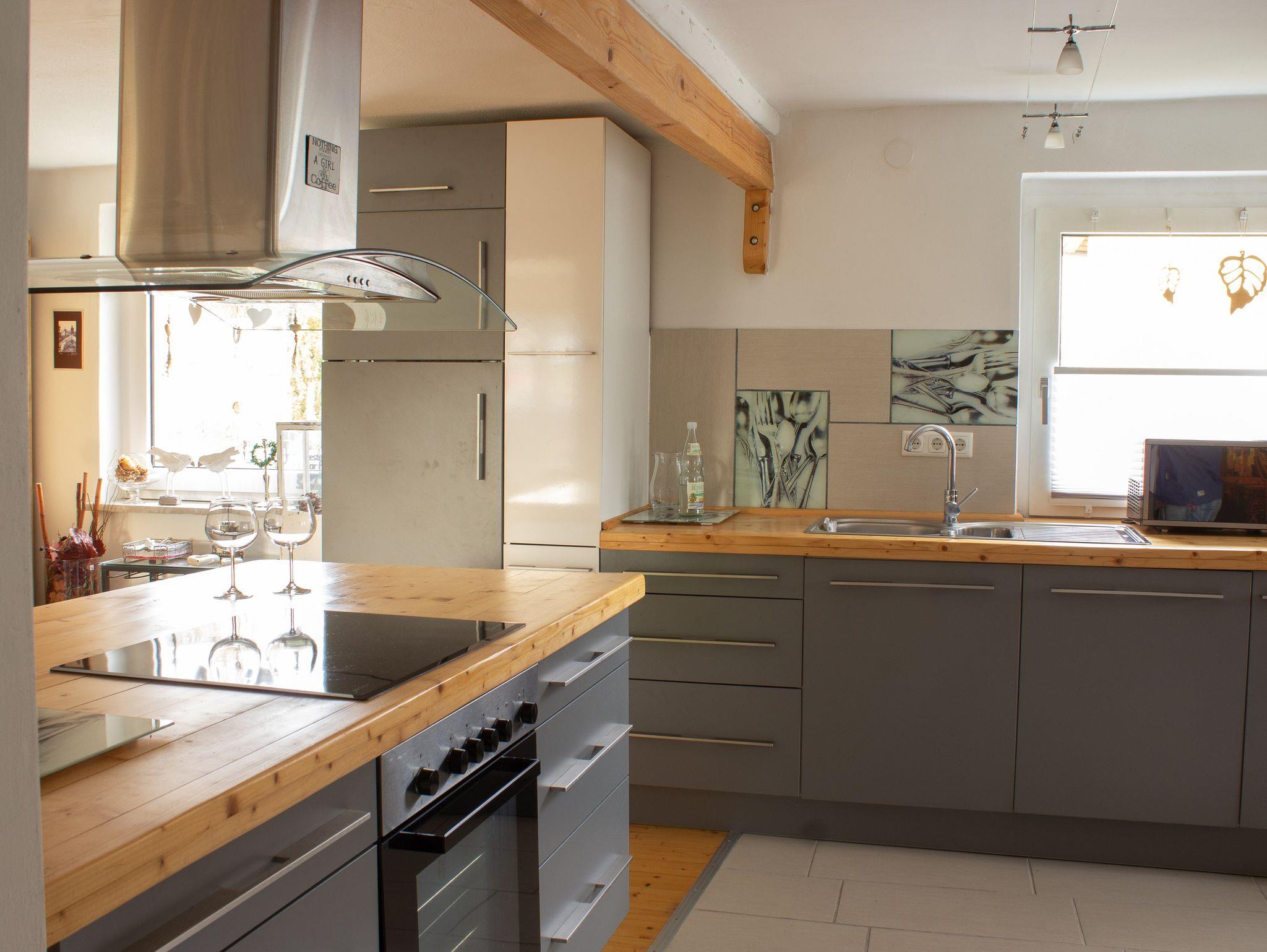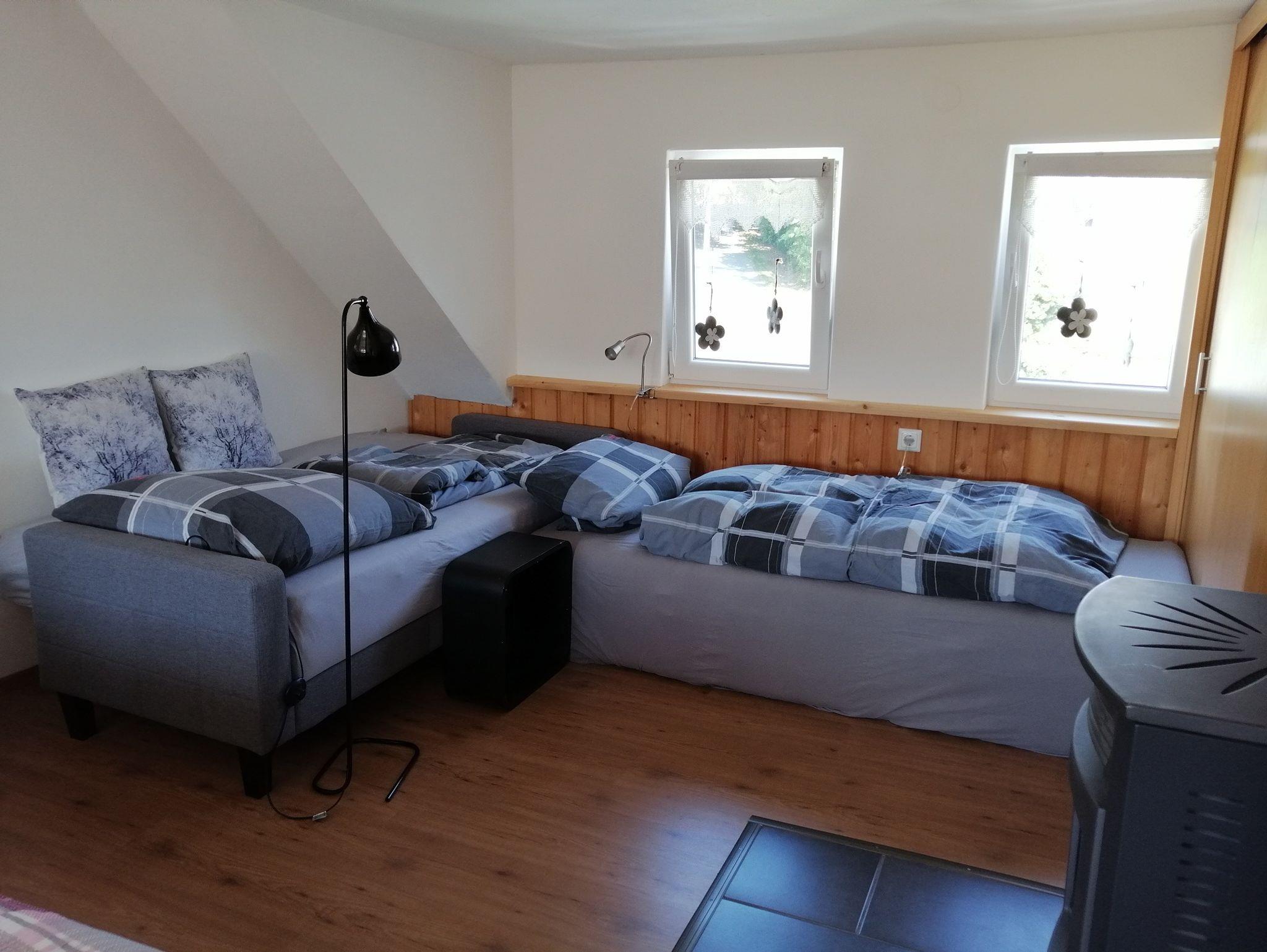 Unsere Gäste bewohnen das ganze Haus allein. Im Erdgeschoss befindet sich der Eingangsbereich und die Garderobe, die Schuhablage und die Putzkammer. Offenes Wohnen ist das Thema in 1. Stock, außerdem gibt es dort ein sehr großes Badezimmer mit Tür zur Dachterrasse. Selbstverständlich geht es vom Esszimmer über die Leseecke auch zur Dachterrasse. Über den Flur geht es dann in den 2. Stock zum großen Schlafzimmer mit Doppelbett, und wenn gewünscht können bis zu maximal 2 Erwachsene oder aber maximal 3 Kinder dort mit übernachten. Im ersten Stock können bis zu 2 Personen übernachten (Schlafbett 1,60m). Das Zimmer kann mit einem Raumteiler auf Wunsch abgetrennt werden. Das 3. Schlafzimmer wurde komplett neu renoviert und bietet somit noch mehr Platz für unsere Gäste. Der neue Raum befindet sich im Erdgeschoß und verfügt über ein Doppelbett und ein hochwertiges Schlafsofa. Es ist wohnlich gestaltet, sodass man sich tagsüber mal zurück ziehen kann. Unser 4 Sterne Ferienhaus ist jetzt auch hervorragend geeignet für befreundete Ehepaare oder Freunde. Jetzt können wir auch bis zu 6 Einzelbetten anbieten. Die hochwertige Küche mit einer Kochinsel und einen Backofen, Herd, Spülmaschine, Kühlschrank, Gefrierschrank, Toaster, Kaffeemaschine, Wasserkocher und exklusiven Geschirr ausgestattet. Das Bad ist besonders groß mit Badewanne, Dusche und Waschtisch. Das Wohnzimmer ist mit bequemer Sitzlandschaft und großen TV und Beamer und Leinwand mit Soundanlage ausgestattetes gibt einen extra Schreibtisch zum Arbeiten am Computer. In der schönen Leseecke können Sie entspannen und verweilen. Vom Esszimmer mit großem Tisch geht es auch direkt zur geräumigen Dachterrasse mit Blick auf das Selbitztal. Tisch, Stühle, Sonnenschirm und Liegen laden Sie ein die Sonne zu genießen.