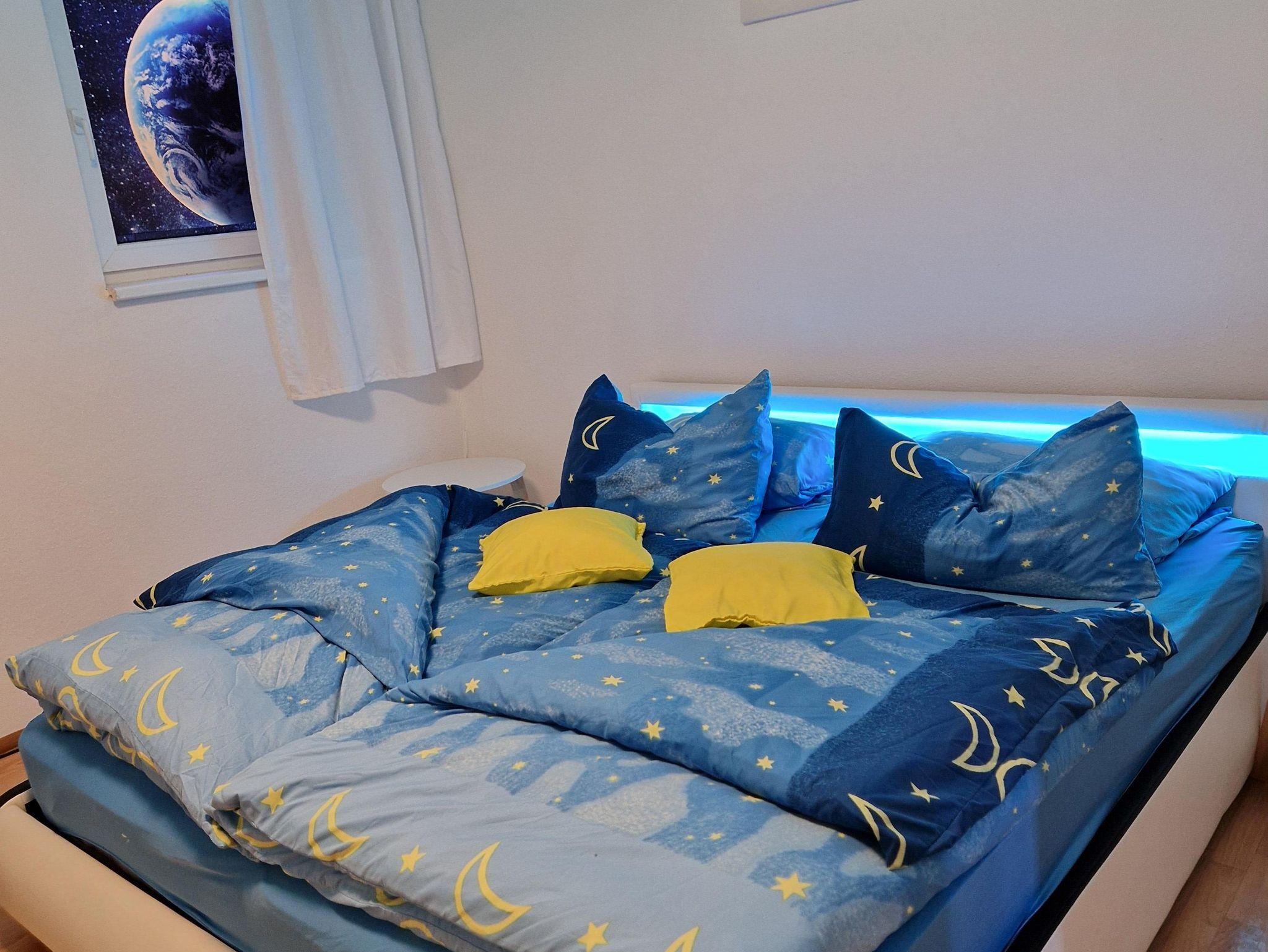 Die Wohnung verfügt über ein Schlafzimmer mit Doppelbett, auf Wunsch ein Babybett und bei Belegung mit 3 Personen ein Zustellbett. Bettwäsche ist vorhanden.