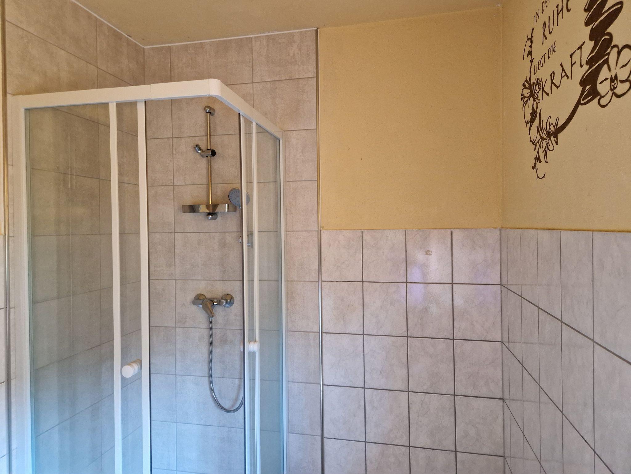 Das Bad verfügt über eine Dusche und eine Waschmaschine (gegen Gebühr).Handtücher sind vorhanden.