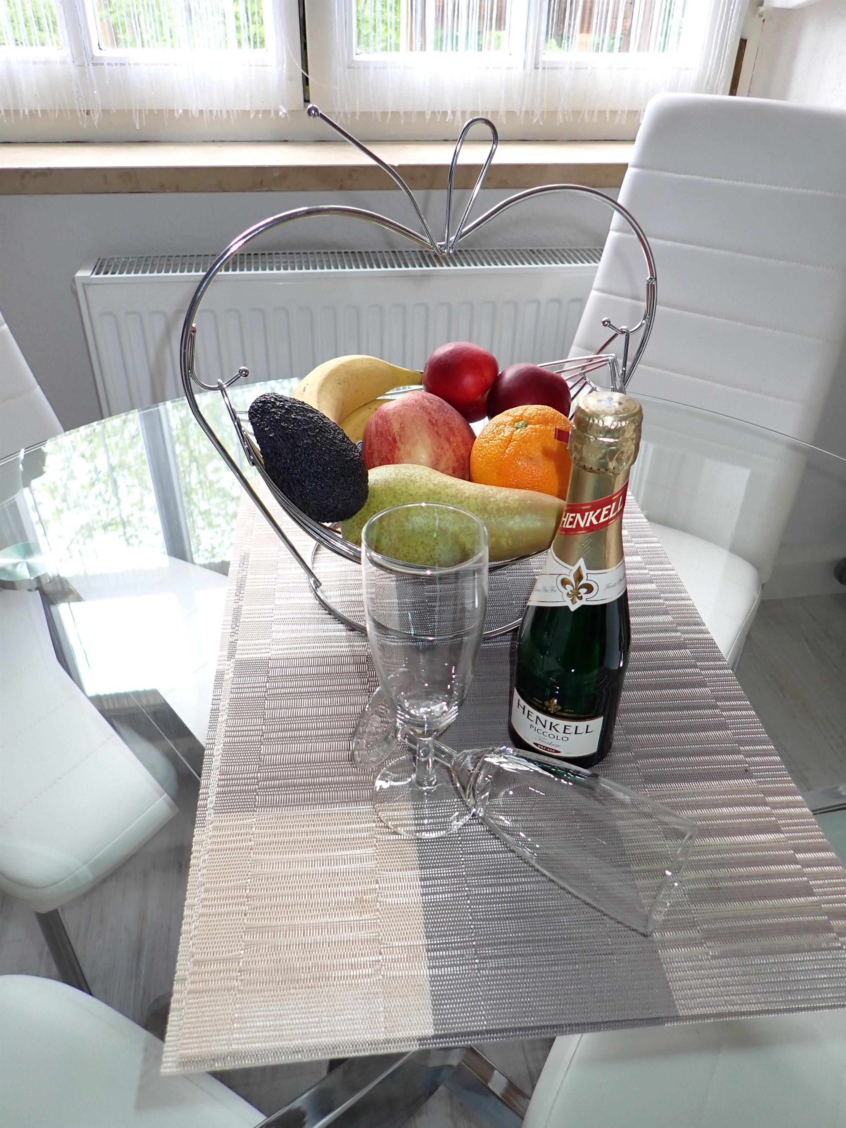 Als Begrüßung stellen wir Ihnen ein Getränkt zur Verfügung. Auch eine Flasche Wasser ist immer für unsere Gäste bereit.