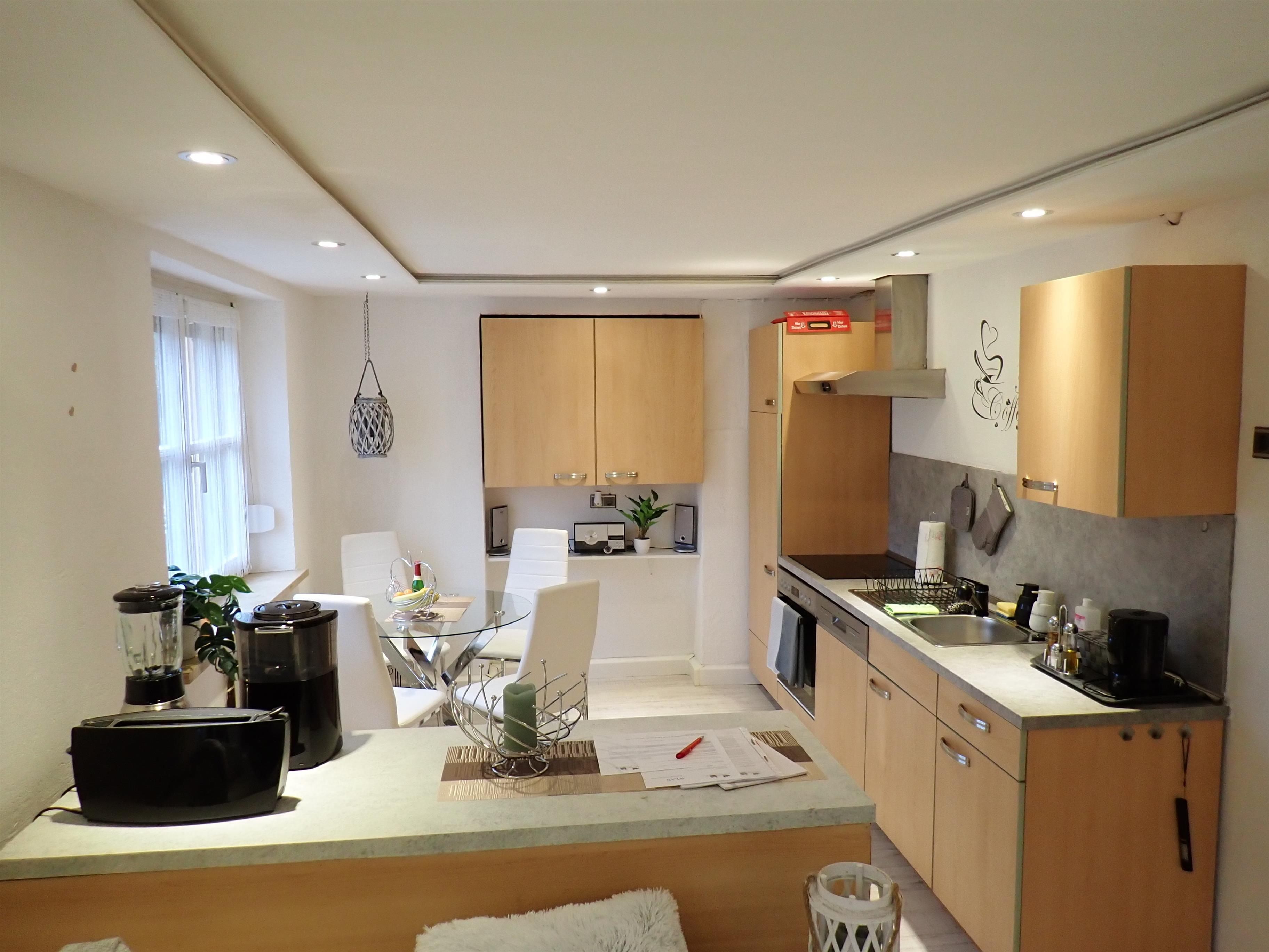 Die sehr gut ausgestattete Küche mit Geschirrspüler (Spülmaschinentabs sind da), Kühlschrank mit Gefrierfach, Herd, Backofen, Standmixer, Pürierstab, Wasserkocher, Toaster, Geschirrtuch und Kaffeemaschine lässt keine Wünsche offen.