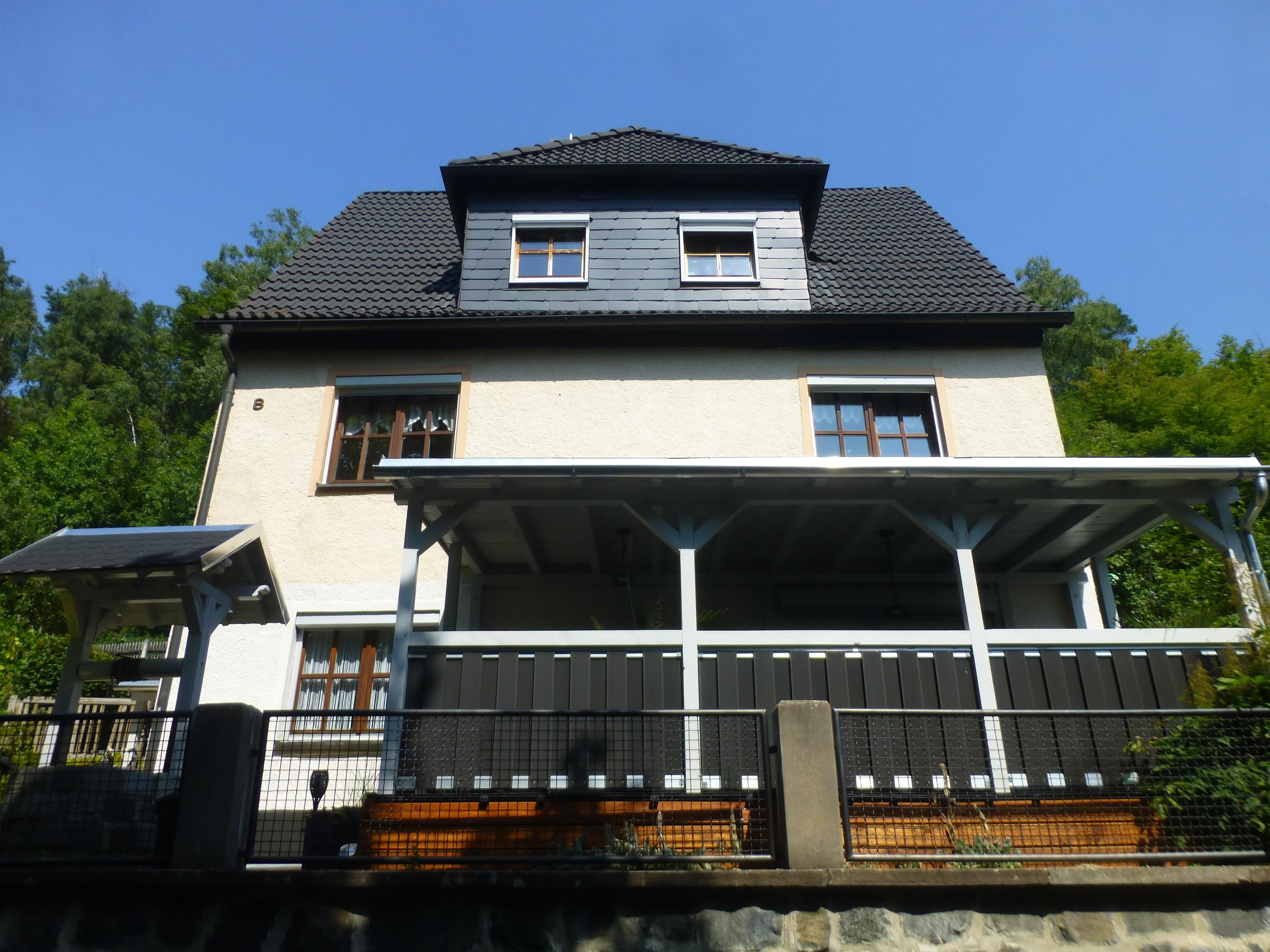 Das eingezäunte, am Hang liegende, Grundstück der komplett eingerichteten 60qm Ferienwohnung mit einer Wunderschönen Überdachten Terrasse zum entspannen, befindet sich direkt am Stadtrand und hat durch den Garten direkten Zugang zum Wald.