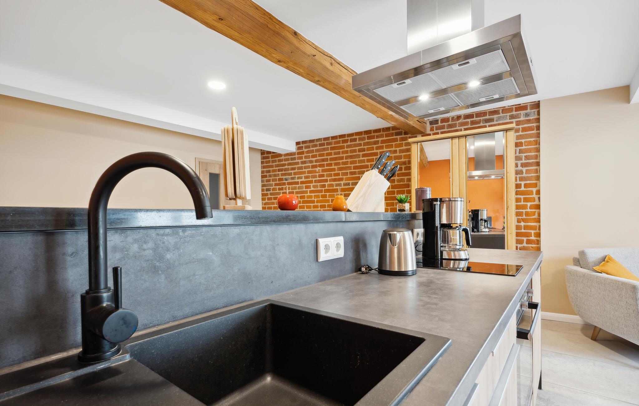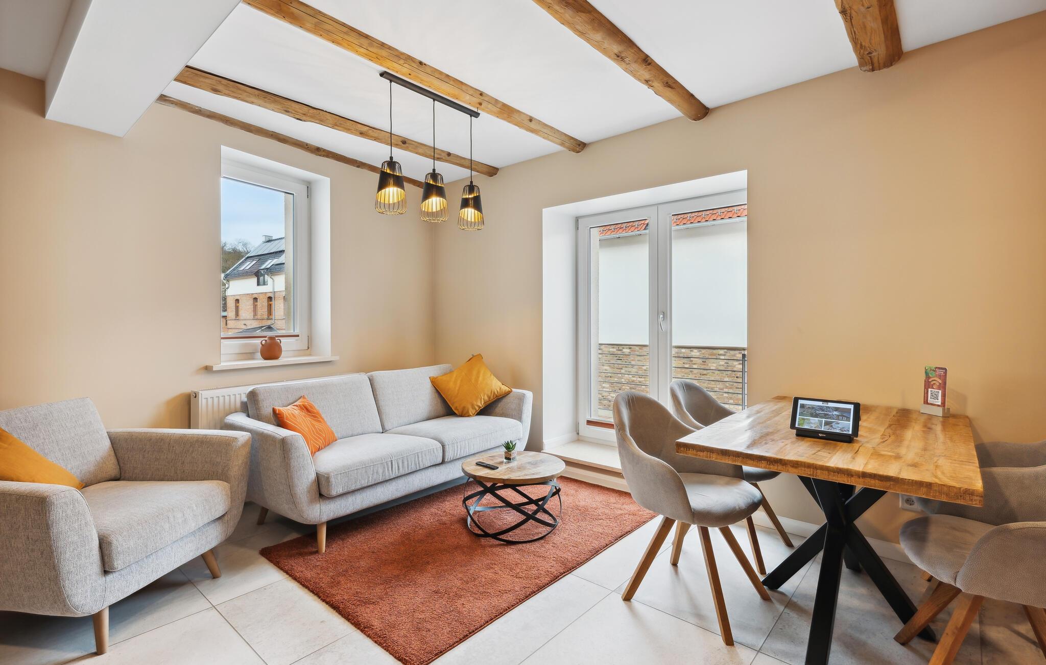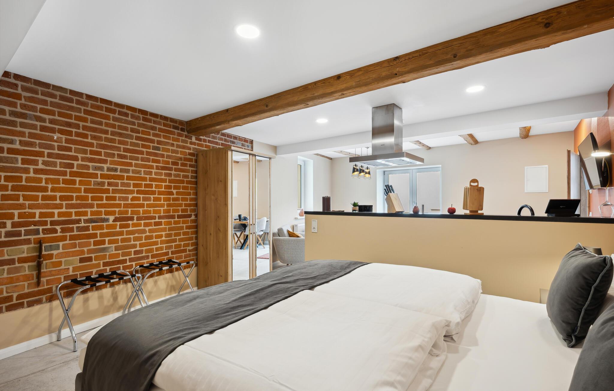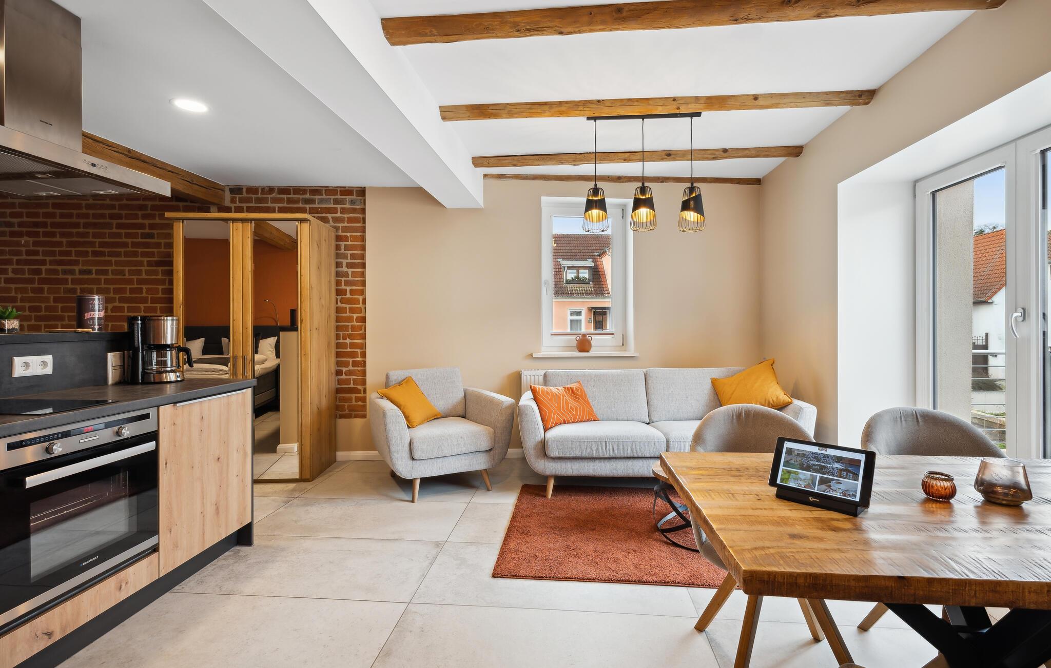 Velkommen til denne lejlighed, som ligger tæt på den smukke natur og mange gode udflugtsmål. Indretningen fremtræder både lyst og indbydende og danner de perfekte rammer for en magisk og begivenhedsrig ferie for to. Begynd blot dagen med en lækker morgenmad, mens I lægger planer for dagens udflugter.