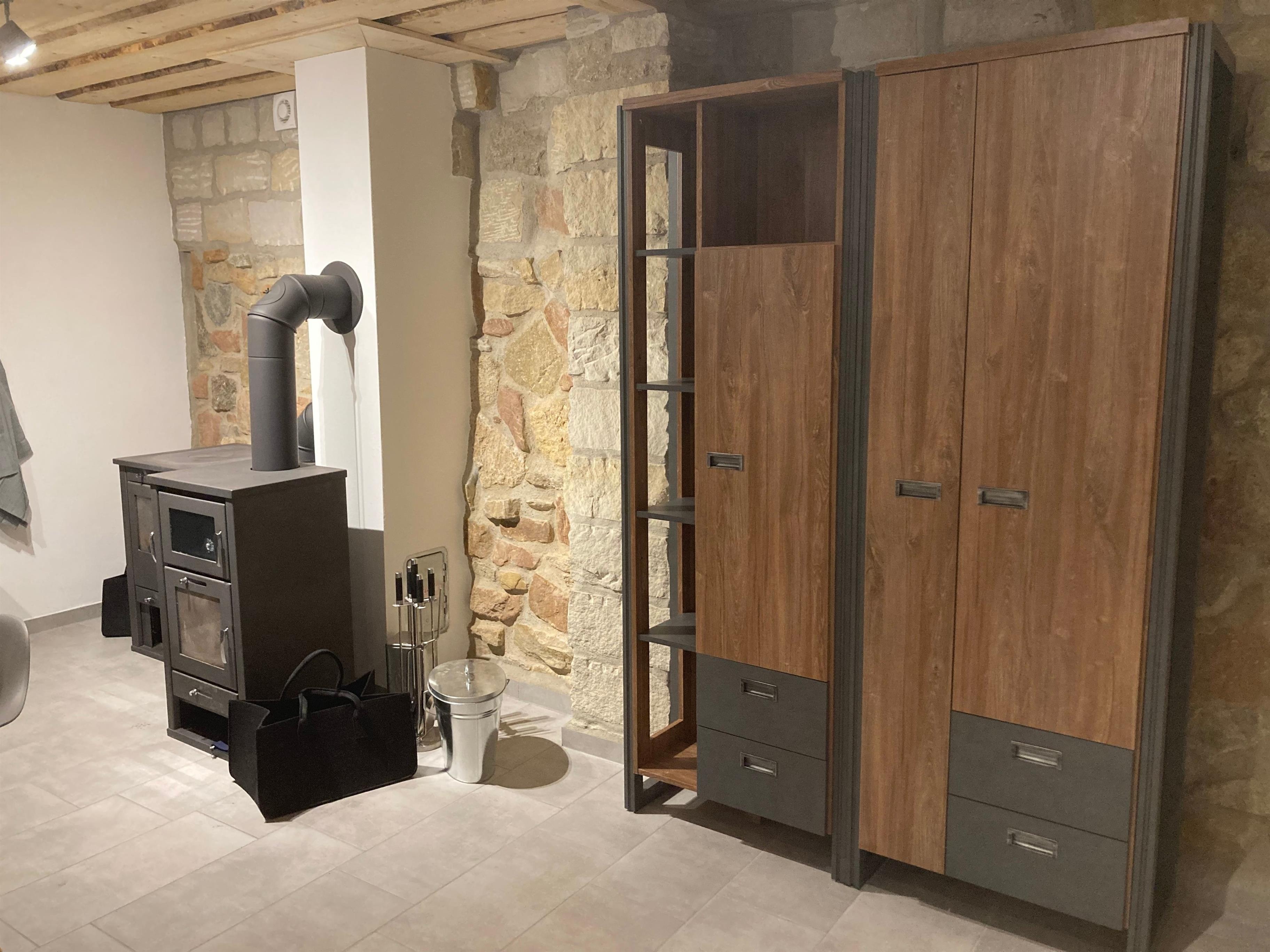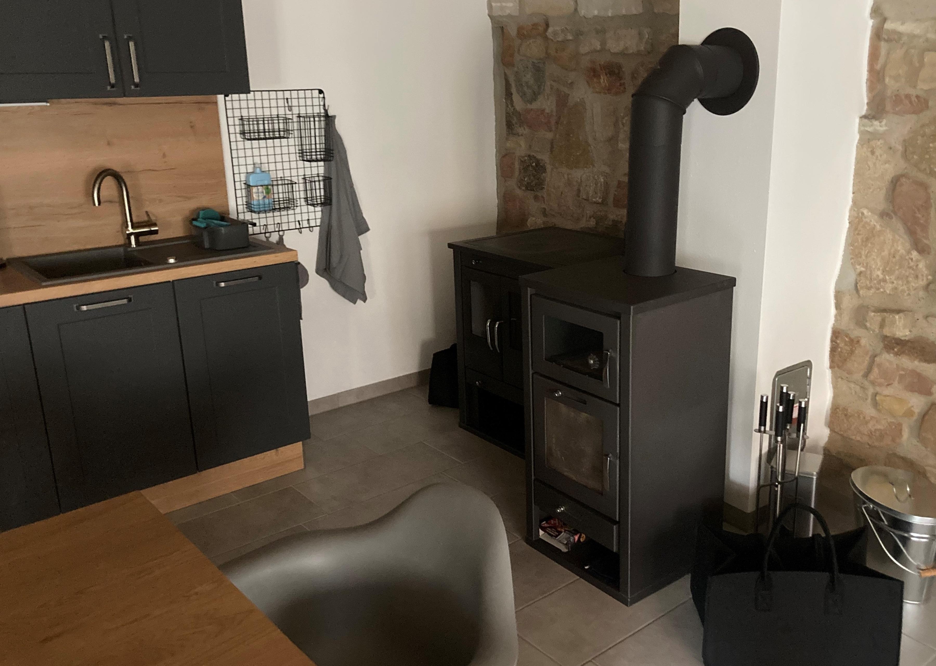 Beheizt werden beide Räume mit Holz über Kaminöfen.