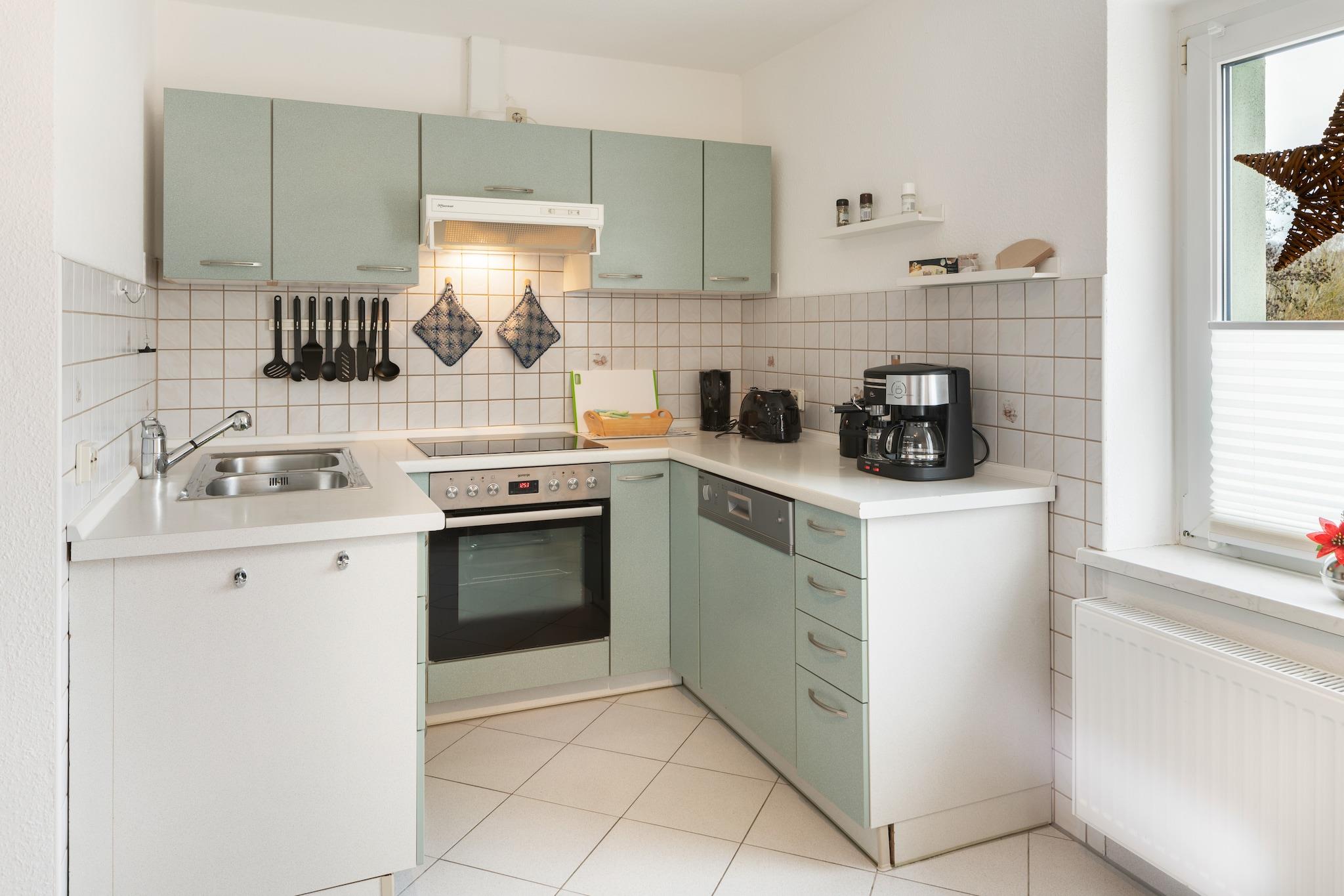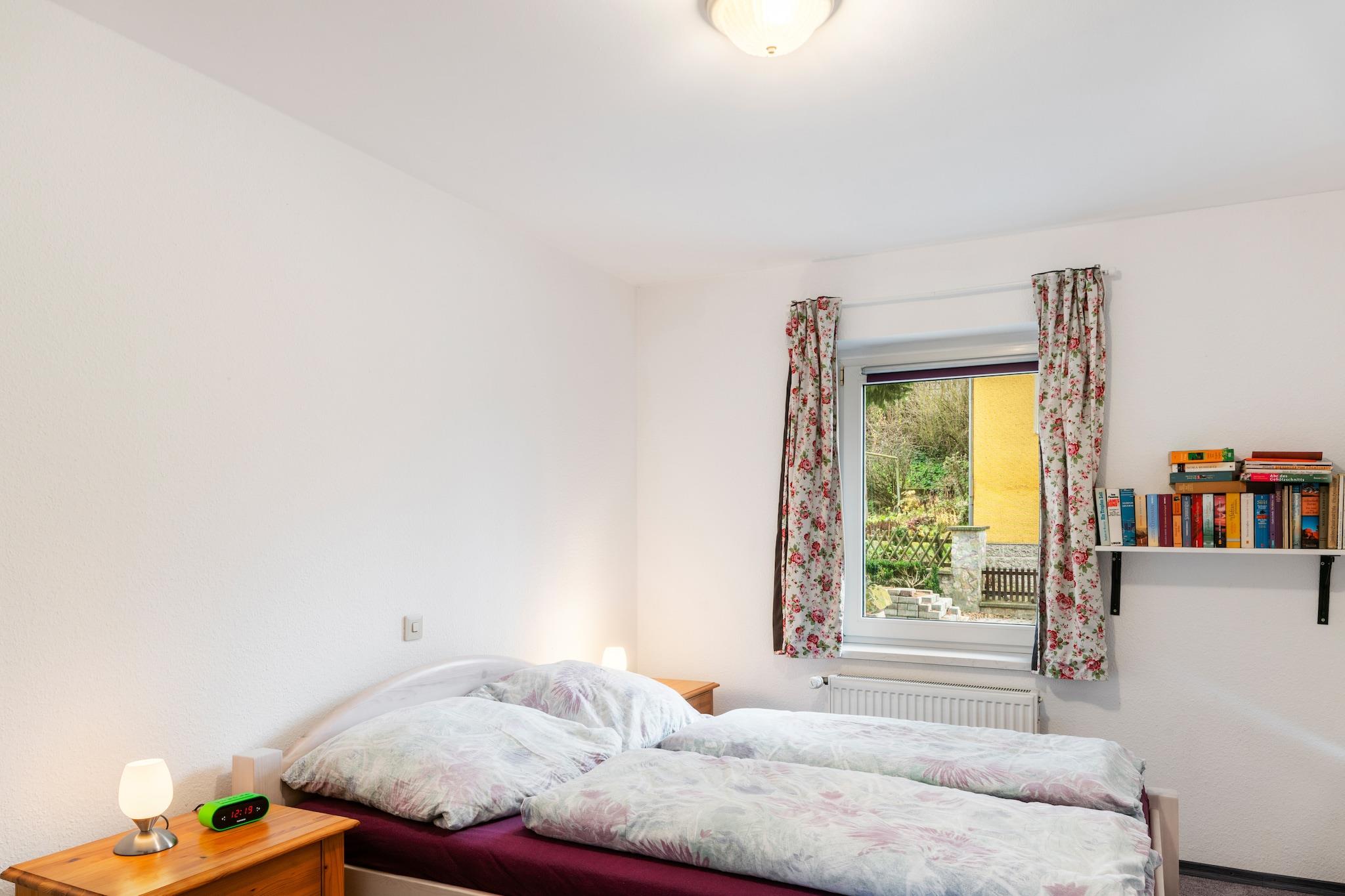 Kun 100 m fra restauranter og offentlig transport er dette charmerende feriehus i stueetagen i Naumburg (Saale) ideelt for par, små familier eller solorejsende - med kæledyr hjerteligt velkomne. Det rummelige køkken er fuldt udstyret med keramisk kogeplade, ovn, mikroovn, opvaskemaskine, køleskab, brødrister, filterkaffemaskine og mere, hvilket gør det nemt at nyde afslappede måltider indendørs eller på den 25 m² overdækkede terrasse. Stuen byder på en behagelig dobbelt sovesofa, kabel-tv og stereoanlæg til hyggelige nætter. Et separat soveværelse har en dobbeltseng (140 × 200 cm) og eget kabel-tv, mens badeværelset har bruser, toilet, håndvask og hårtørrer. Med central gasvarme, insektnet og børnevenligt ekstraudstyr som barneseng, høj stol, legetøj og fortelt er komforten dækket året rundt. Udenfor omfatter den indhegnede private have liggestole, en kulgrill og sikker parkering. Omgivet af skovstier (500 m), vandreture langs floden (300 m) og kulturelle seværdigheder som Naumburg-katedralen i nærheden, balancerer dette ophold roligt tilflugtssted med god lokal adgang.