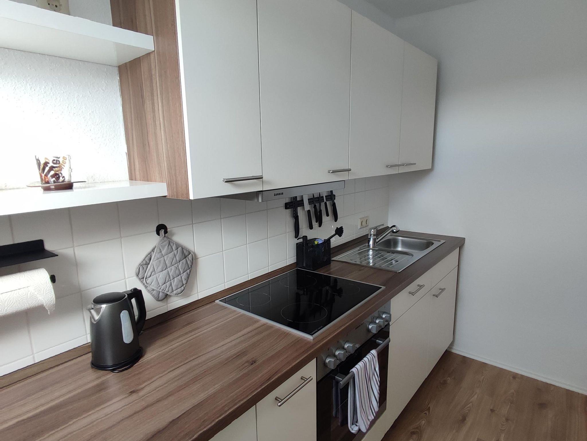Die Küche ist komplett ausgestattet mit Geschirrspüler, Kühlschrank mit Gefrierfach, Herd, Backofen, Wasserkocher, Toaster, Kaffeemaschine.