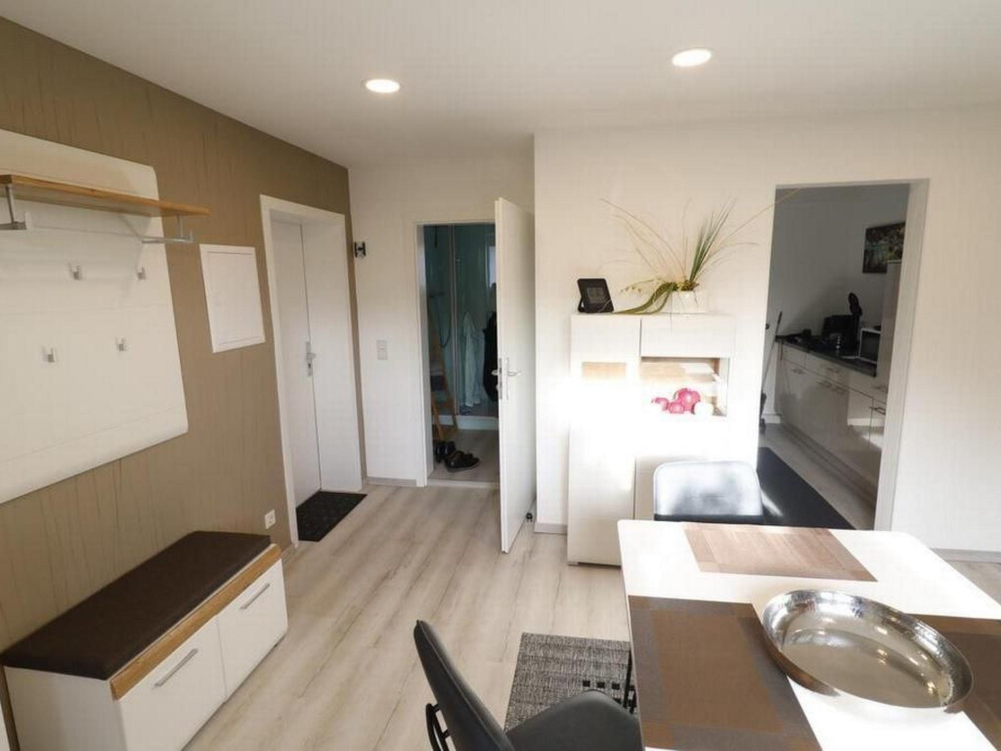 Outside, a small, private terrace with direct access and a view of the carefully tended garden invites you to relax. Here you can enjoy the rural tranquillity or round off the day with a glass of wine in the evening. Smoking is not permitted inside the flat, but the terrace and outdoor area are available for smokers.