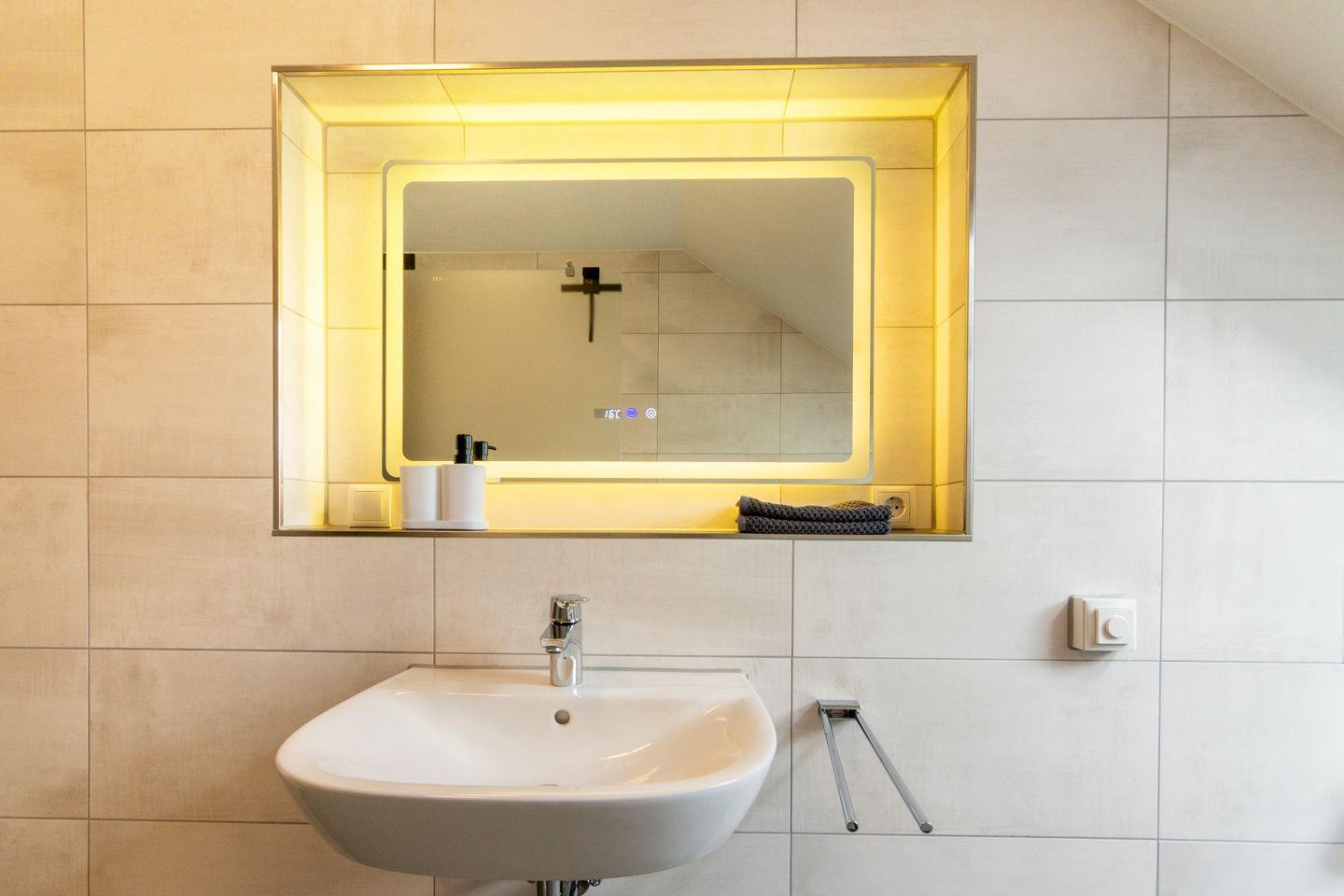 Das moderne Bad ist mit Dusche, Haartrockner und Stauraum ausgestattet. WLAN, Satelliten-TV, ein Wäscheständer, eine Garderobe und ein Staubsauger ergänzen die Ausstattung.