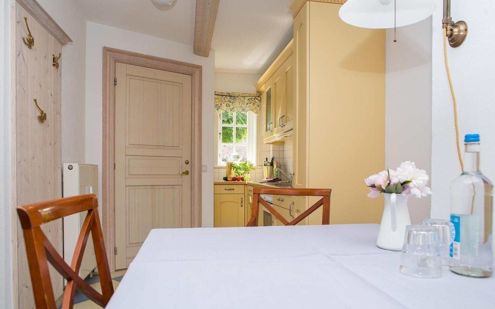 Die helle und freundliche Küche ist mit einem Herd mit Cerankochfeld, einem Backofen, einer Spülmaschine und Kühlschrank ausgestattet.Kaffeemaschine , Toaster sowie viele Küchenutensilien stehen hier zur Verfügung