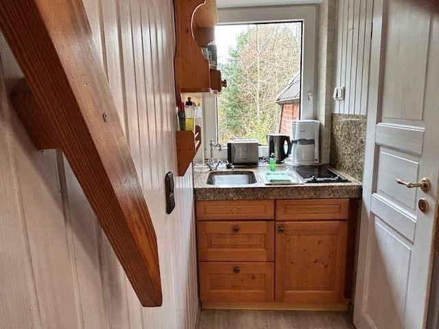 Das Haus Dünenrose in Nebel - Westerheide bietet eine charmante Maisonettwohnung für bis zu 4 Personen im Obergeschoss. Die helle und frische Atmosphäre wird durch die weißen Holzvertäfelungen und die schöne Einrichtung mit Eichenmöbeln im Bauernstil unterstrichen. Die gemütliche Essecke mit Friesenporzellan lädt zum Verweilen ein. Zur Ausstattung gehören ein Badezimmer mit Dusche (Einstieg 23 cm) und WC sowie eine Kochnische mit einem 2-Platten-Herd und einem kleinen Kühlschrank. Eine steile Raumspartreppe führt zu zwei Schlafzimmern: das erste mit zwei Einzelbetten und das zweite mit einem Doppelbett. Den Gästen steht ein großer Gemeinschaftsgarten mit Gartenmöbeln zur Verfügung, sowie überdachte Radständer und kostenfreie Parkmöglichkeiten am Haus. Eine Waschmaschine und ein Trockner sind ebenfalls vorhanden. Hunde sind gegen einen Aufpreis willkommen.
