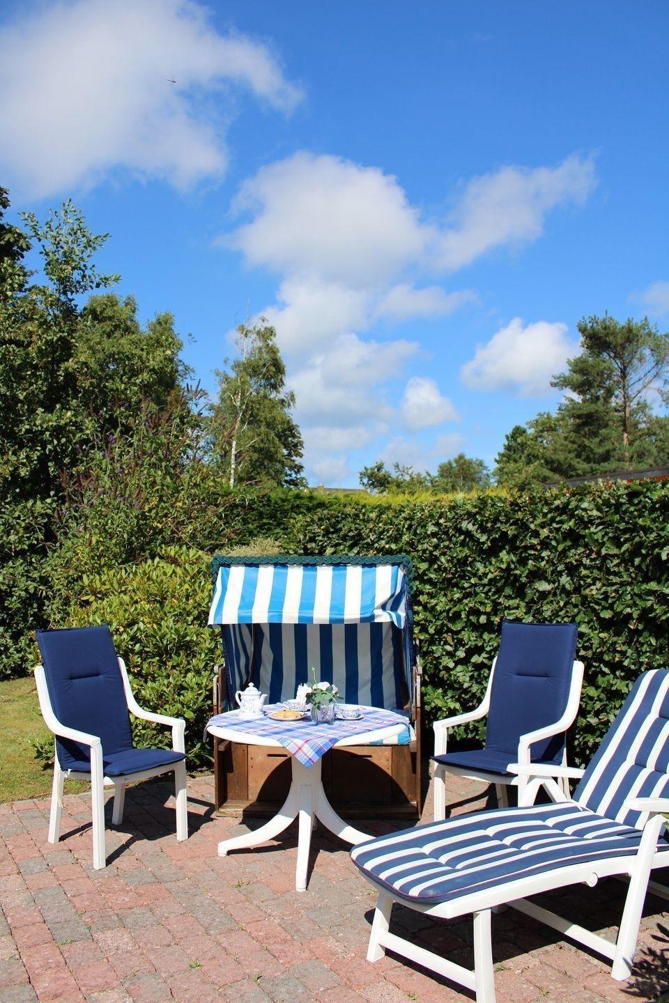 Im Außenbereich der Unterkunft erwartet die Gäste ein malerisches, sonniges 3000 qm großes Gartengrundstück. Jede der vier gepflegten Ferienwohnungen verfügt über eine eigene Terrasse, ausgestattet mit einem klassischen Strandkorb, Gartenmöbeln und einer Sonnenliege – ideal für entspannte Stunden im Freien. Der großzügige Garten lädt zum Verweilen ein und bietet genügend Platz zum Spielen oder Entspannen. Die Lage ist strandnah und ruhig, wodurch sowohl der Strand als auch der historische Ortskern von Nebel mit seinen Einkaufsmöglichkeiten in wenigen Minuten zu Fuß erreichbar sind. Für praktischen Komfort stehen Parkplätze und Fahrradständer direkt am Haus zur Verfügung. Gäste können zudem die gemeinschaftlich nutzbaren Münzwaschmaschine und Münztrockner im Untergeschoss nutzen. Hunde sind gegen Aufpreis willkommen.