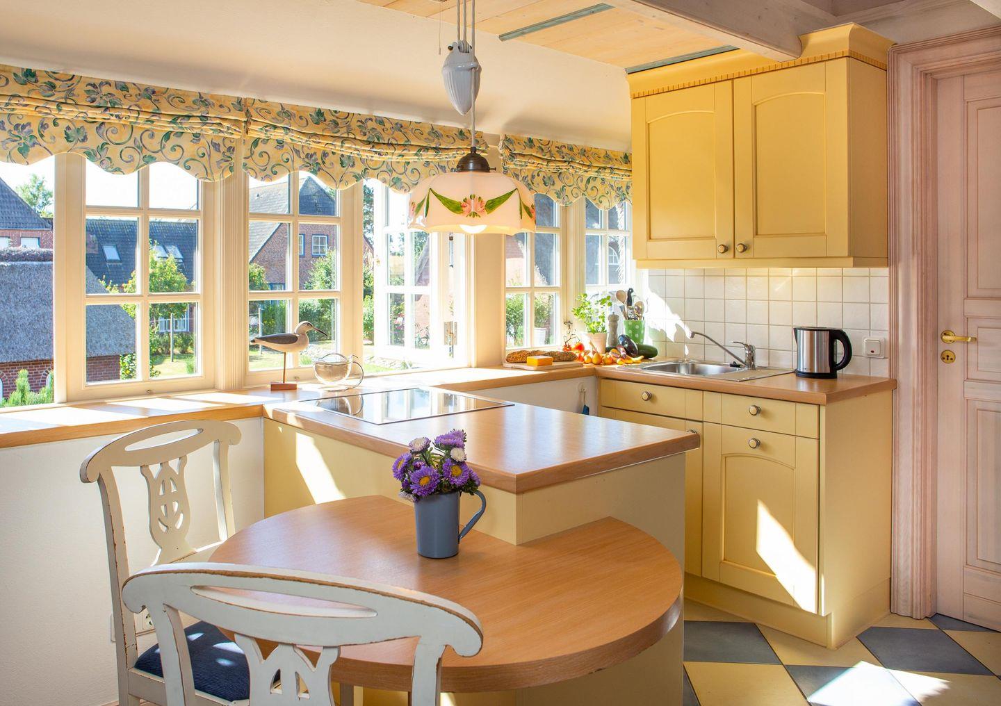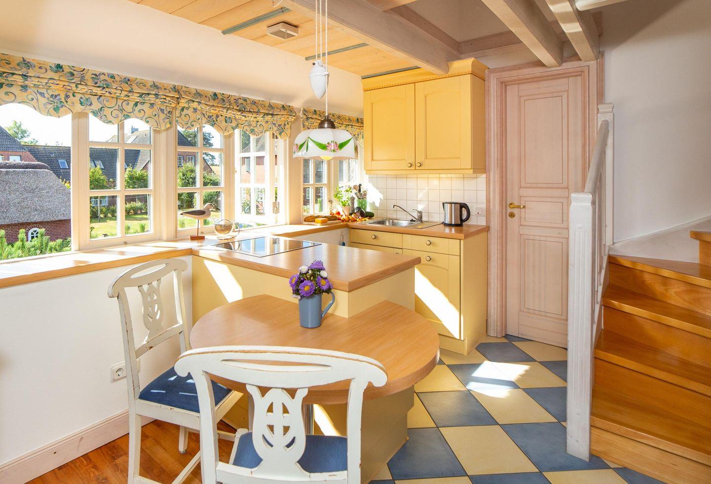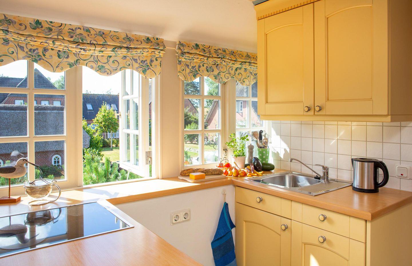 Die offene Küche ist hell und freundlich und mit ihren Friesenfenster sonnenverwöhnt.