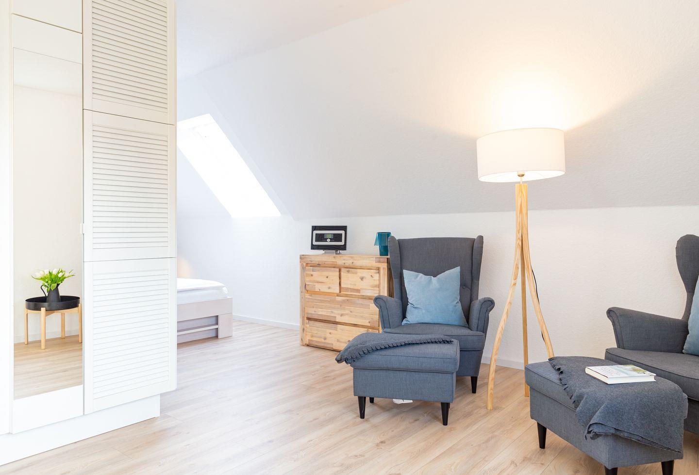 Die Wohnung "54 Nord" liegt extrem ruhig und ist trotzdem nah am Nebeler Ortskern. Eine moderne Einrichtung bietet Raum für Gemütlichkeit und Entspannung.