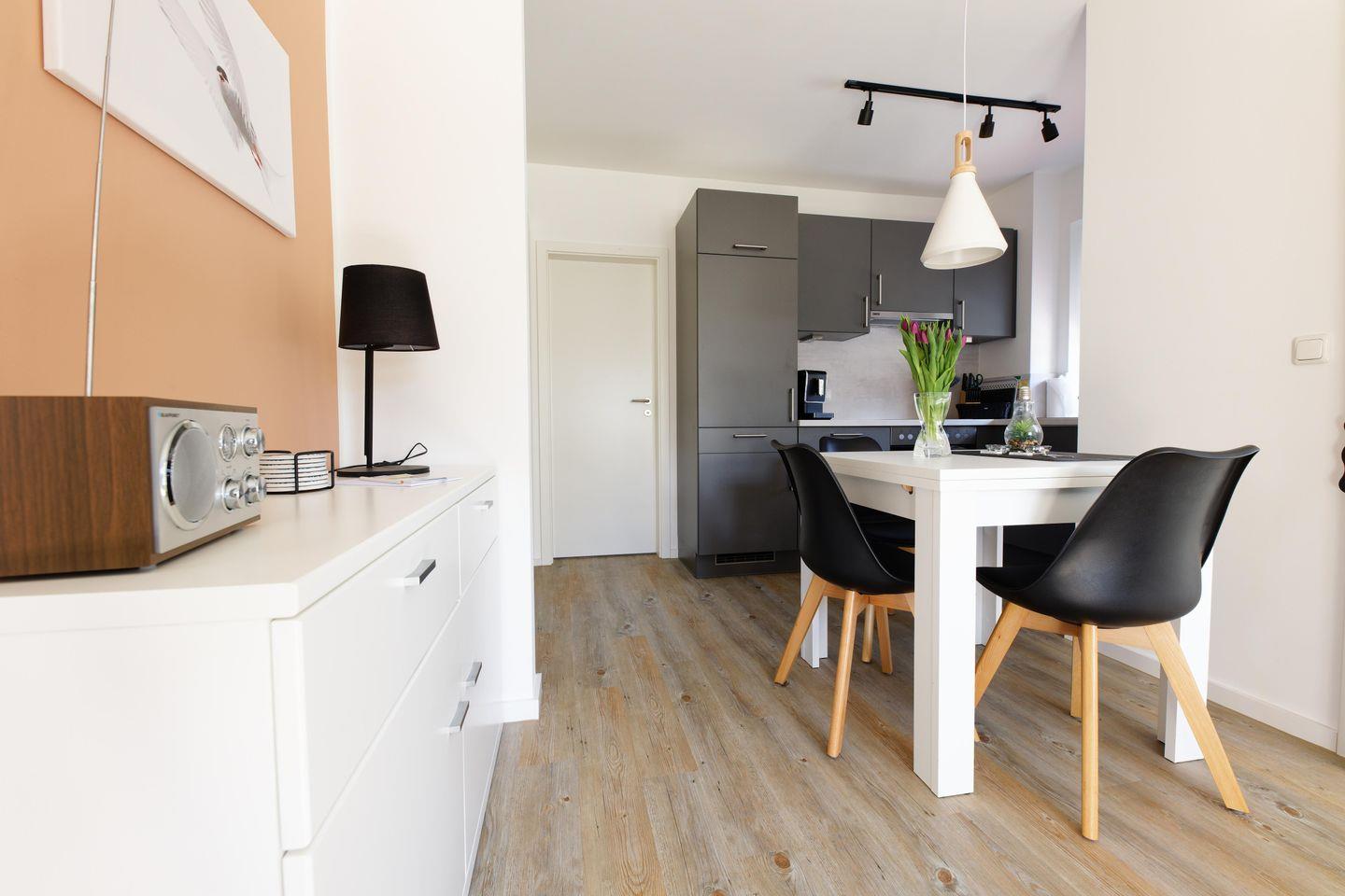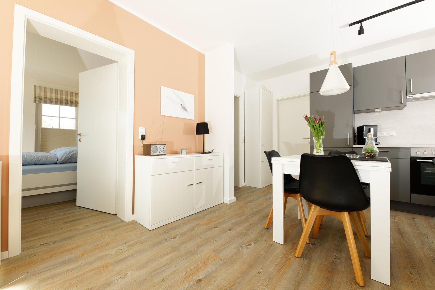 Wohn-/Esszimmer, Küche, 1 Duschbad/ WC, 1 Doppelschlafzimmer, 1 Einzelschafzimmer