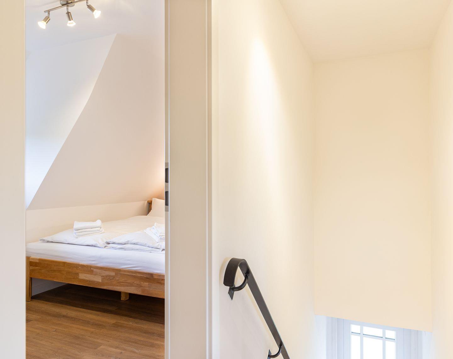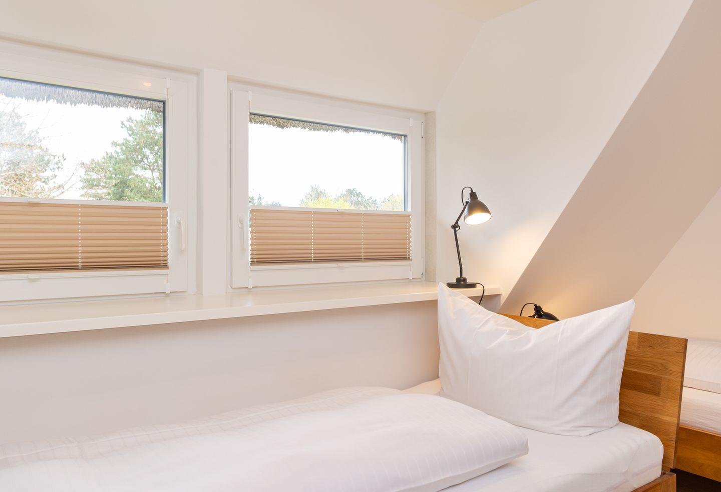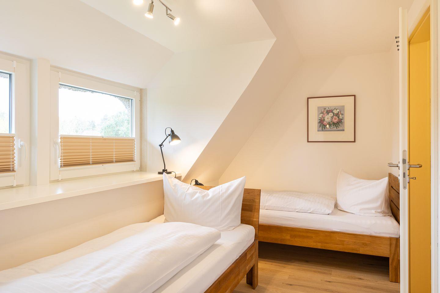 - Schlafzimmer mit einem 160 x 200 cm Doppelbett und 2 Einzelbetten 90 cm breit