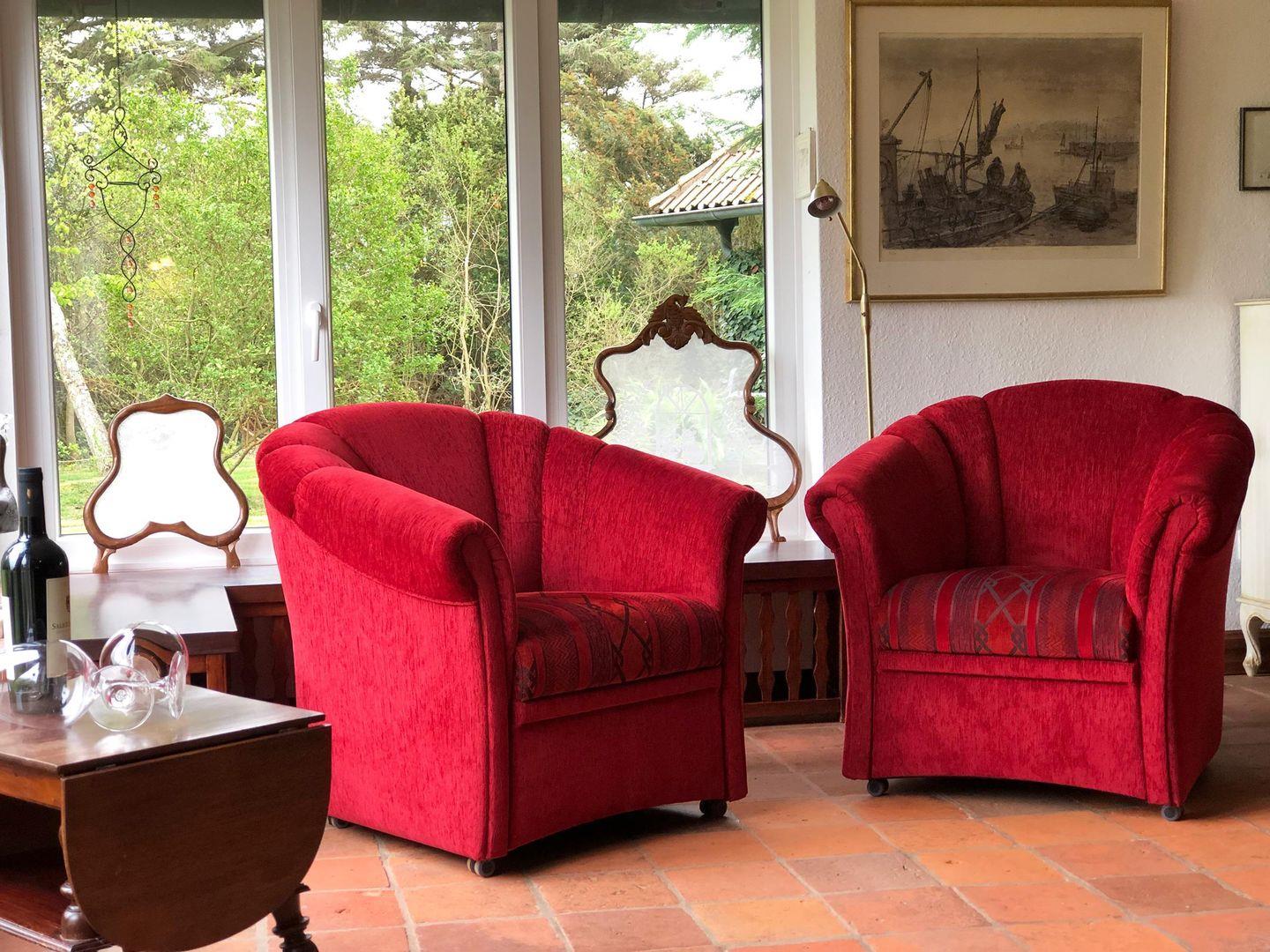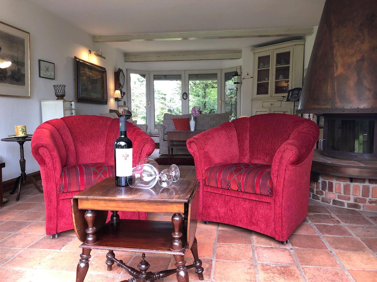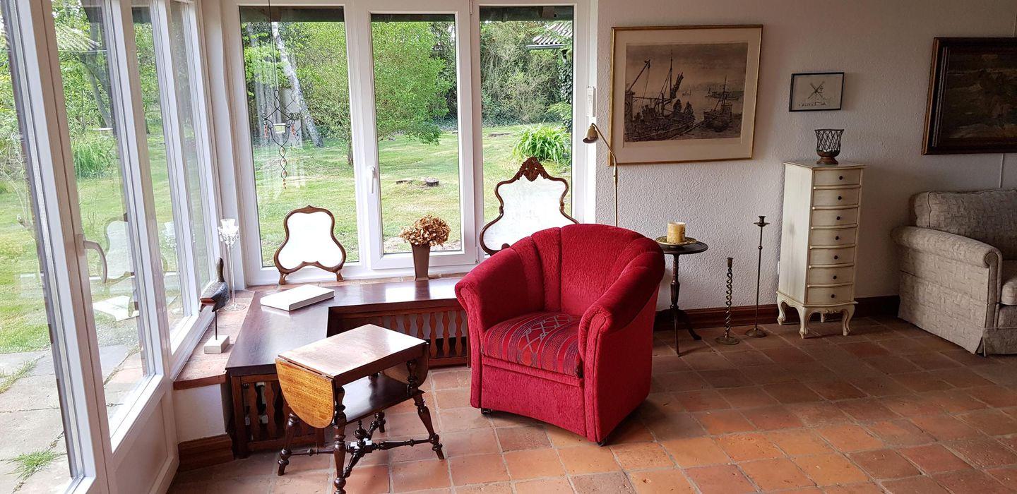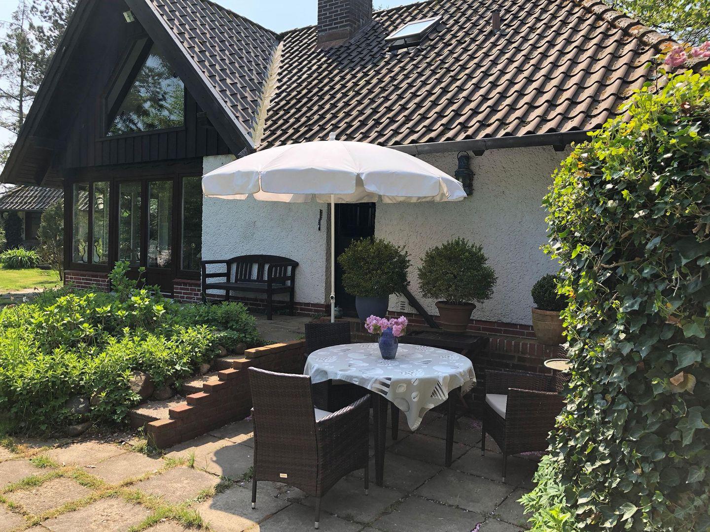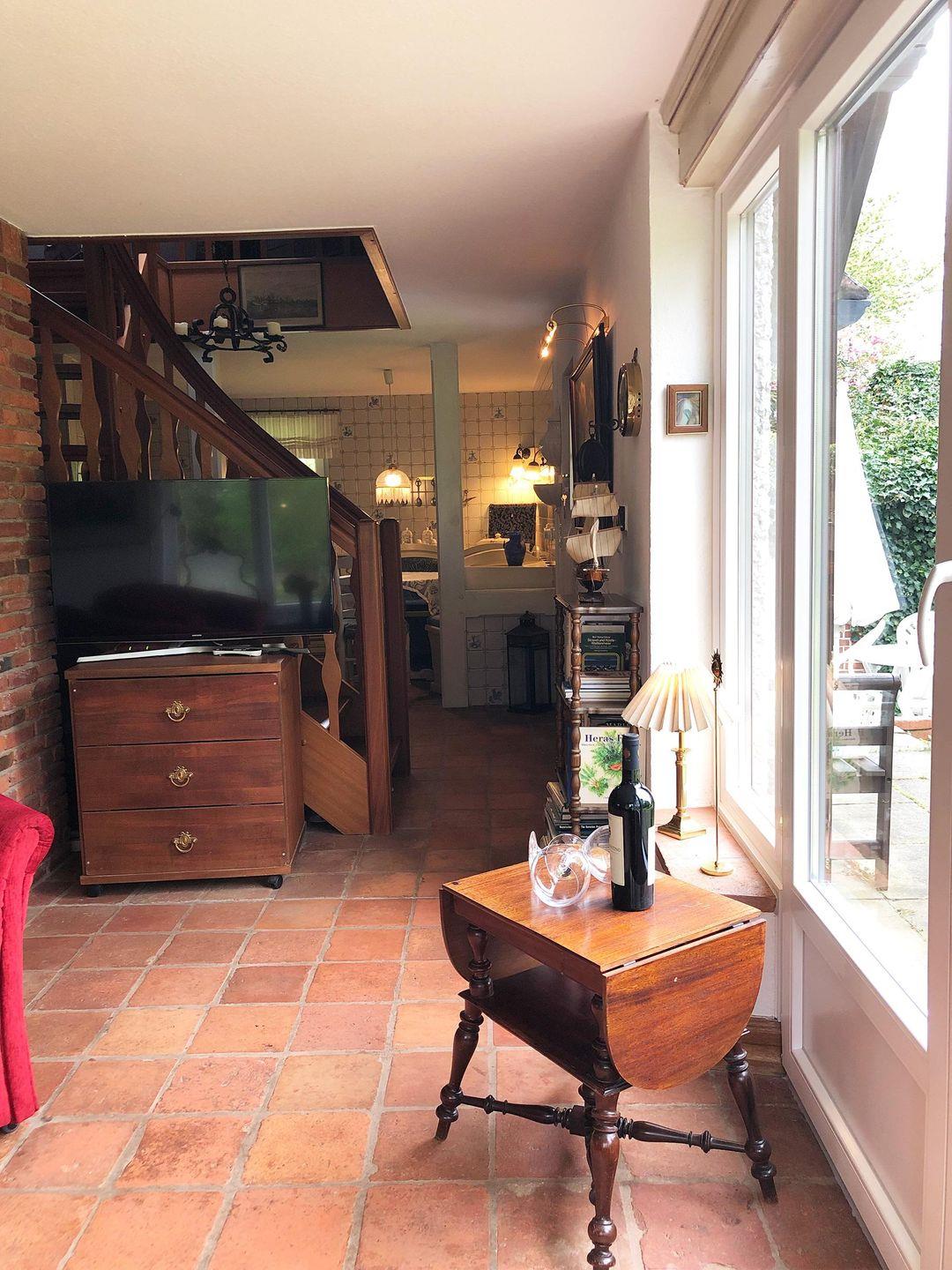 Die Wohnung verfügt über 1 Wohnraum mit Schlafcouch, Kamin, WLAN, Sat-TV und offener Küche, 1 Schlafzimmer in der Empore, 1 Badezimmer mit Dusche und WC; liegt versteckt hinter Kiefern auf einem großen, parkähnlichen Grundstück mit direktem Zugang zum Wattenmeer.