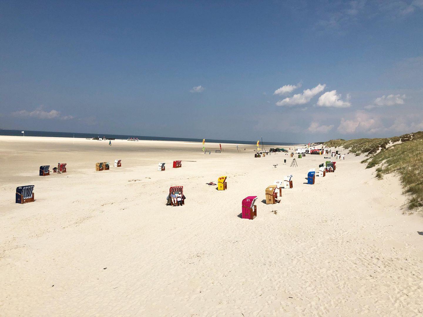 Bei klarem Wetter sehen Sie die Insel Föhr gegenüber und alle Halligen mit Ihren Leuchtfeuern am Abend. Der Ort Nebel mit seinem Kirchturm auf der linken Seite ist gut zu erkennen. Der Blick geht dann weiter über das Wattenmeer bis zur Nordspitze von Amrum.