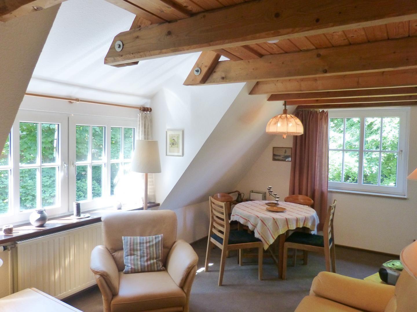 Die Wohnung verfügt über 1 Wohnraum mit WLAN, Sat-TV und offener Küche, 1 offenes Schlafzimmer im Dachgeschoss, 1 Badezimmer mit Dusche und WC im 1. Obergeschoss; Garten mit Gartenmöbeln (April bis Oktober) zur Gemeinschaftsnutzung.