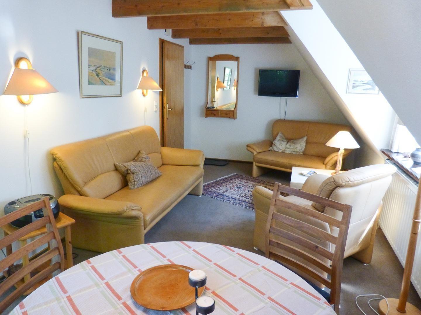 Die Ferienwohnung *Anne* im 1. Ober- und Dachgeschoss des Hauses *Troeltsch* in Nebel auf Amrum ist eine 2-Zimmer-Maisonette-Ferienwohnung (ca. 45 qm Grundfläche) mit Schlafmöglichkeiten für 2 bis 4 Personen.