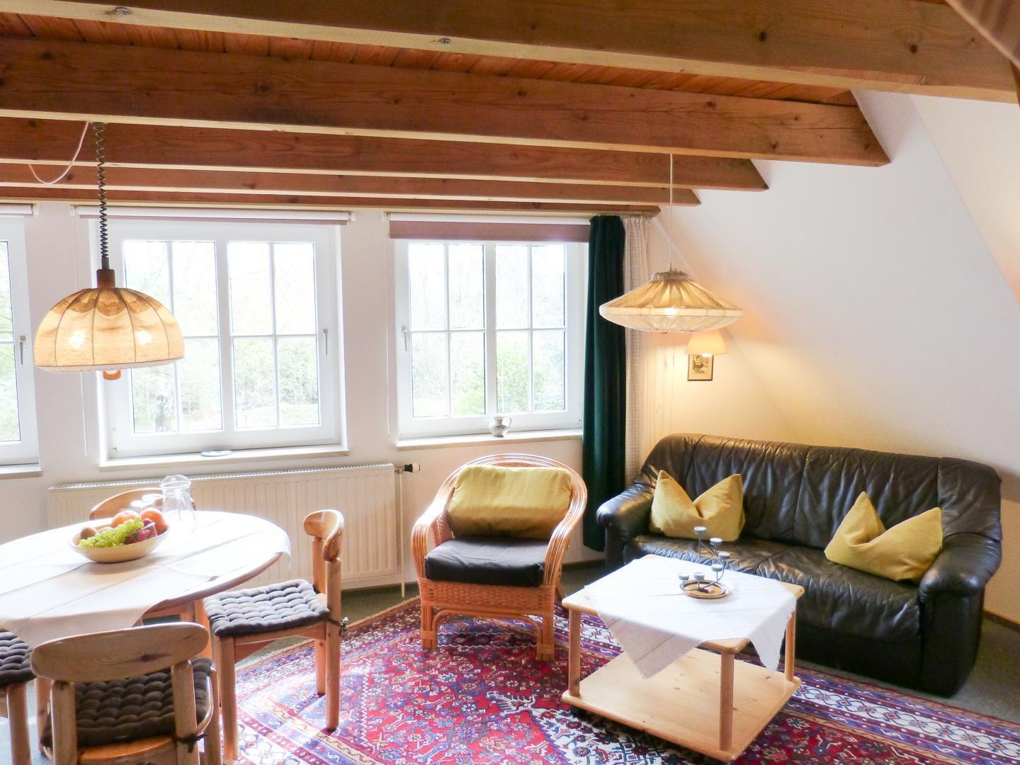 Die Ferienwohnung „Bi Elschen" im 1. Ober- und Dachgeschoss des Hauses „Troeltsch" in Nebel auf Amrum ist eine 2-Zimmer-Maisonette-Ferienwohnung (ca. 42 qm Grundfläche) mit Schlafmöglichkeiten für 1 bis 2 Personen.