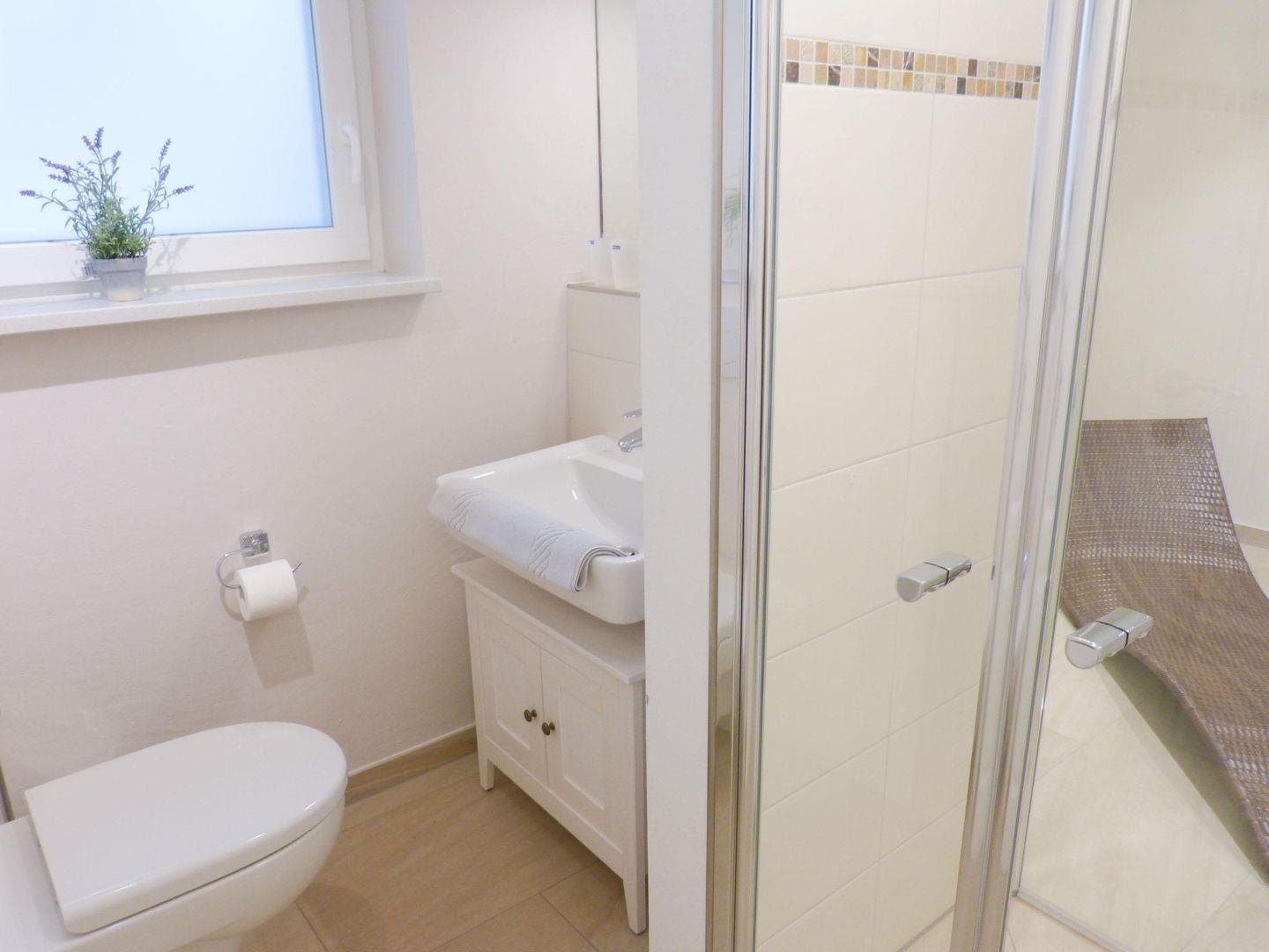 Die Wohnung verfügt über 1 Wohnraum mit Kamin, WLAN, Sat-TV und offener Küche, 2 Schlafzimmer, 1 Relax- / Schlafraum im Kellergeschoss, 3 Badezimmer mit Dusche und WC; eine eigene Süd-Terrasse und Garten mit Gartenmöbeln (April bis Oktober).