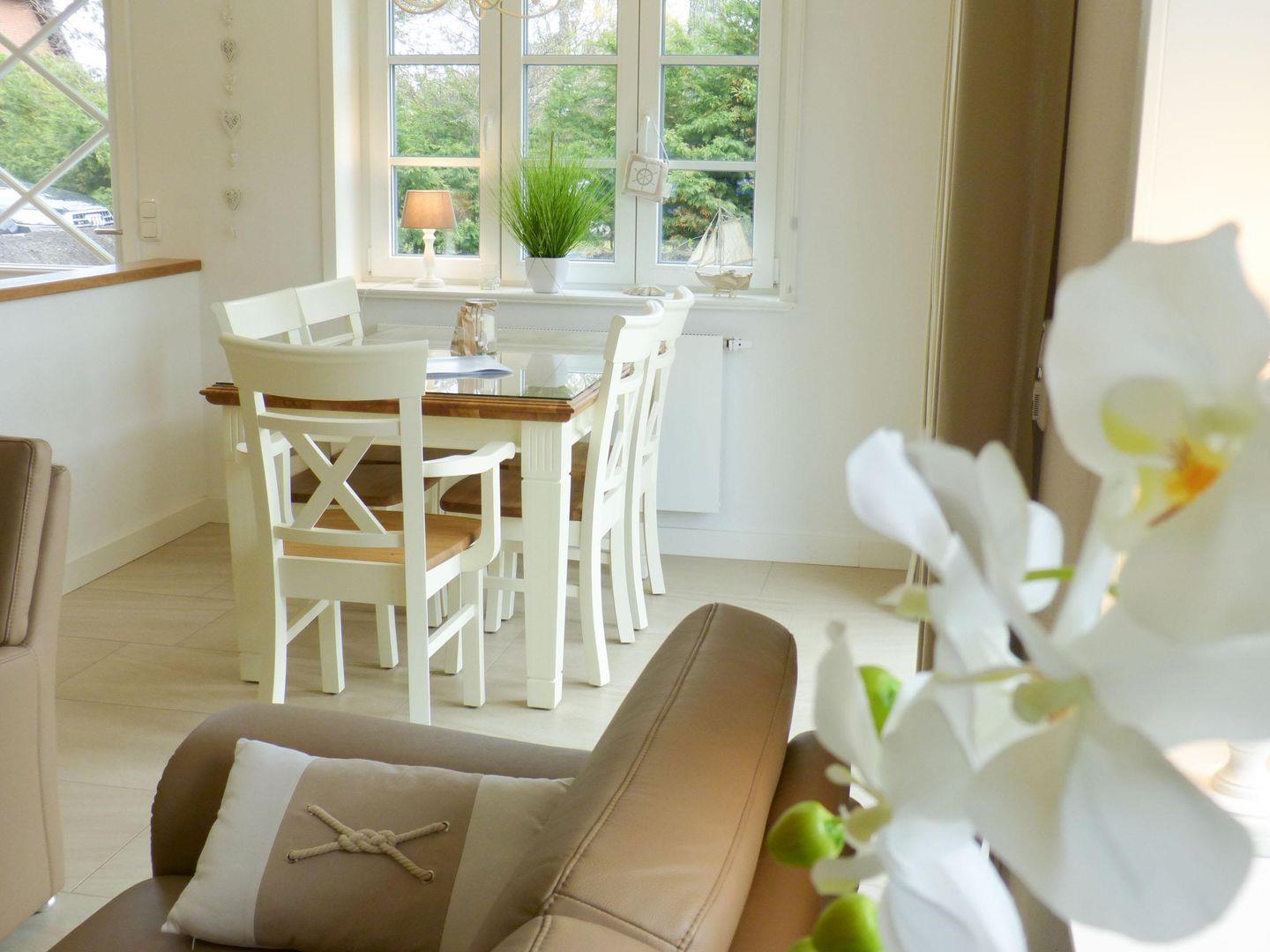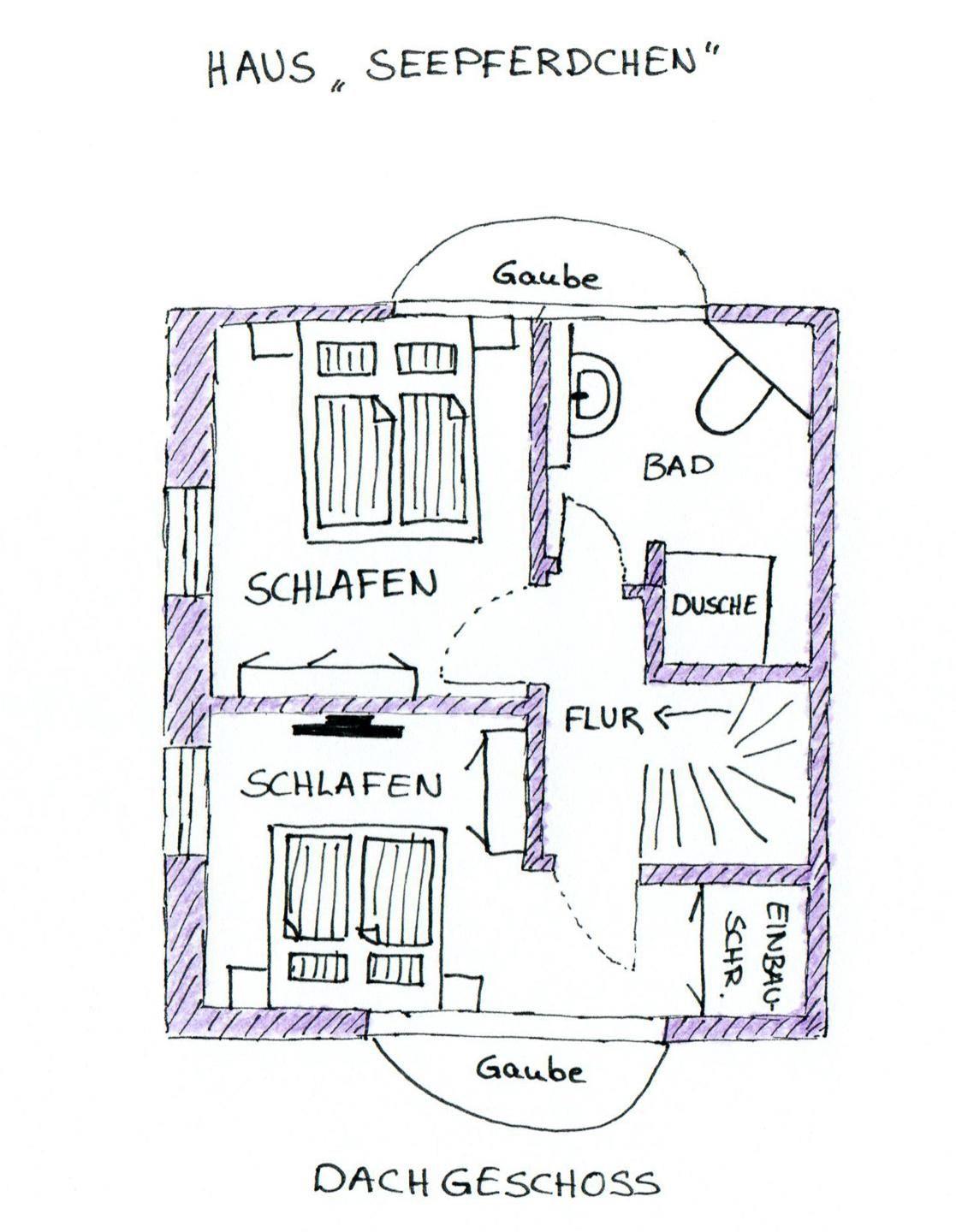 Die 4-Zimmer-Friesenhaushälfte *Seepferdchen* unter Reet (ca. 108 qm Grundfläche) über 3 Etagen im *Heidehüs* in Süddorf auf Amrum bietet Schlafmöglichkeiten für 2 bis 5 Personen.