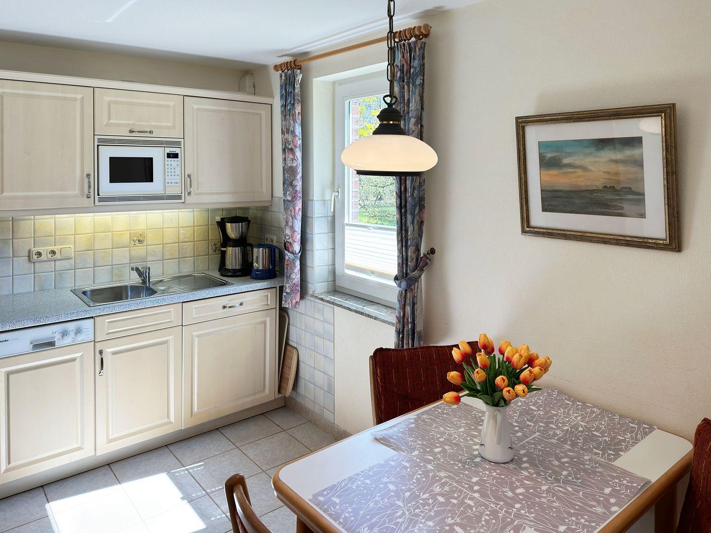 Die Ferienwohnung *Üüs Aran 4* im Erdgeschoss des Hauses *Üüs Aran* in Süddorf auf Amrum ist eine 3-Zimmer-Ferienwohnung (ca. 45 qm Grundfläche) mit Schlafmöglichkeiten für 2-4 Personen.