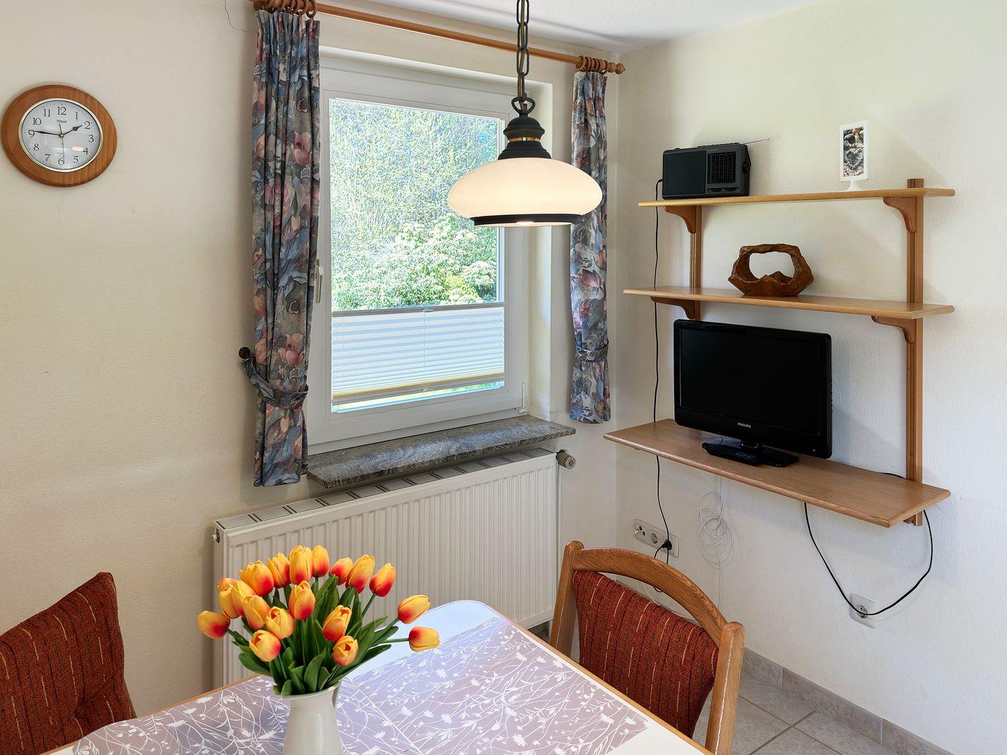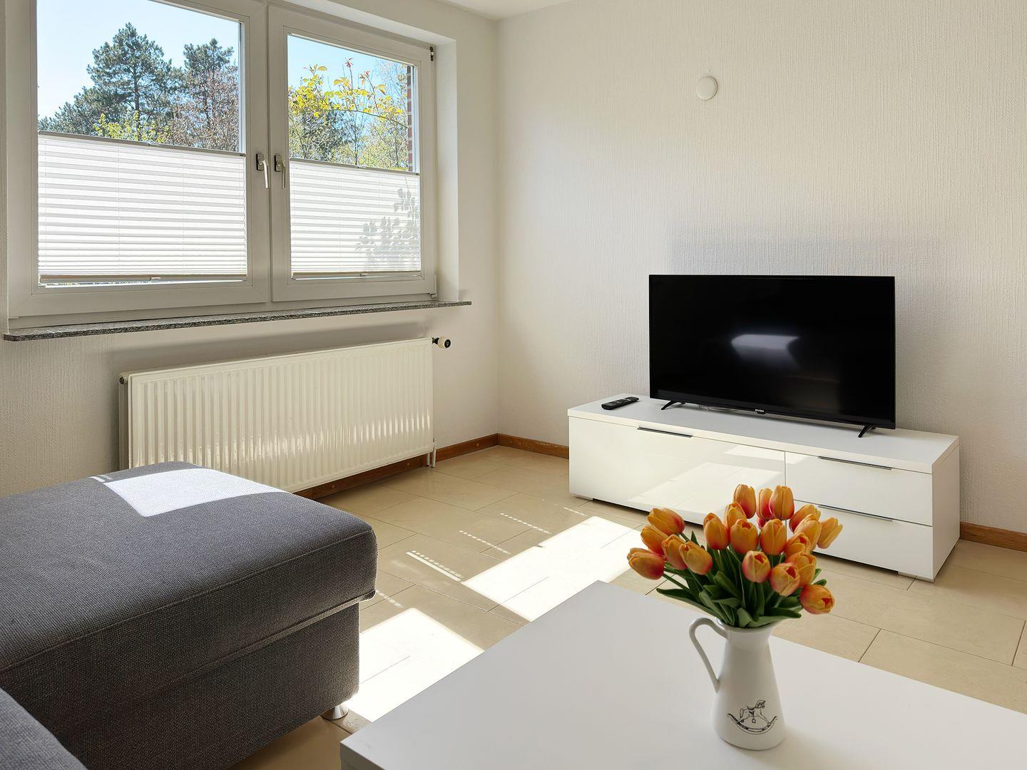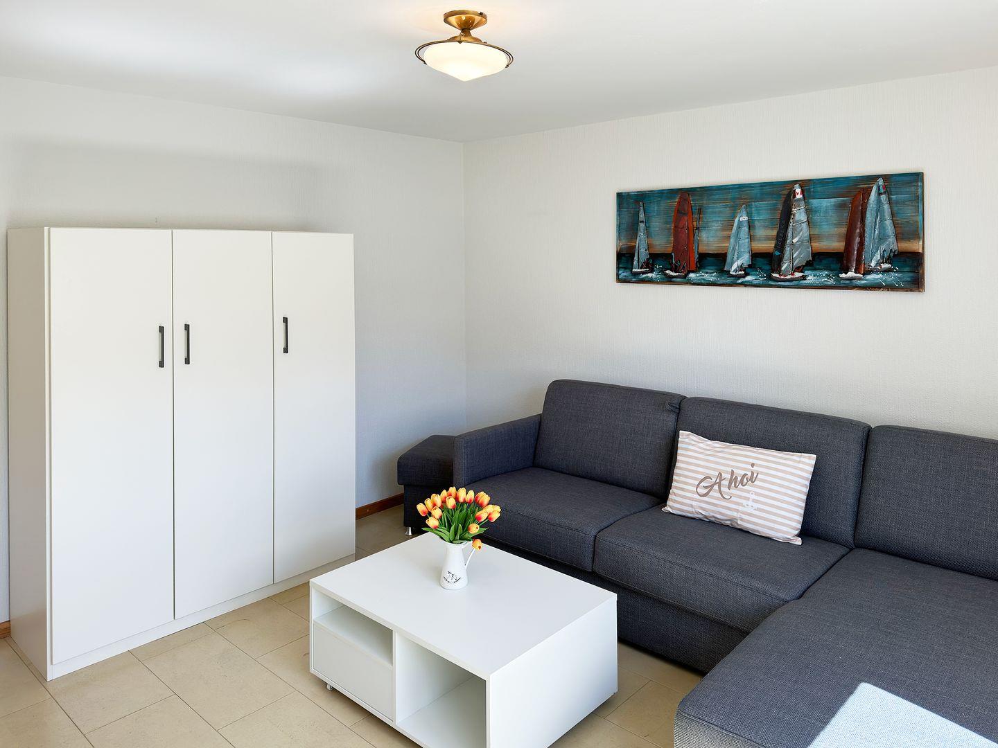 Die Wohnung verfügt über 1 Wohnraum mit WLAN, Sat-TV, 1 Küche, 1 Schlafzimmer, 1 Badezimmer mit Dusche und WC; Garten zur Gemeinschaftsnutzung mit Gartenmöbeln (April bis Oktober), PKW-Stellplatz.