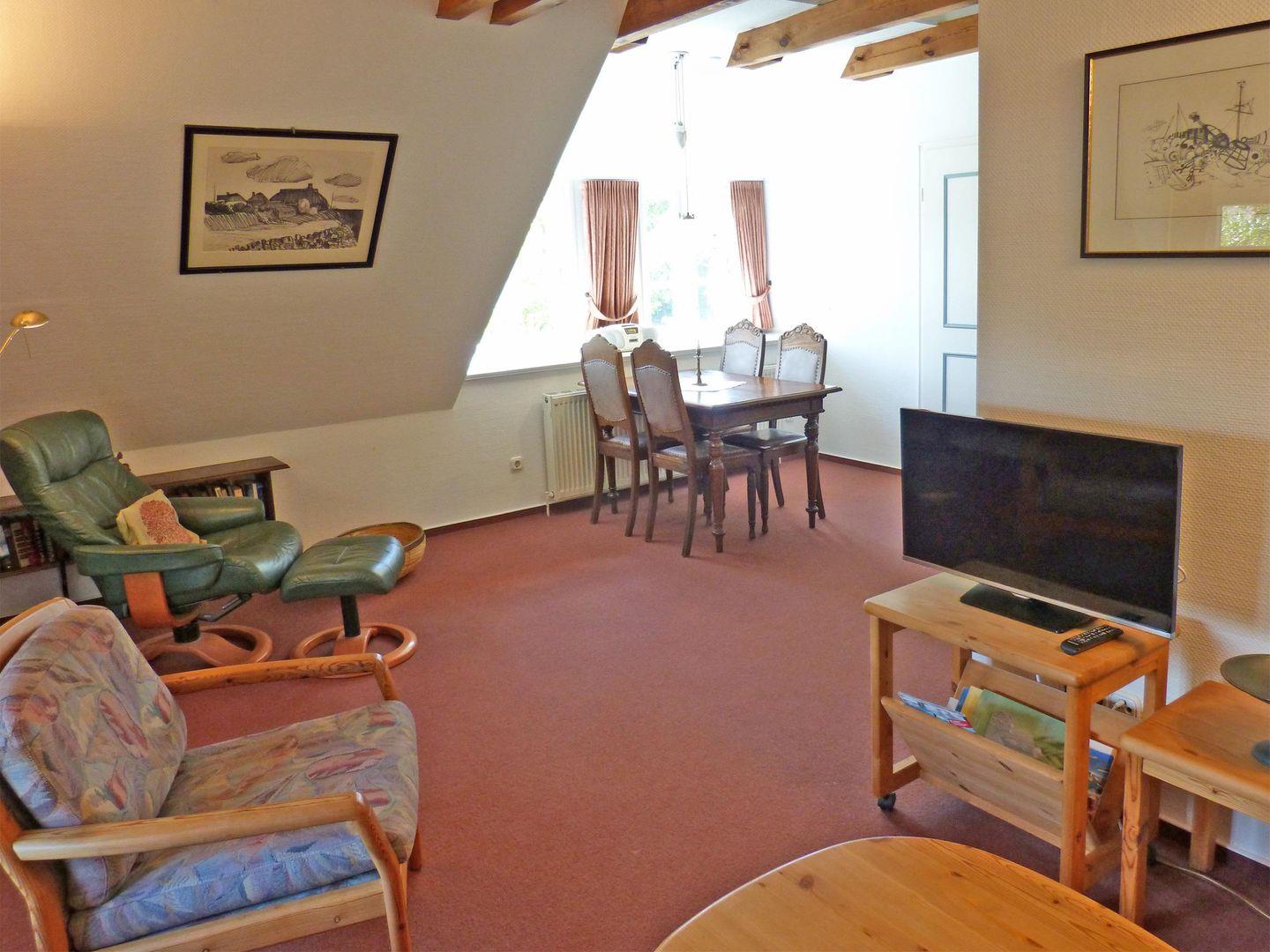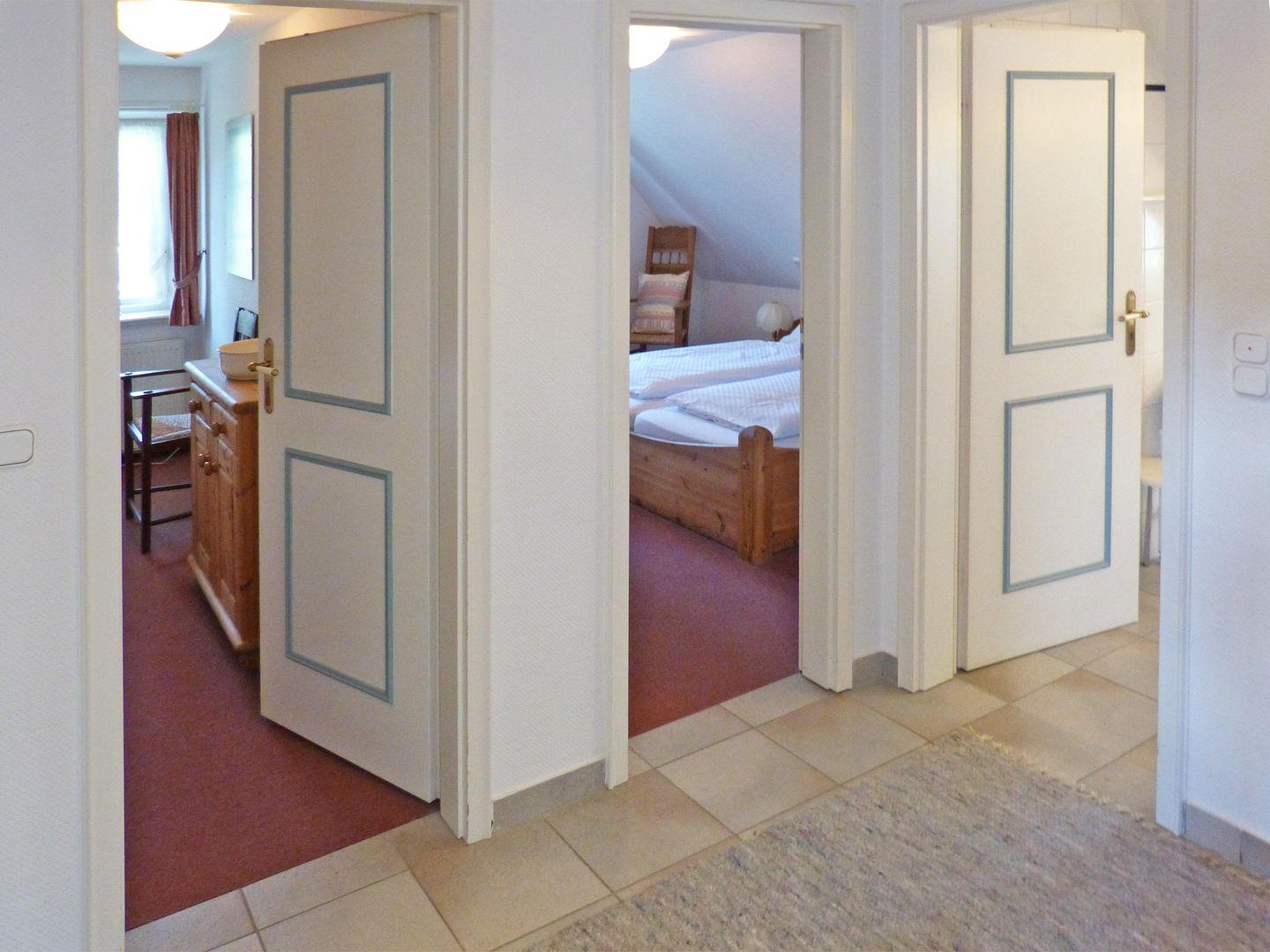 Die Ferienwohnung *Sillo´s Hüs 3* im 1. Obergeschoss des Hauses in Nebel auf Amrum unter Reet ist eine 3-Zimmer-Ferienwohnung (ca. 73 qm Grundfläche) mit Schlafmöglichkeiten für 2 bis 4 Personen.