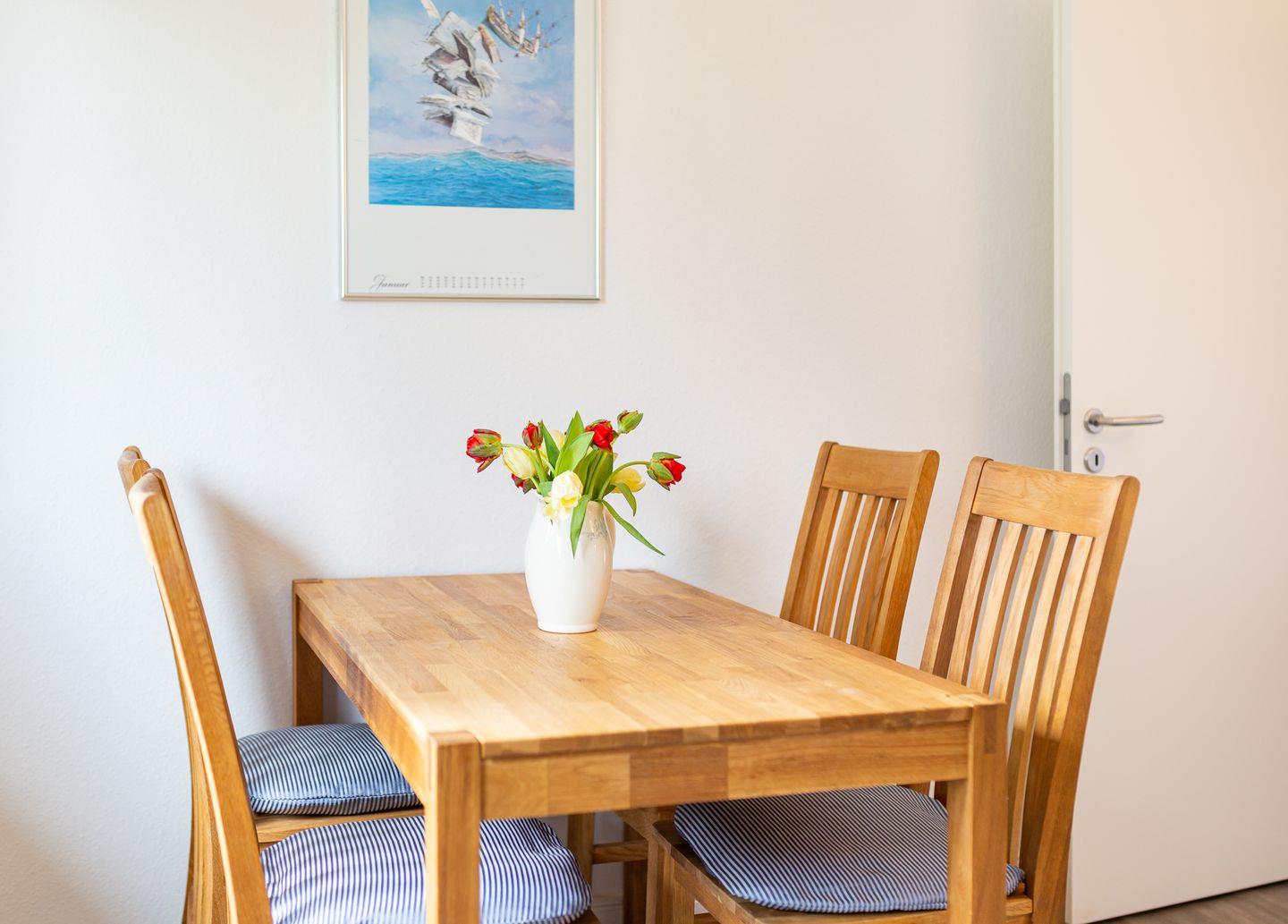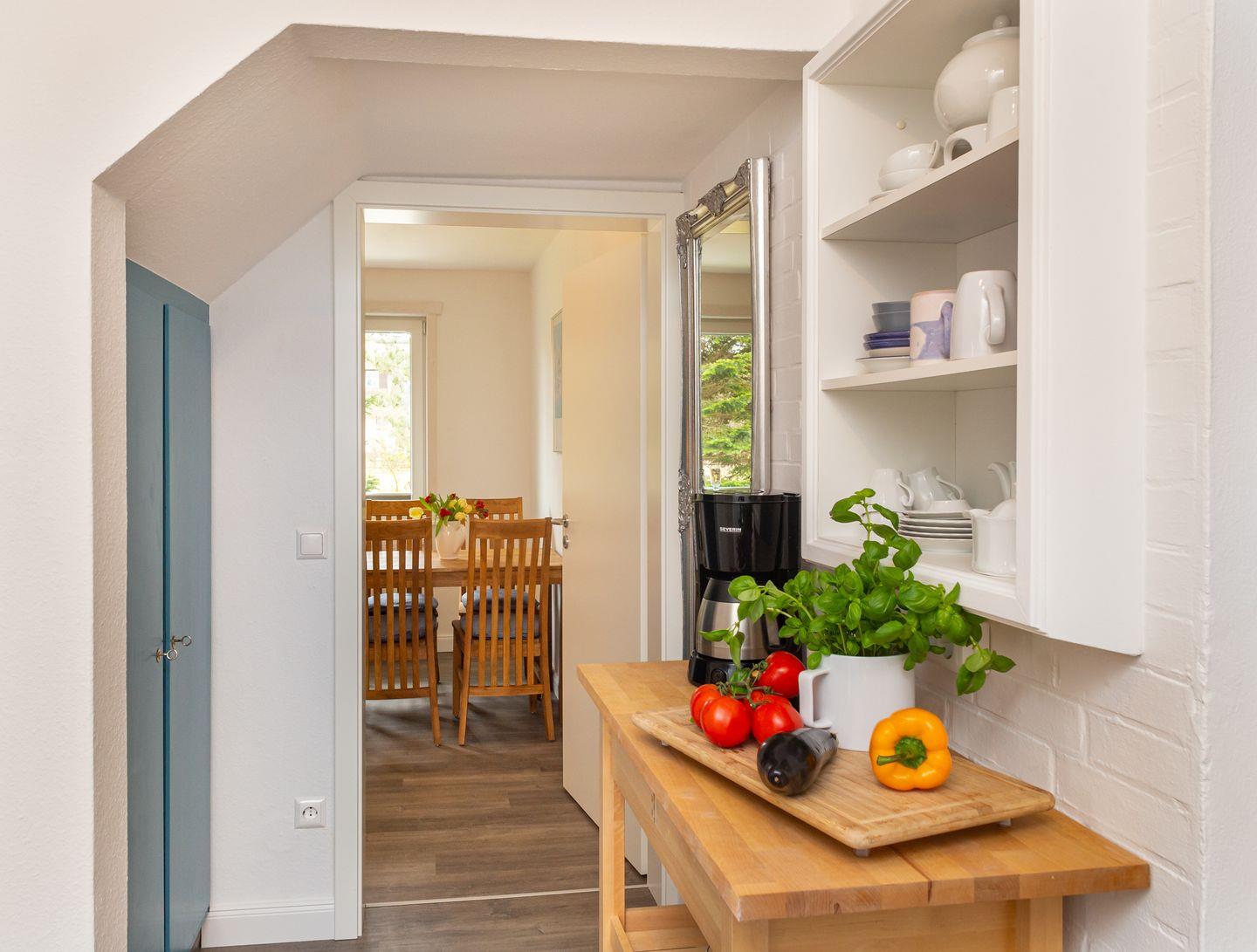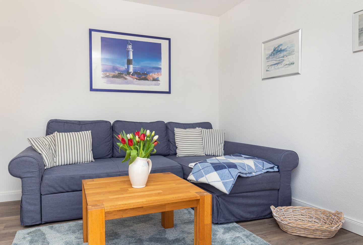 Das Reetdachhaus der Familie Petersen liegt im wunderschönen Ortsteil Westerheide der Gemeinde Nebel. Dort machen Sie Urlaub in unmittelbarer Nähe zum Wald der Nordseeinsel. Das Haus ist von einem großen Garten umgeben, der Ihnen zur Verfügung steht. Die Wohnung Hortensie liegt im Erdgeschoß des Reetdachhauses. Sie verfügt über ein Wohnzimmer mit einem Sofa, einem Flachbild TV, einem Esstisch mit vier Stühlen, einem gemütlichen Schlafzimmer mit einem Doppelbett und Gartenblick. Die separate Küche ist mit einem 2-Platten-Ceran-Kochfeld. Toaster, Kaffeemaschine, Wasserkocher und Küchenutensilien ausgestattet. Das Duschbad hält einen Fön für sie bereit.