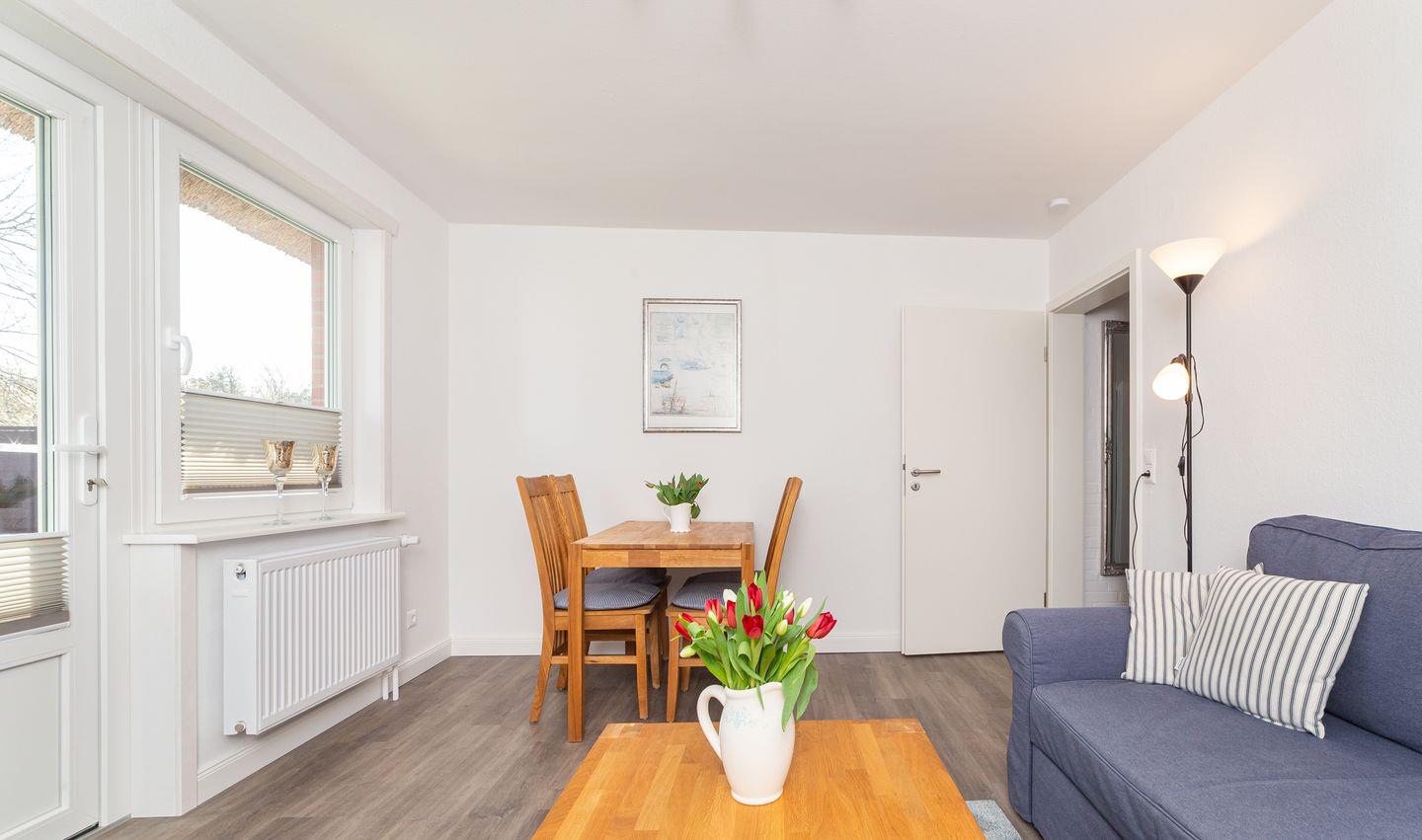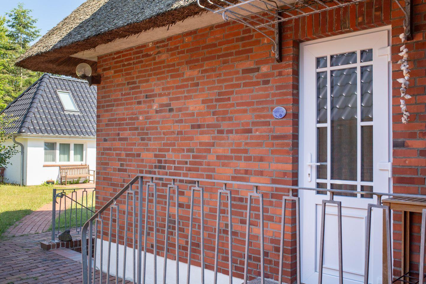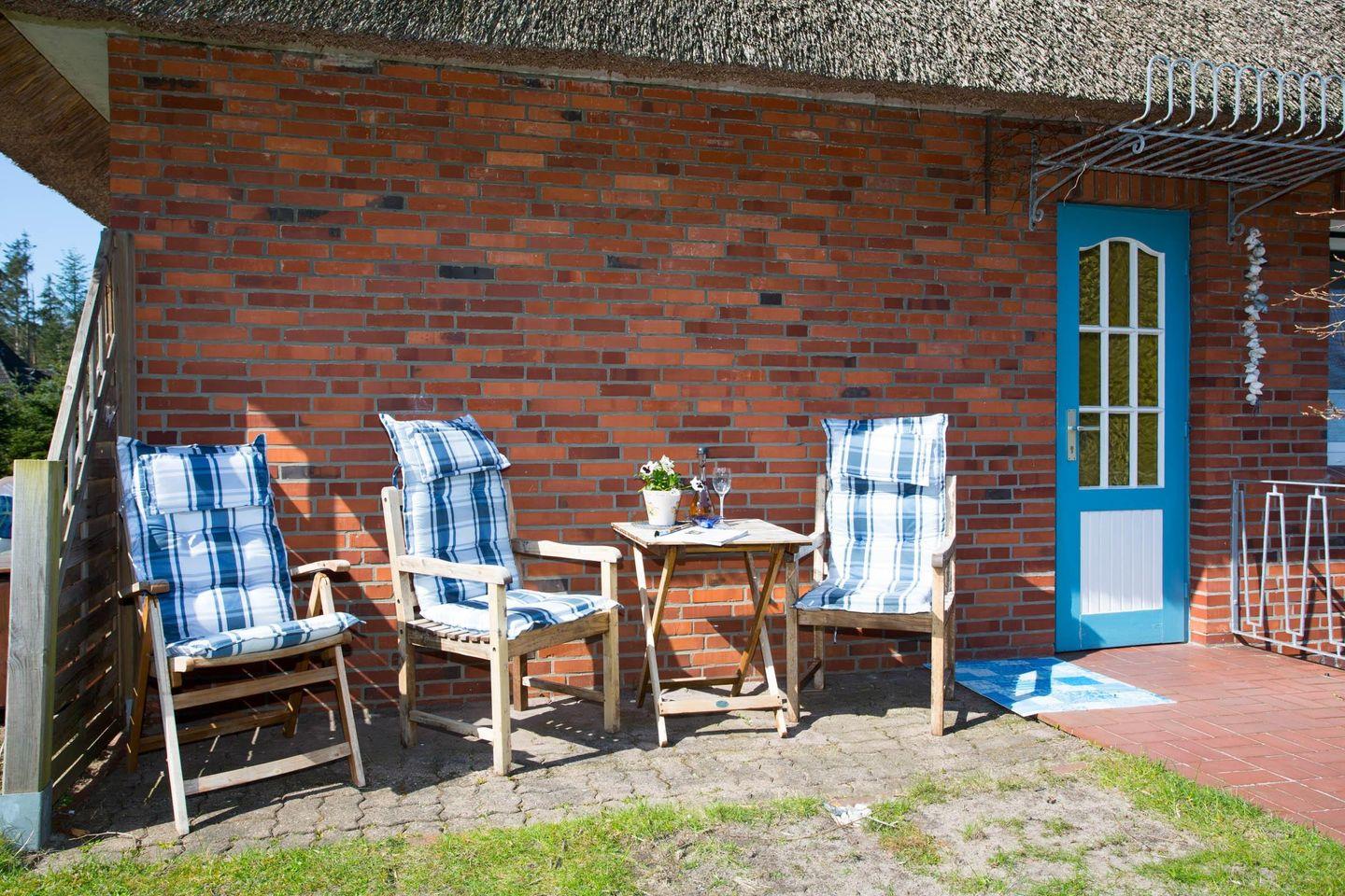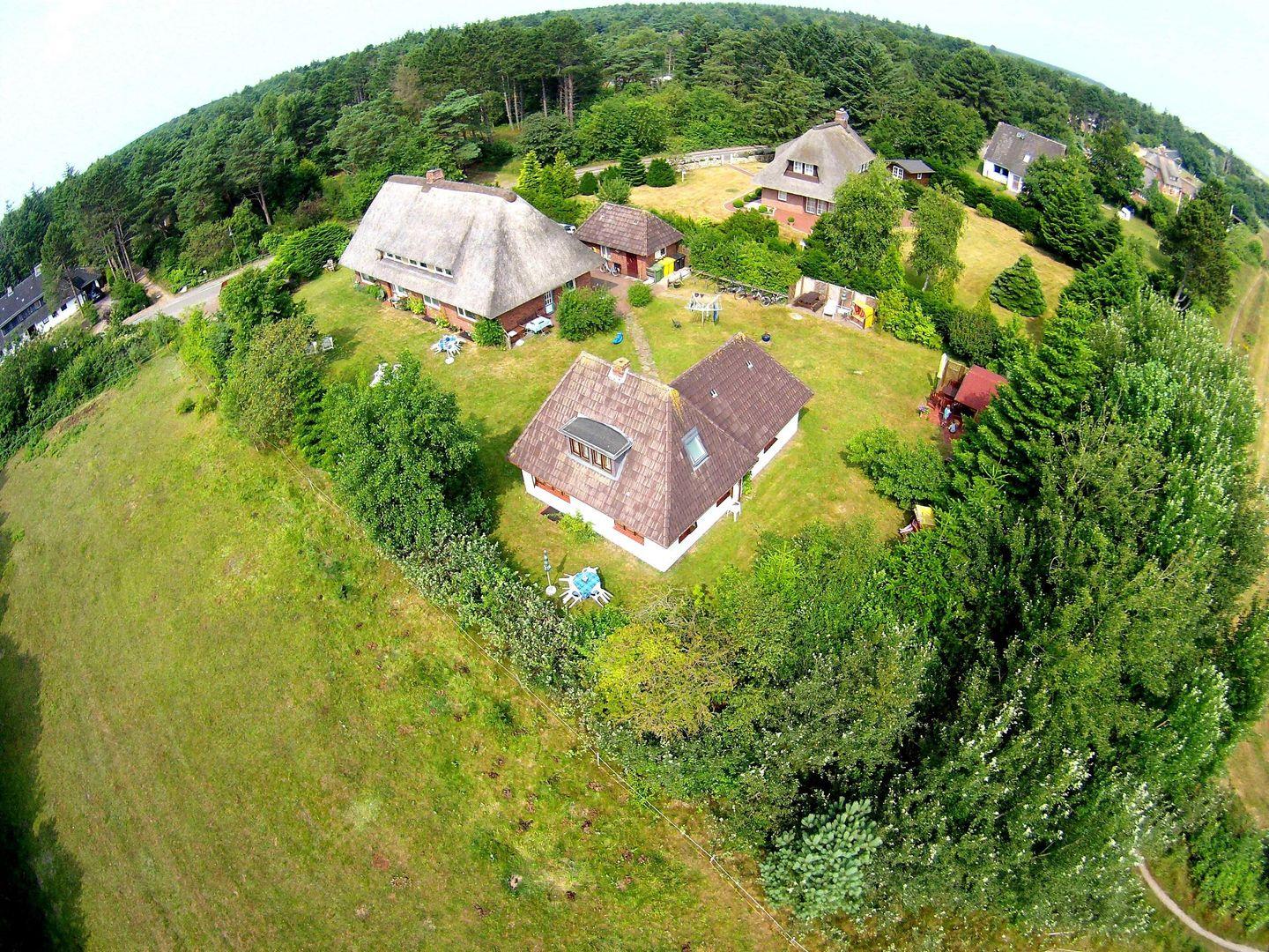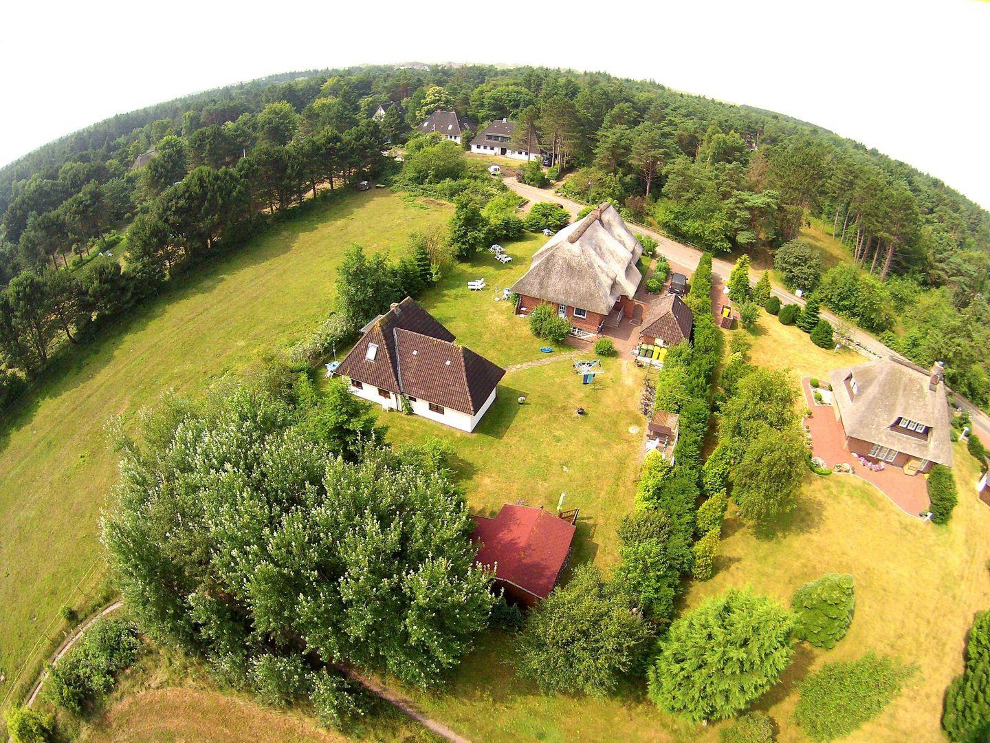 Das Reetdachhaus der Familie Petersen liegt im wunderschönen Ortsteil Westerheide der Gemeinde Nebel. Dort machen Sie Urlaub in unmittelbarer Nähe zum Wald der Nordseeinsel. Das Haus ist von einem großen Garten umgeben, der Ihnen zur Verfügung steht. Die Wohnung Hortensie liegt im Erdgeschoß des Reetdachhauses.
