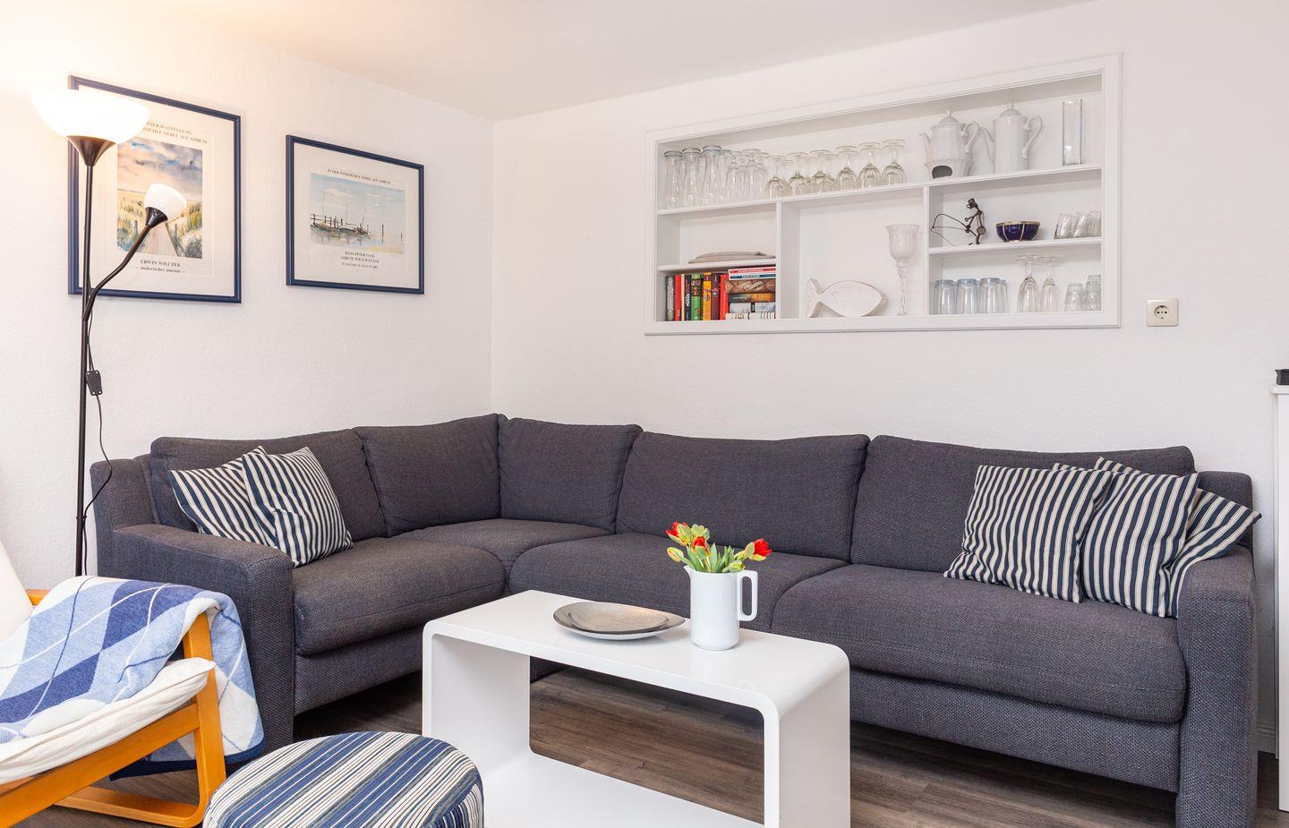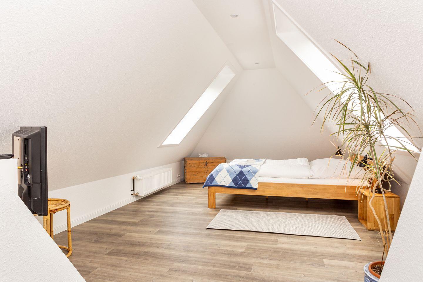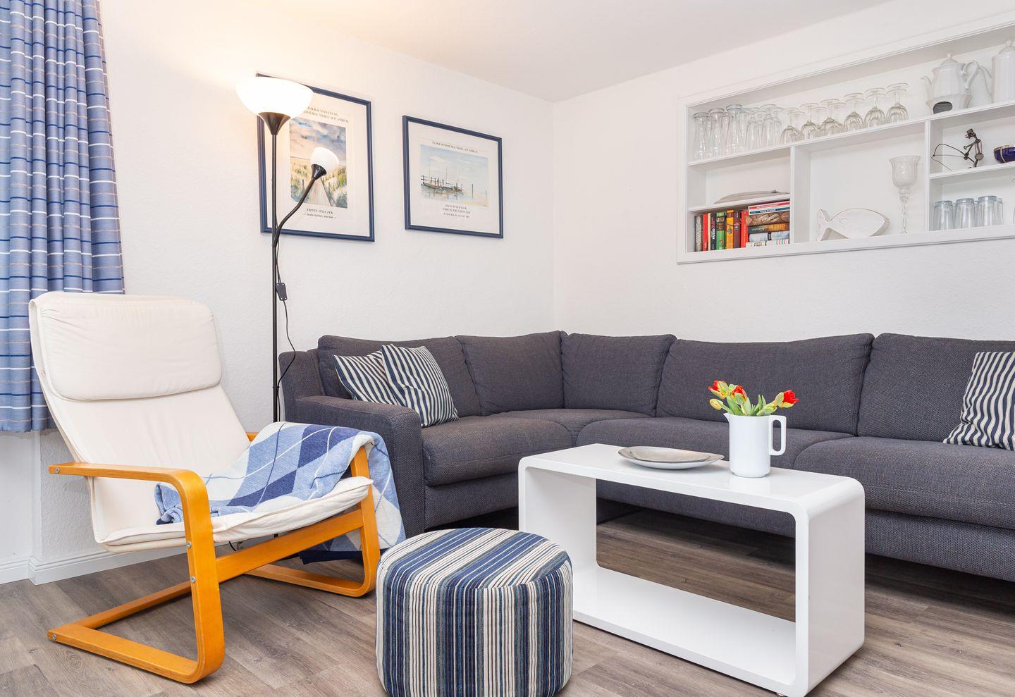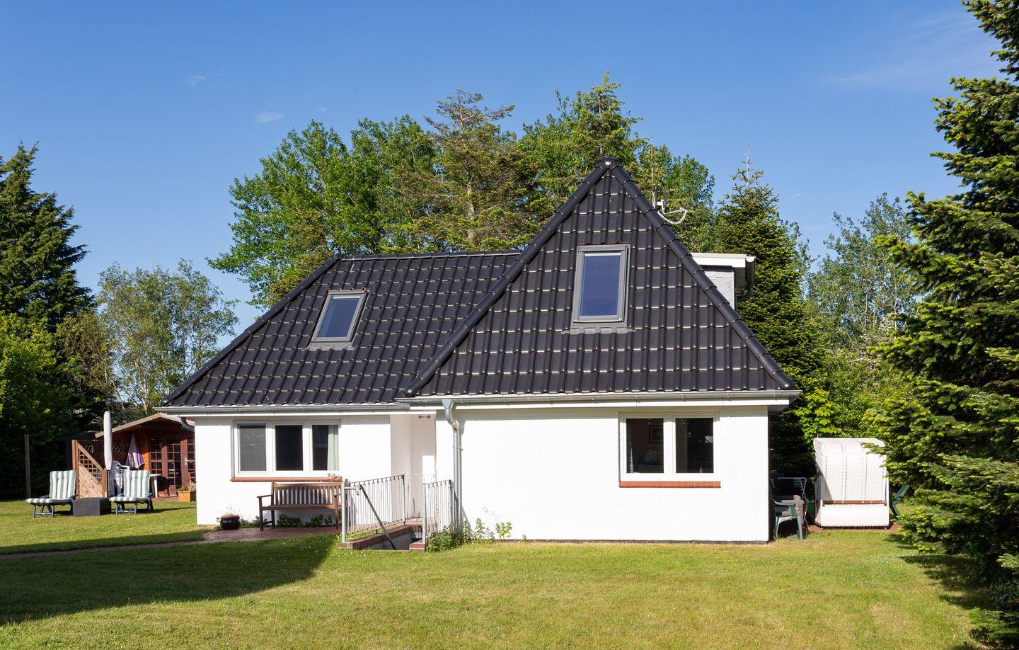 Das kleine Haus der Familie Petersen liegt in Nebel im Ortsteil Westerheide. Dort machen Sie Urlaub in unmittelbarer Nähe zum Wald der Nordseeinsel Amrum. Es ist von einem großen Garten umgeben, der Ihnen zur Verfügung steht. In diesem süßen Ferienhaus können Sie mit 5 Personen Ihren Urlaub verleben. Es verfügt über ein Doppelbettschlafzimmer, zwei separate Schlafzimmer, Gäste WC, Bad, eine Küche mit Terrasse und ein Wohnzimmer. Im kleinen Haus verbringen Sie Ihren Urlaub auf zwei Ebenen. Das Wohnzimmer mit einem Sofa, einem Sessel und einem Flachbild TV, sowie einem schönen Essplatz ausgestattet. Die separate Küche ist mit einem 4-Platten-Ceran-Kochfeld, einem Backofen, Kühlschrank, Spülmaschine und Toaster, Kaffeemaschine, Wasserkocher und Küchenutensilien ausgestattet. Im Bad finden Sie das WC, eine Dusche, Waschbecken und einen Fön. Es gibt im kleinen Haus ein zusätzliches Gäste WC. In der oberen Etage befinden sich zwei weitere Schlafzimmer. Eines ist mit einem Einzelbett möbliert. Das zweite Schlafzimmer ist mit einem Doppelbett ausgestattet.