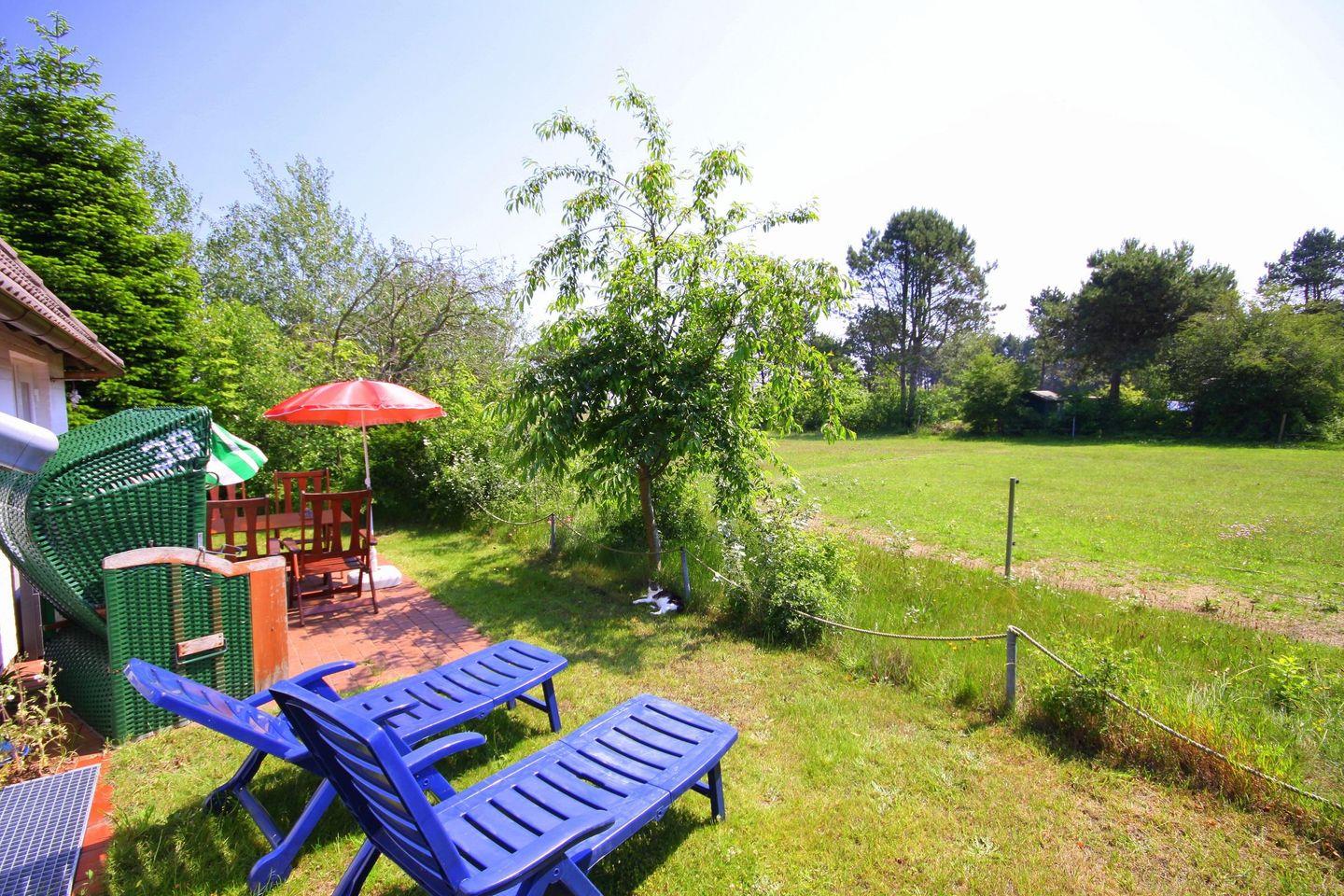 Im Garten können Sie im Strandkorb entspannen oder die Sonnenliegen und Gartenmöbel nutzen.