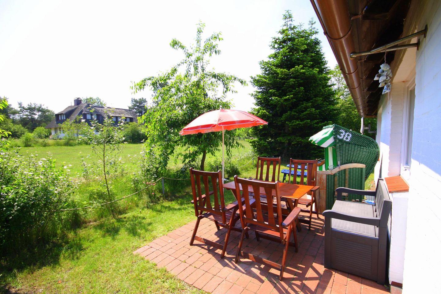 Das kleine Haus - ein süßes kleines Haus mit Garten, herrlichem Landschaftsblick in Nebel auf Amrum - WLAN, Gartenmöbel, für Familie - 5 Betten, private Terrasse, am Wald und in Strandnähe, Parkplatz, TV, 2 Ebenen