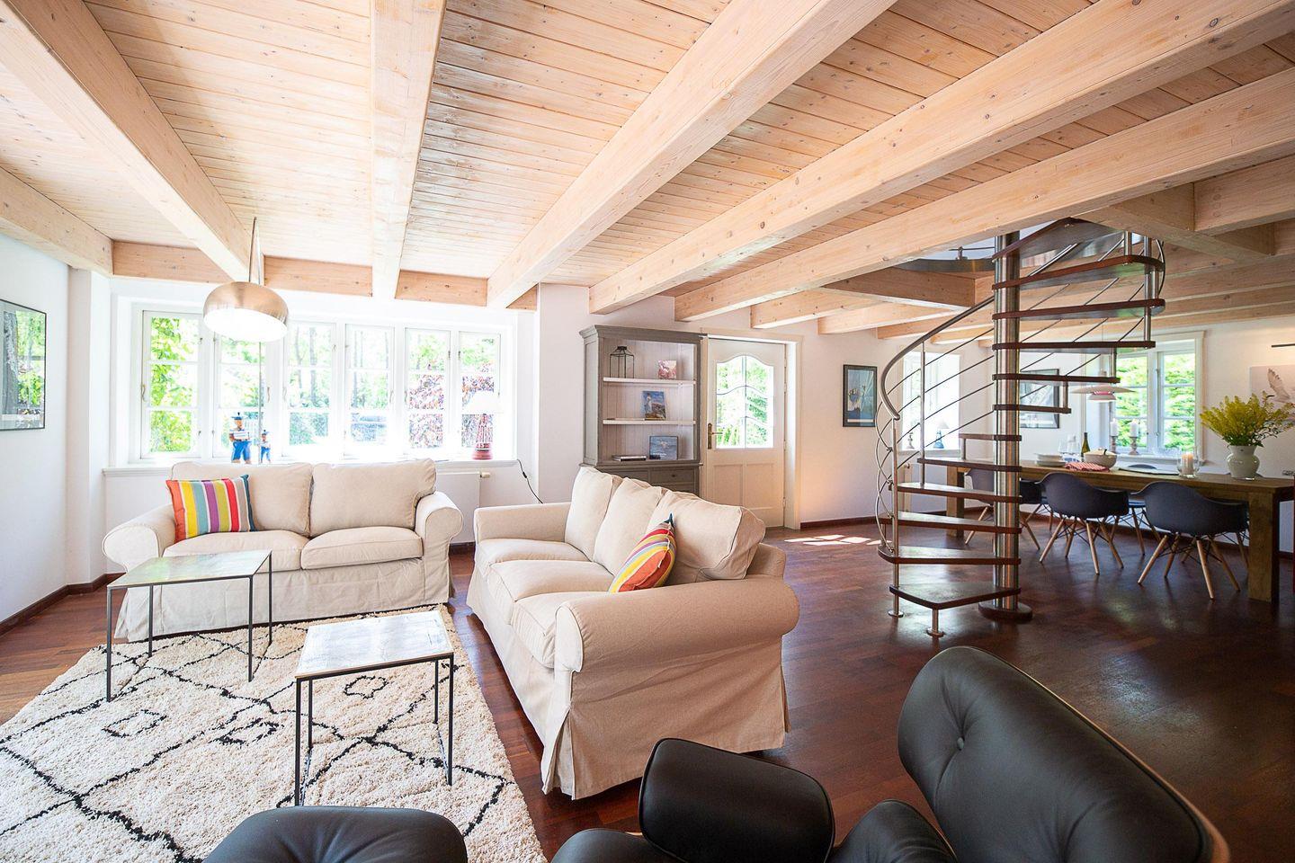 Das Reetdachaus Skagen ist eine Haushälfte mit einer Wohnfläche von 130 qm. Die Haushälfte umfasst 3 Ebenen. Das Haus liegt im wunderschönen Ortsteil Westerheide in der Gmeinde Nebel auf einem 3200 qm großen ruhig gelegenen Waldgrundstück. Die Doppelhaushälfte bietet genügend Raum, um Ihrem Amrum Urlaub einen angemessenen Rahmen zu geben.