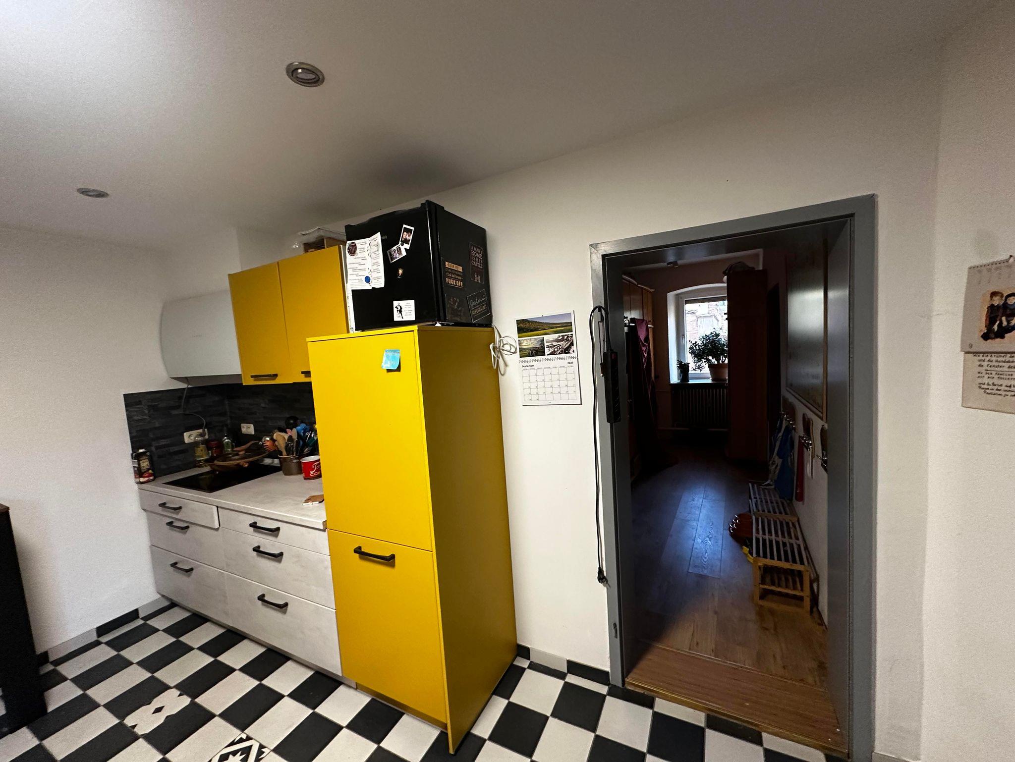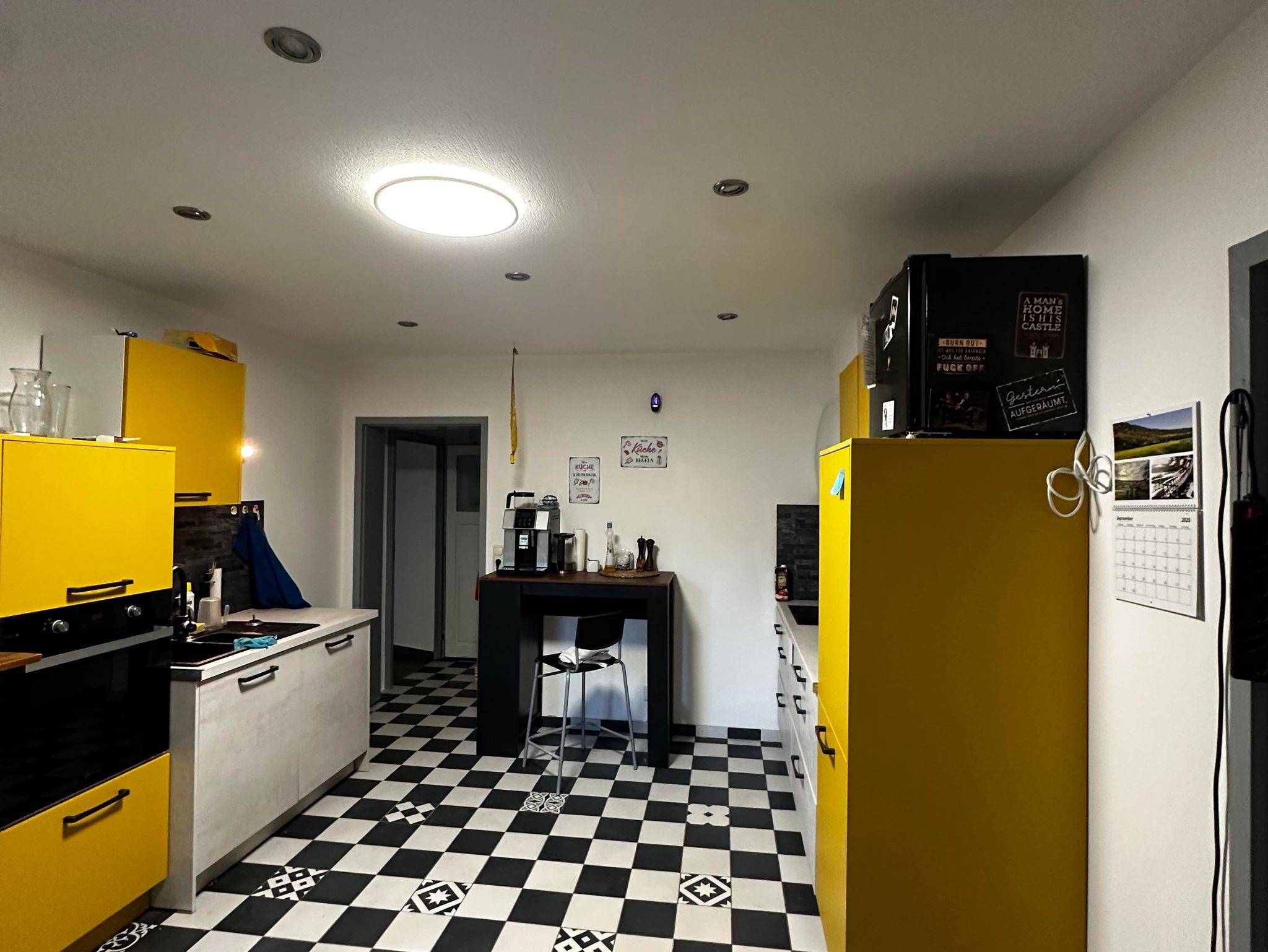 • Große Küche mit Herd, Backofen, Kühlschrank, Spülmaschine und Kaffeemaschine
