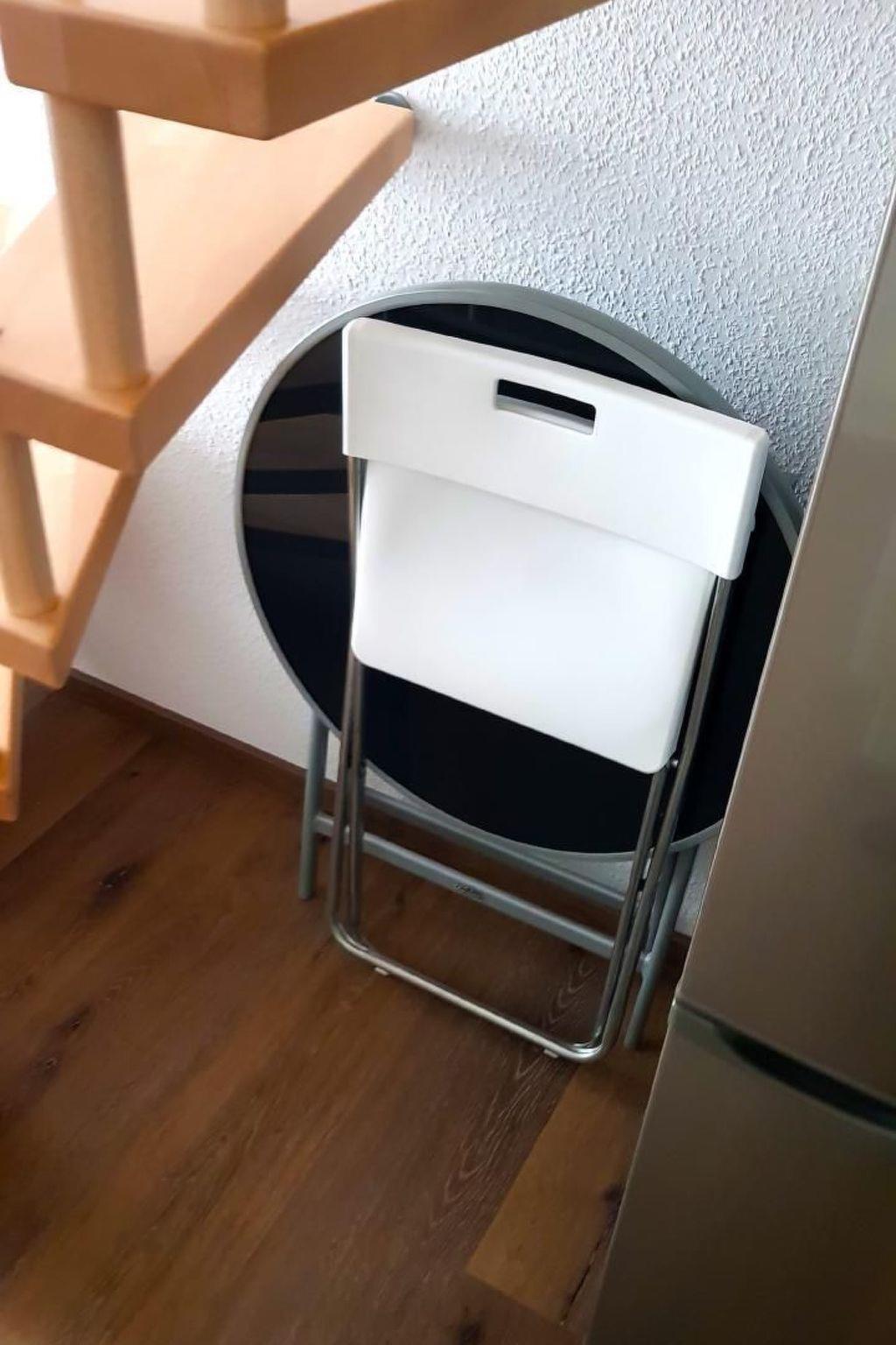 A staircase leads to the separate bedroom. There you will find a modern box spring bed (160x200) as well as Tv, spacious wardrobe and storage room for your suitcases.