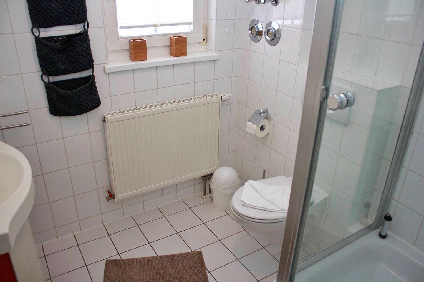 Das größere der beiden Schlafzimmer mit einem bequemen Doppelbett, zwei Nachttischen mit dazugehörigen Lampen und einem geräumigen Kleiderschrank mit Spiegeltüren bietet Platz für 2 Personen. Das kleine und niedliche Kinderzimmer verfügt über ein Einzelbett mit 0,90 m Breite. Ein Babybettchen ist vorhanden. Das Tageslichtbad mit Dusche und WC ist hell und modern.