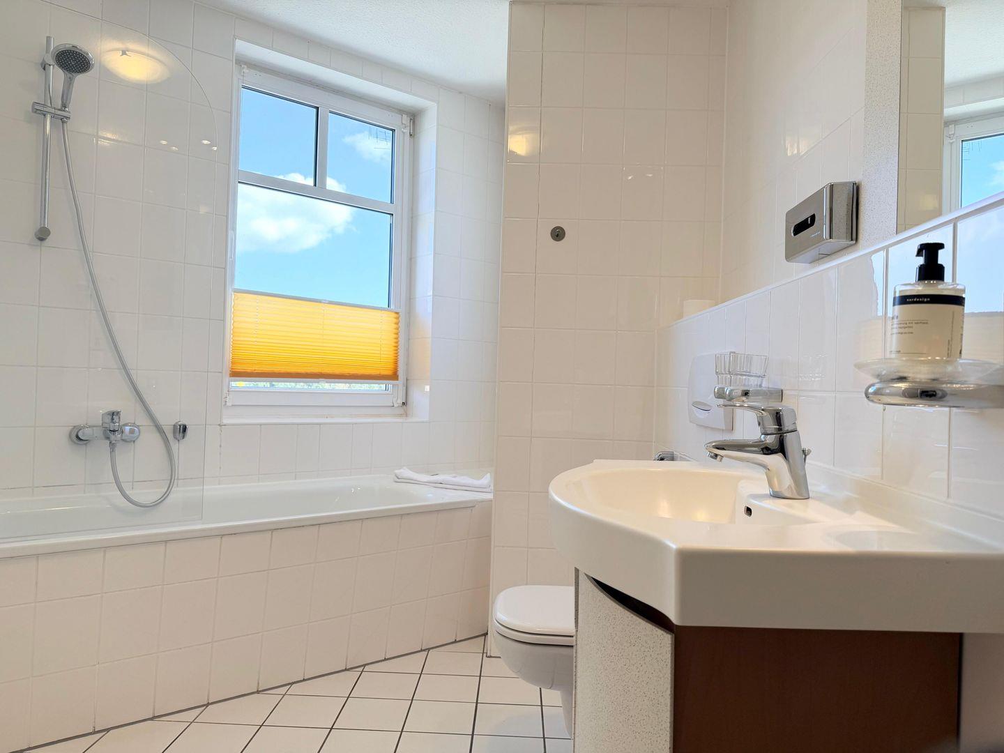 Das Bad verfügt über eine Badewanne.