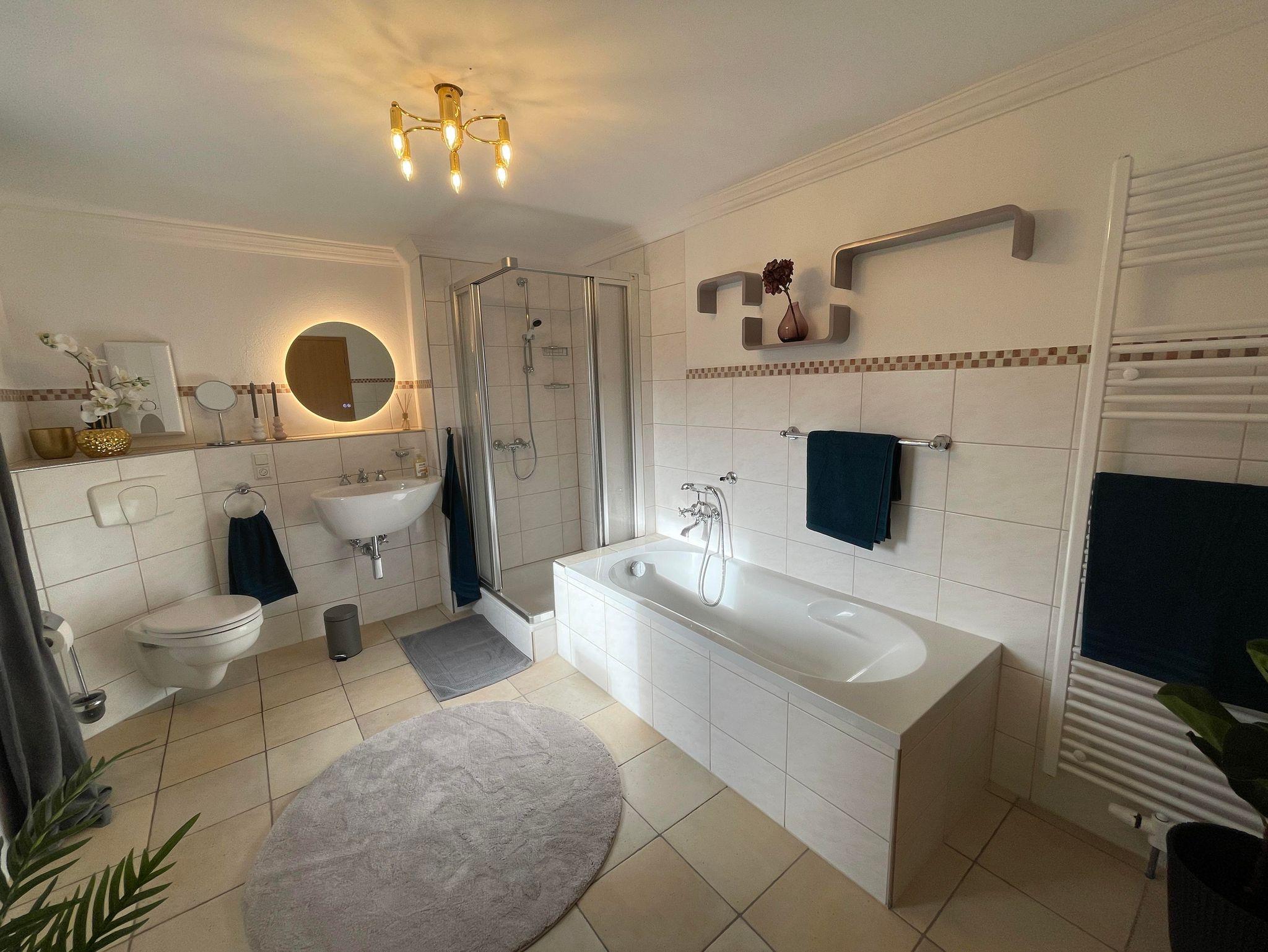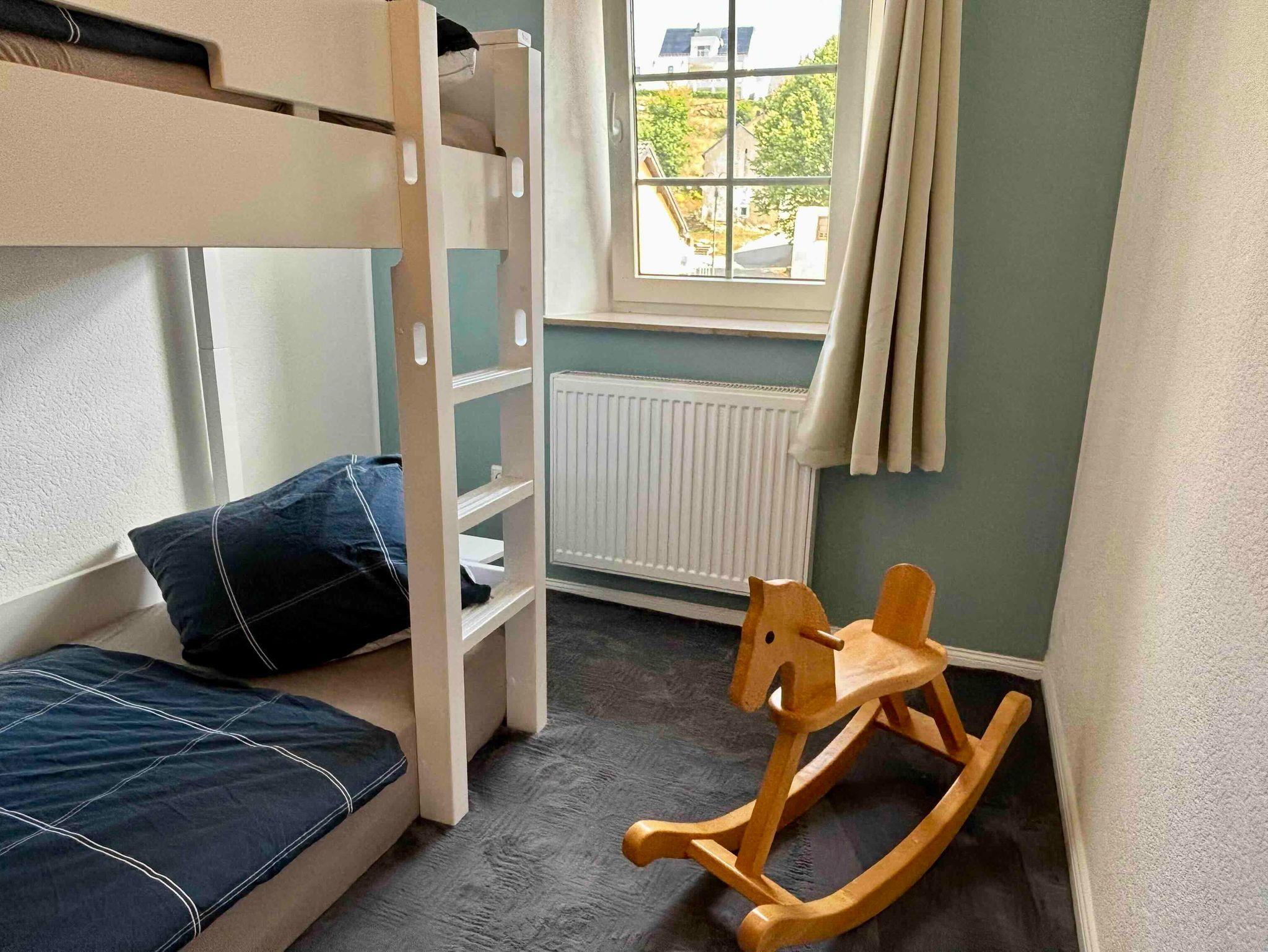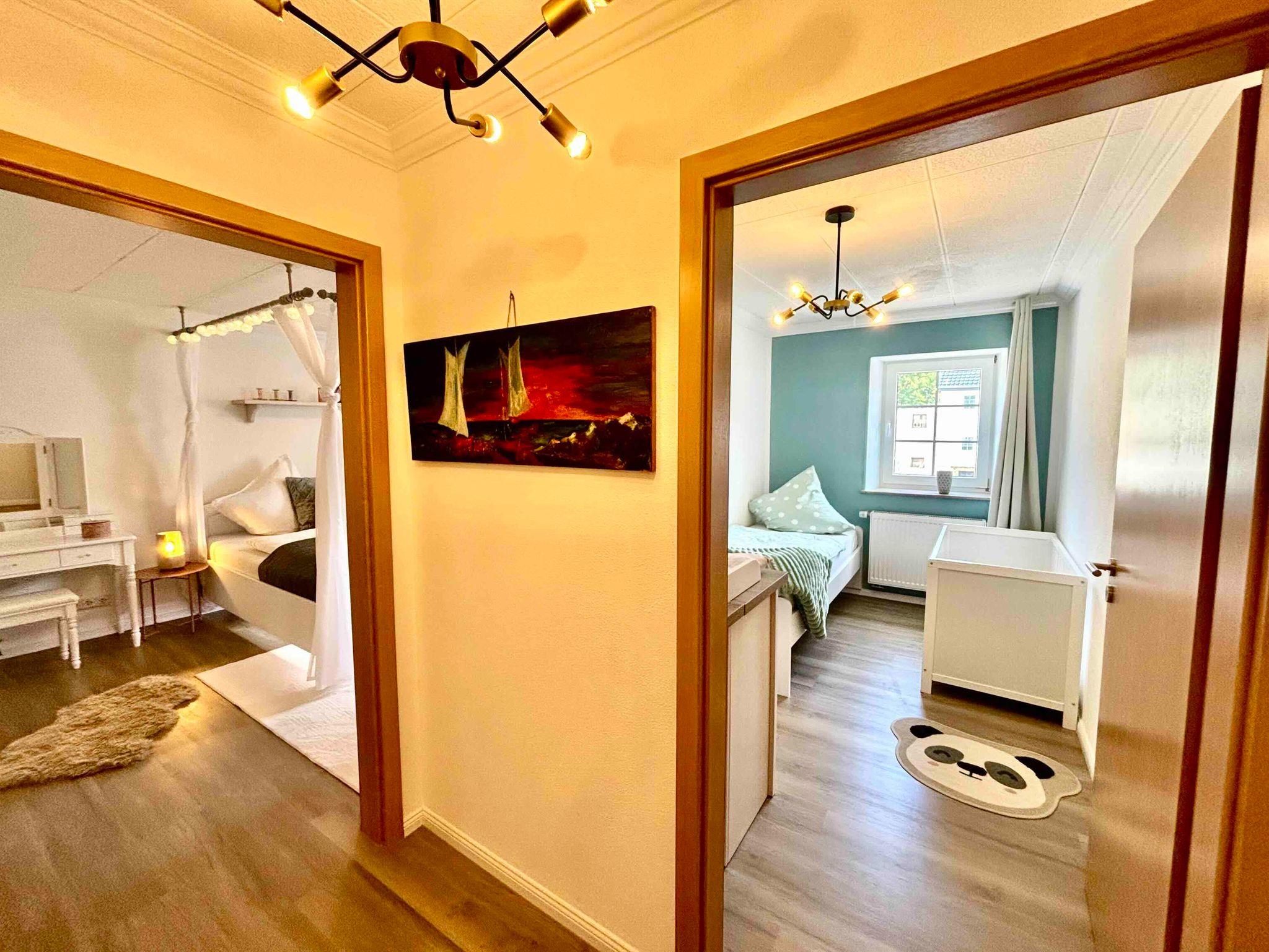 Die 95 m² große Unterkunft besteht aus einem Wohnzimmer, einer voll ausgestatteten Küche, 3 Schlafzimmern und 1 Badezimmer und bietet somit Platz für 5 Personen. Zur Ausstattung gehören außerdem Highspeed-WLAN (für Videoanrufe geeignet, Glasfaser), ein Smart TV inklusive Netflix, eine Waschmaschine mit Trocknerfunktion sowie ein Schreib- und ein Schminktisch. Zudem gibt es im Flur eine gemütliche Leseecke mit einem Bücherschrank. Ein Babybett, eine Wickelkommode, Kinderbücher, Spielsachen und ein Hochstuhl sind ebenfalls vorhanden.