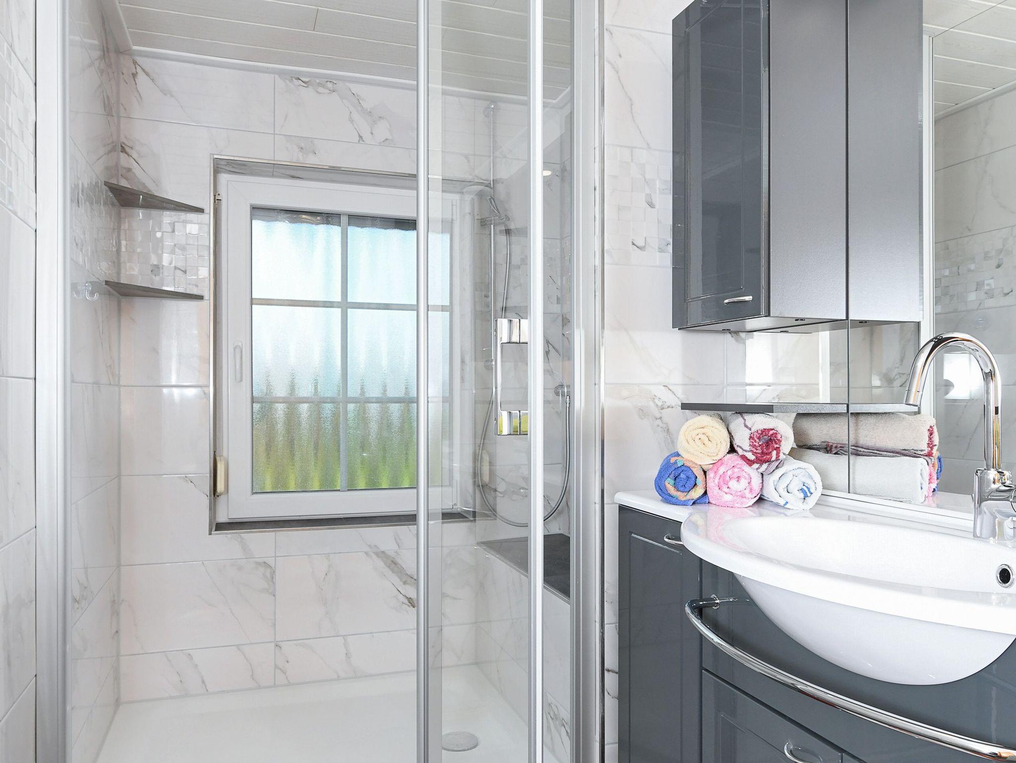 Größe ca. 71 Quadratmeter, Wohnzimmer, Küche, Schlafzimmer, zweites separates Schlafzimmer/Kinderzimmer, Badezimmer mit Badewanne (mit Dusche) und Waschtisch, separates WC mit Waschtisch, Obergeschoss, Terrasse, optimal für 2 bis 4 Personen und zusätzlich ein Kleinkind.