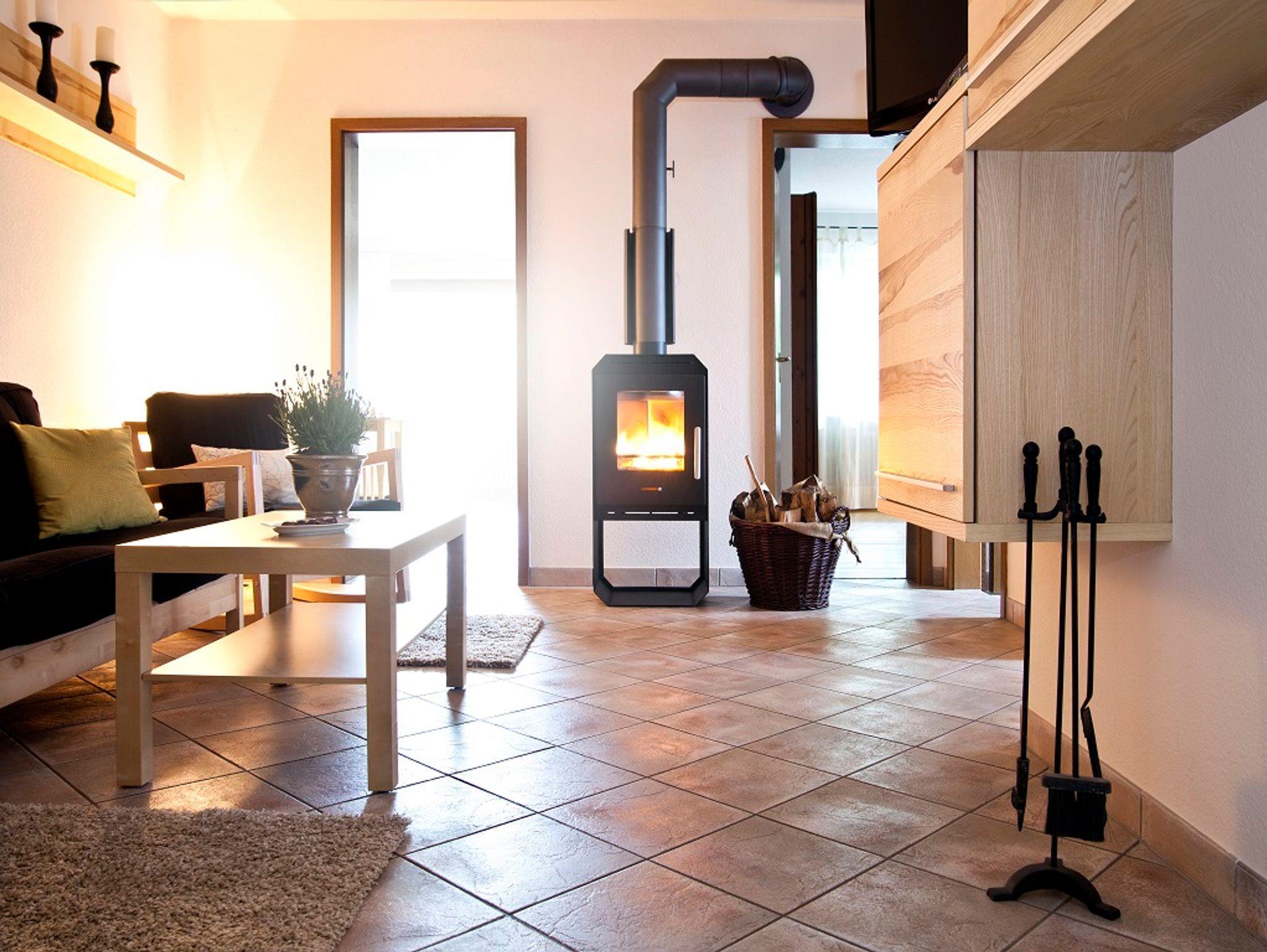 Wohnzimmer: Sitzgruppe und ein Kaminofen für die Herbst- und Winterabende.