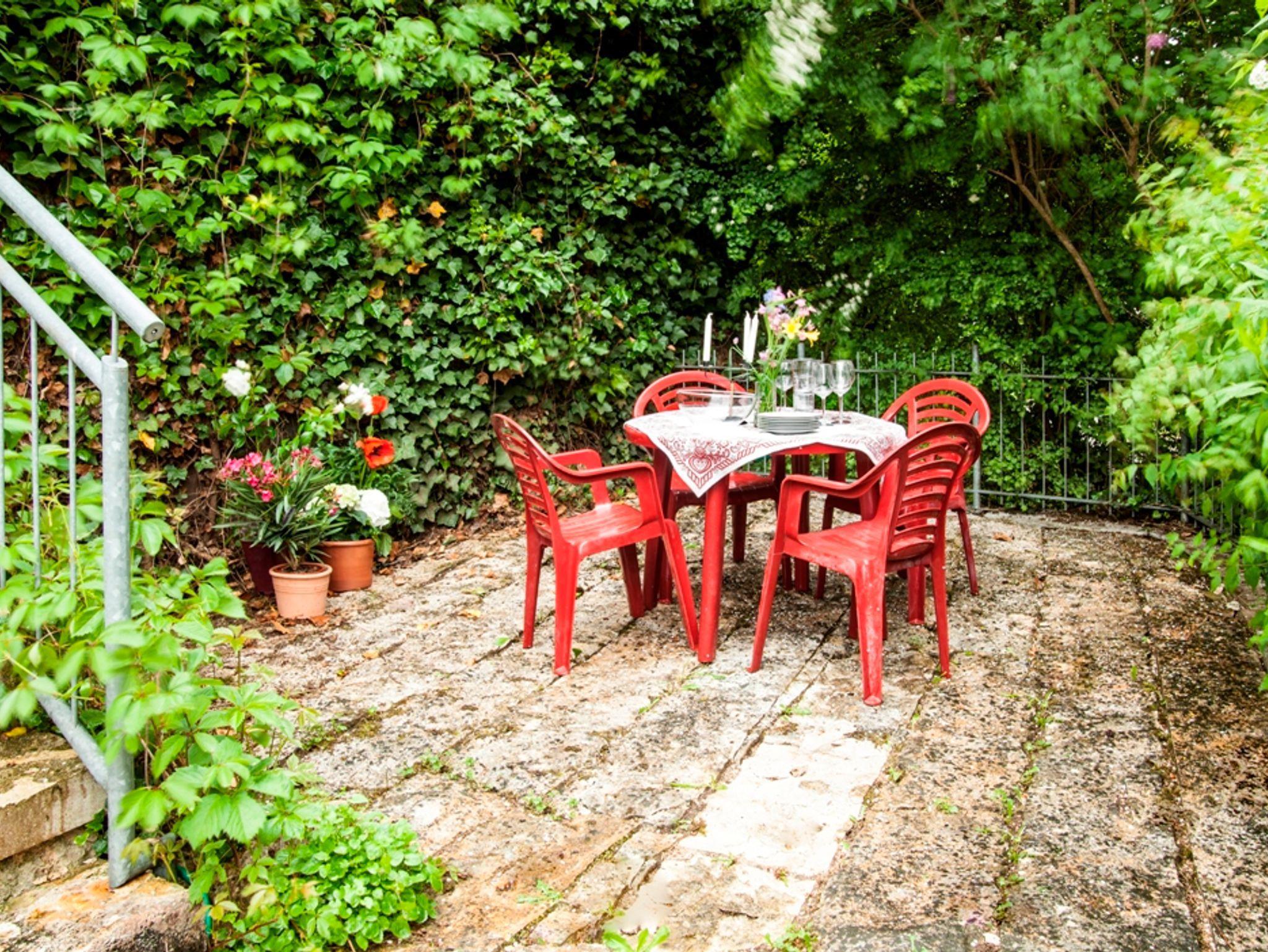 Einen lauschigen Abend können Sie auf dem Balkon genießen oder auf der Terrasse am Eingang der Wohnung.