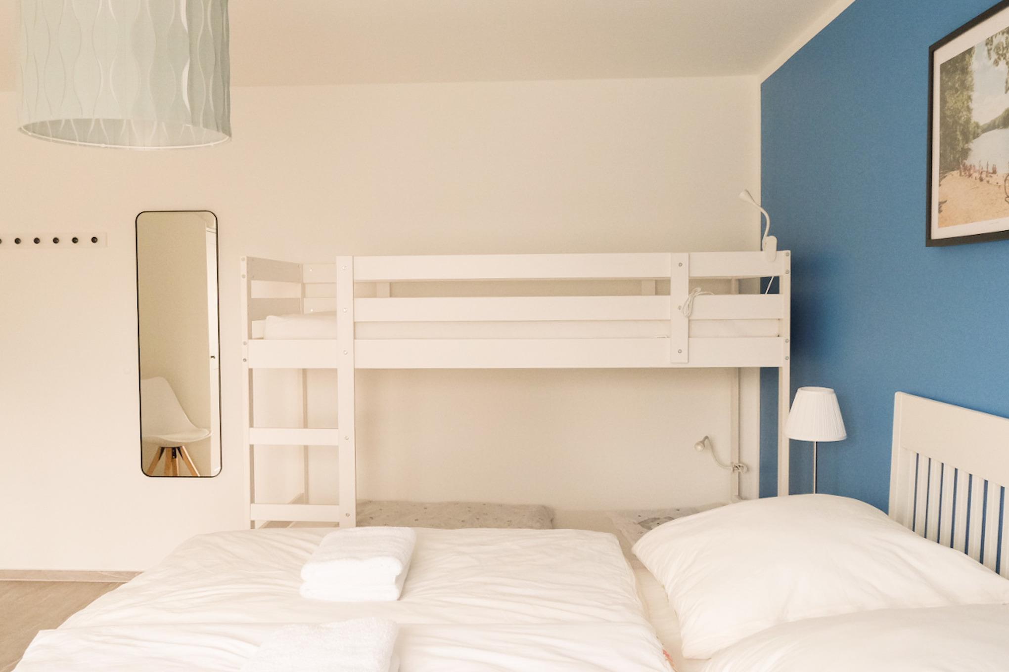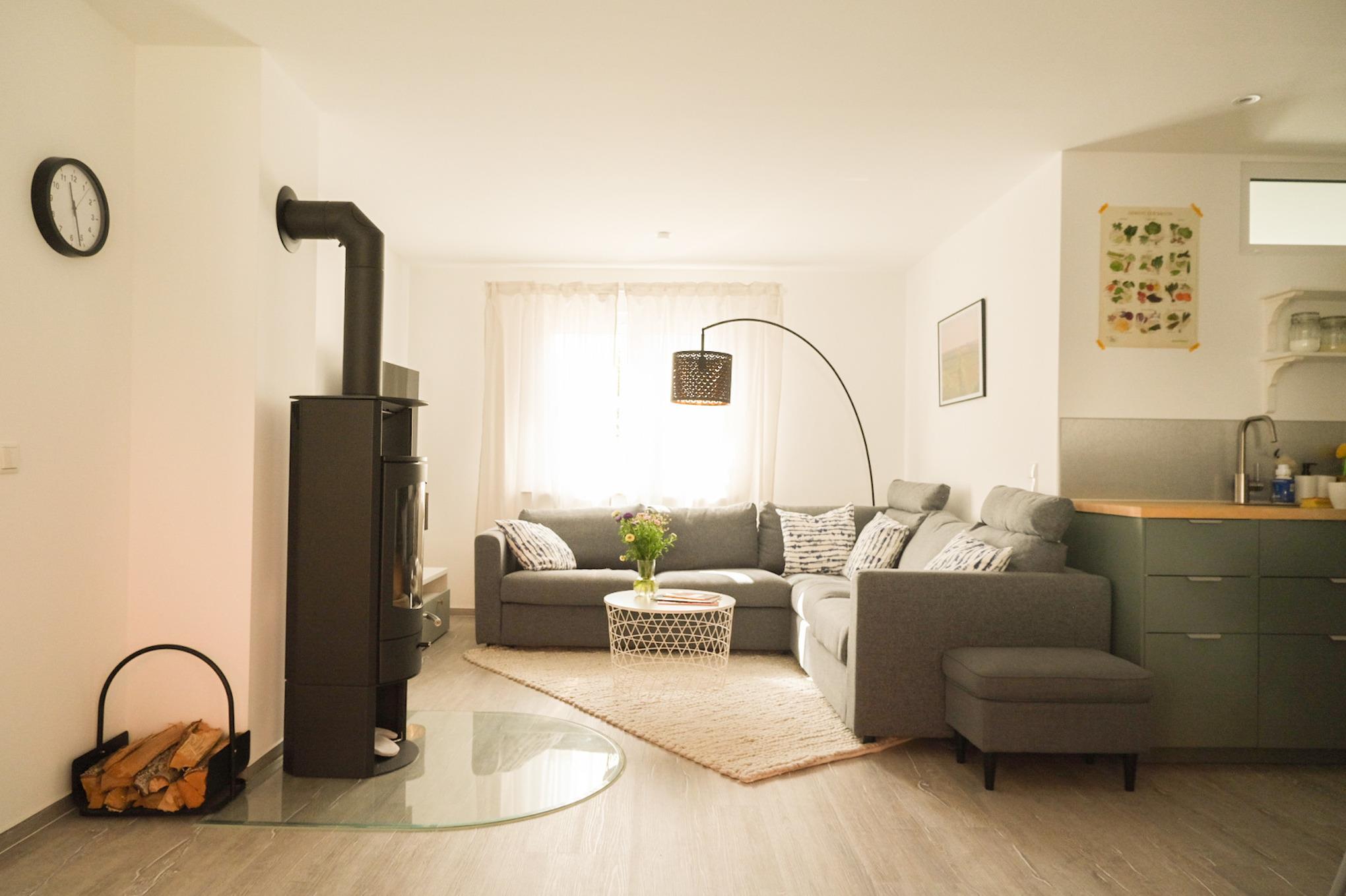Die Ferienwohnung für bis zu 6 Personen (ca. 92m2) besteht aus zwei Schlafzimmern, einer großen Wohnküche, einem barrierefrei eingerichteten Badezimmer sowie einem Gäste-WC. Die Wohnung verfügt über einen großzügigen Essbereich und eine gemütliche Leseecke sowie Spielecke. Der Wohnbereich kann zusätzlich durch einen Kaminofen beheizt werden.